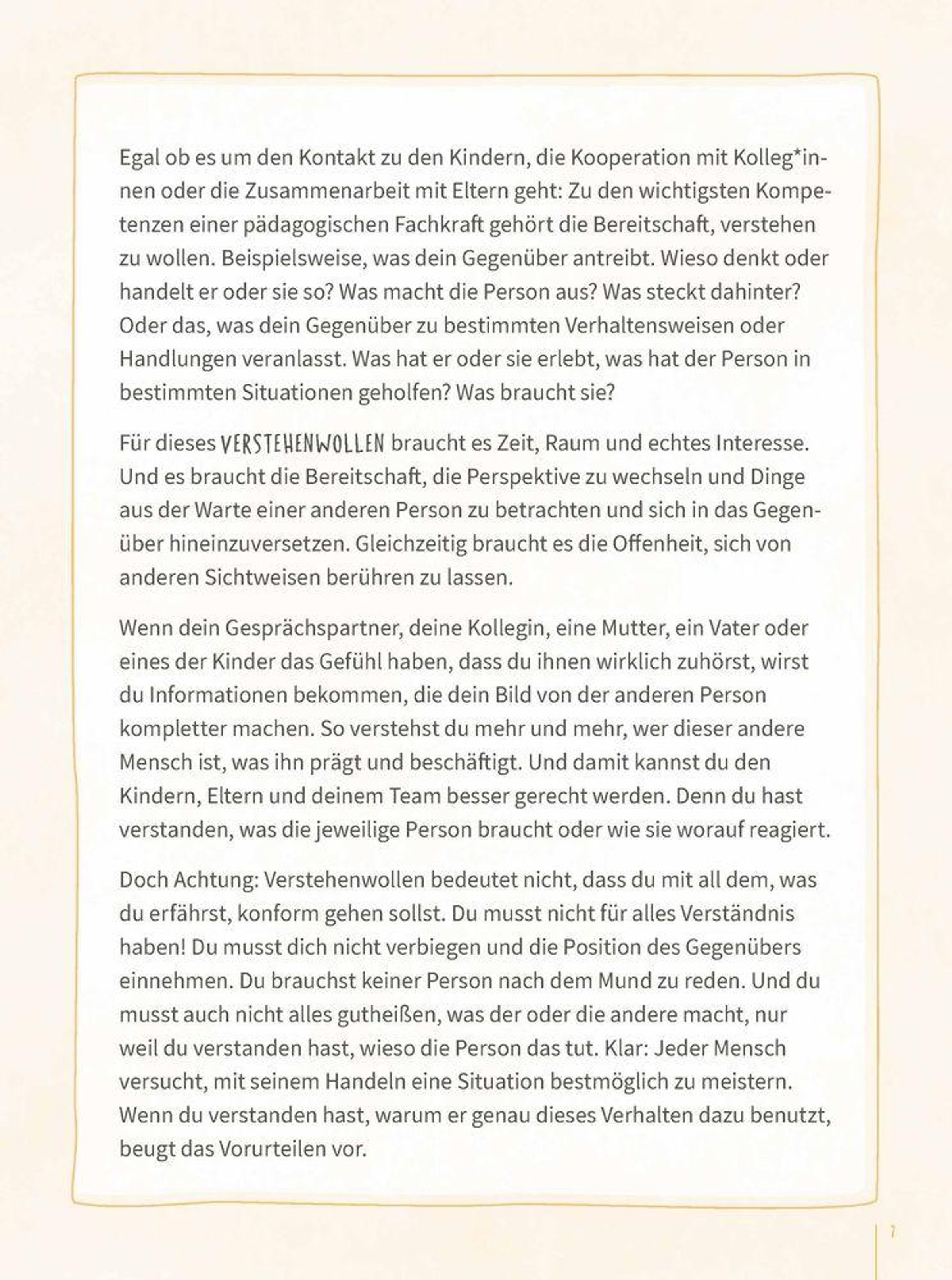 Das Buch ist Reflexionshilfe , Ideenpool und Workbook in einem. Um Sie als pädagogische Fachkraft zu stärken, bietet es Denkanstöße mit ermutigenden Texten , hilfreichen Selbstreflexionsfragen und Raum für Notizen .