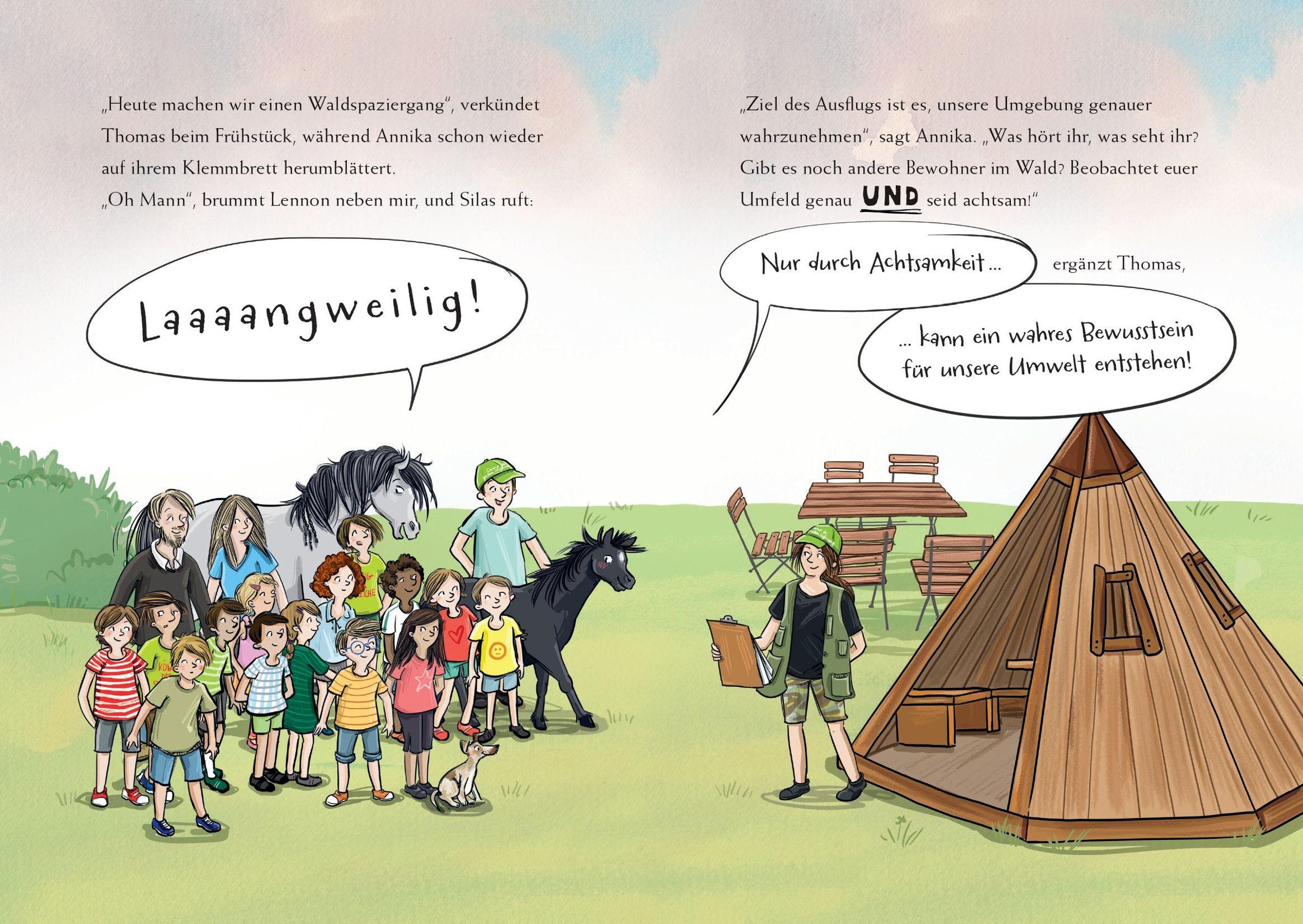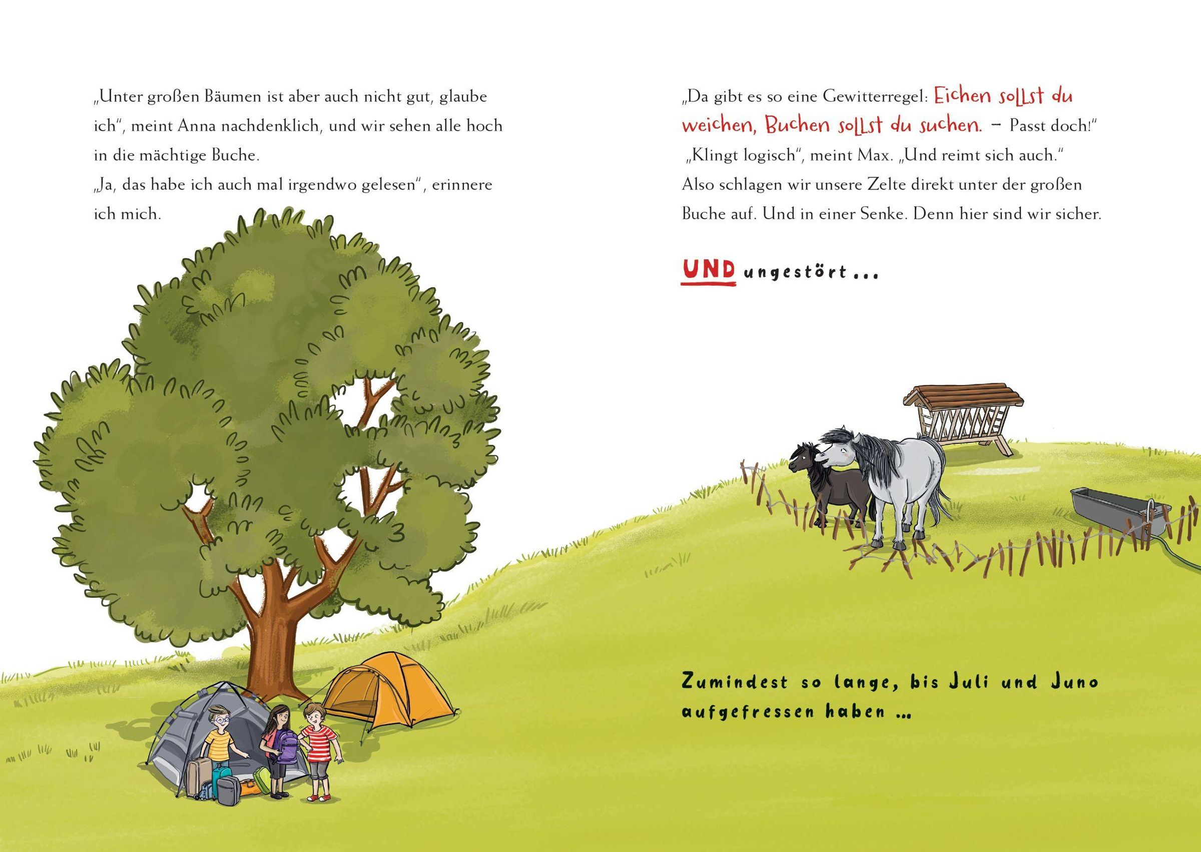 Anna, Max und ich (Paul) fahren nach den Sommerferien auf Klassenfahrt - zum Zelten. Eine Woche sind wir in einem Camp, das uns die Liebe zur Natur näherbringen soll. Selbstverständlich also, dass unsere Schultiere Juli, Juno und Watson mit dabei sind! Ein neues Abenteuer für die TIERISCHEN SECHS!