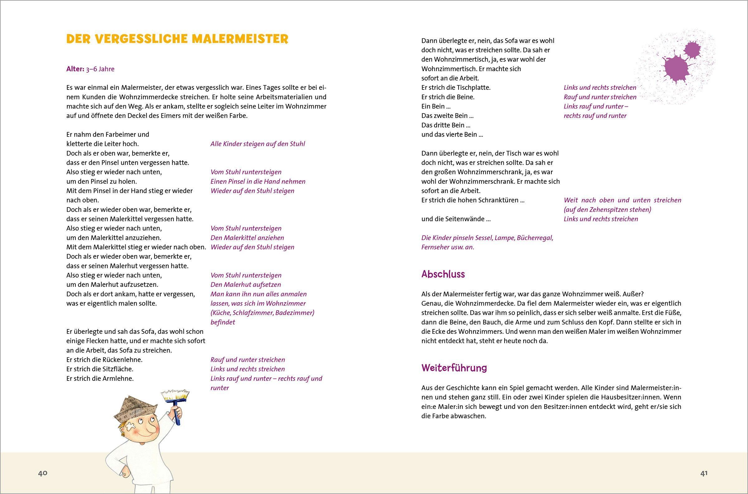 Diese Geschichten bringen Kinder in Aktion! Gemeinsam erleben sie verrückte Abenteuer mit schleimigen Schnecken, verrückten Pferden, Schokoladenräubern und anderen ungewöhnlichen Figuren. Klare, leicht umsetzbare Anleitungen unterstützen bei der Umsetzung. Die abwechslungsreichen Geschichten knüpfen an die Lebenswelten und Erfahrungen der Kinder an und fördern Sprache, Körperwahrnehmung und soziale Kompetenzen.