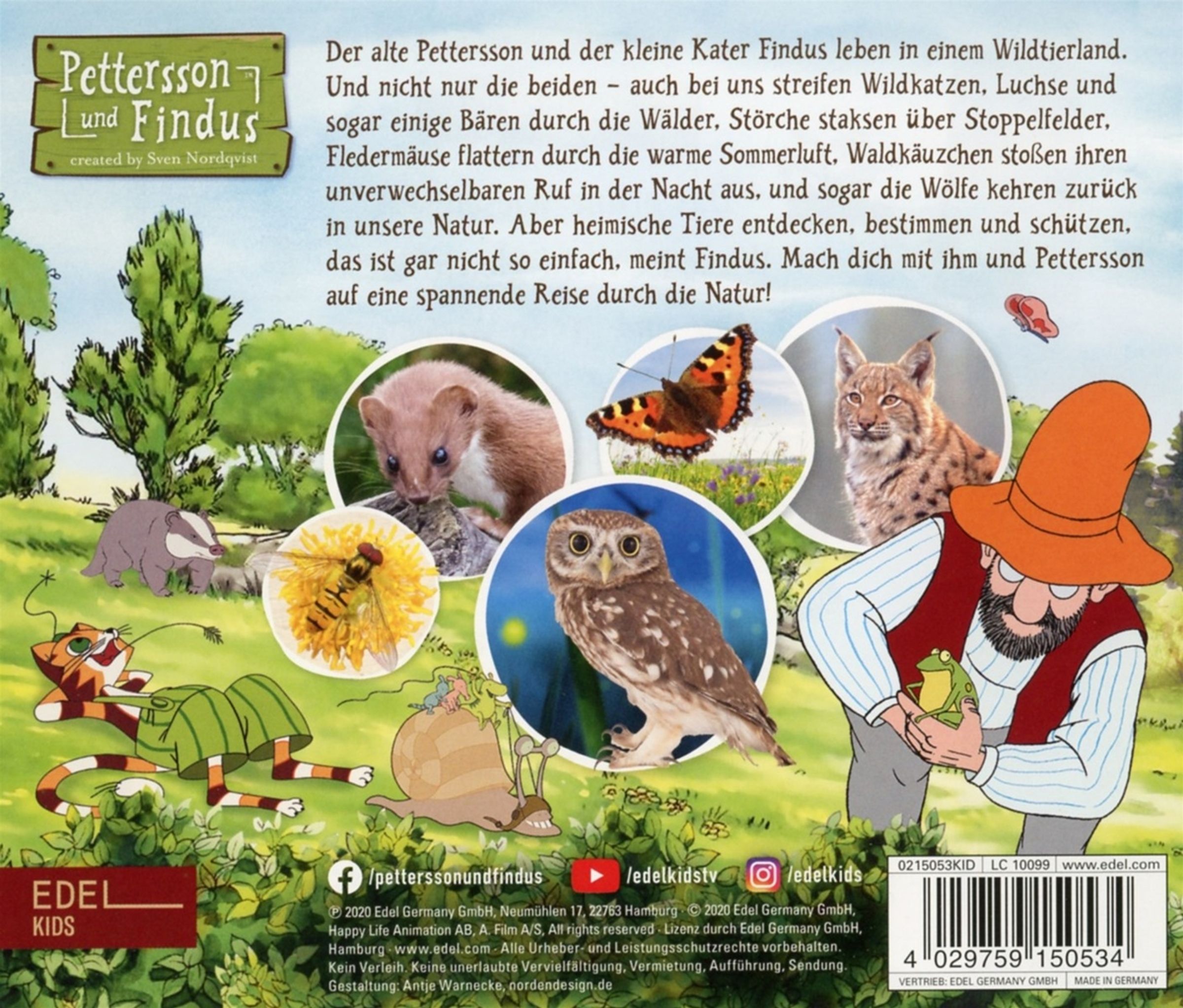 Der alte Pettersson und der kleine Kater Findus leben in einem Wildtierland. Und nicht nur die beiden - auch bei uns streifen Wildkatzen, Luchse und sogar einige Bären durch die Wälder, Störche staksen über Stoppelfelder, Fledermäuse flattern durch die warme Sommerluft, Waldkäuzchen stoßen ihren unverwechselbaren Ruf in der Nacht aus, und sogar die Wölfe kehren zurück in unsere Natur. Aber heimische Tiere entdecken, bestimmen und schützen, das ist gar nicht so einfach, meint Findus. Mach Dich mit ihm und Pettersson auf eine spannende Reise durch die Natur!