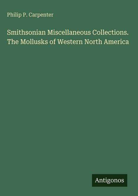 Philip P. Carpenter: Smithsonian Miscellaneous Collections. The Mollusks of Western North America, Gebunden