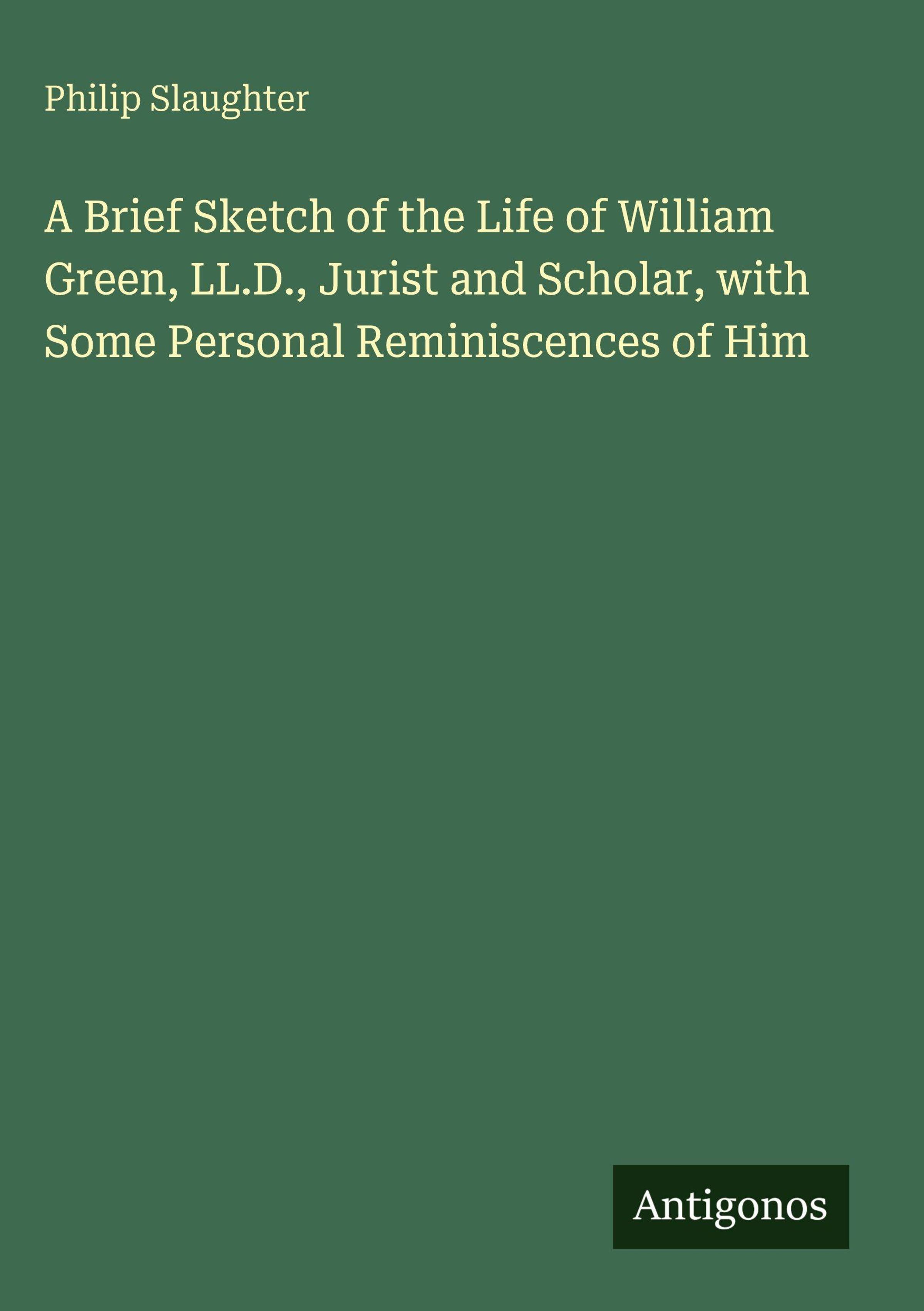 Philip Slaughter: A Brief Sketch of the Life of William Green, LL.D., Jurist and Scholar, with Some Personal..., Gebunden