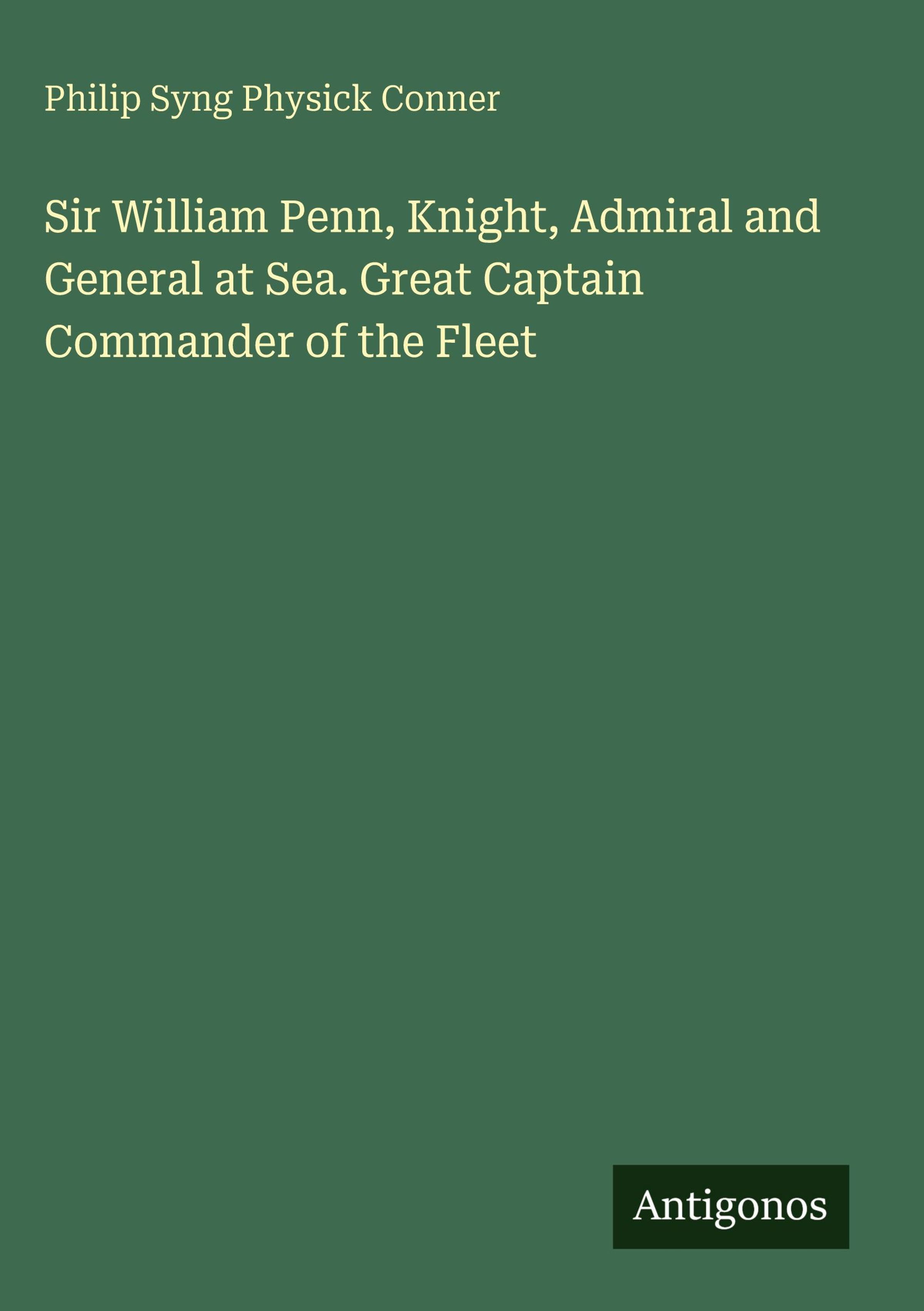 Philip Syng Physick Conner: Sir William Penn, Knight, Admiral and General at Sea. Great Captain Commander of the..., Gebunden