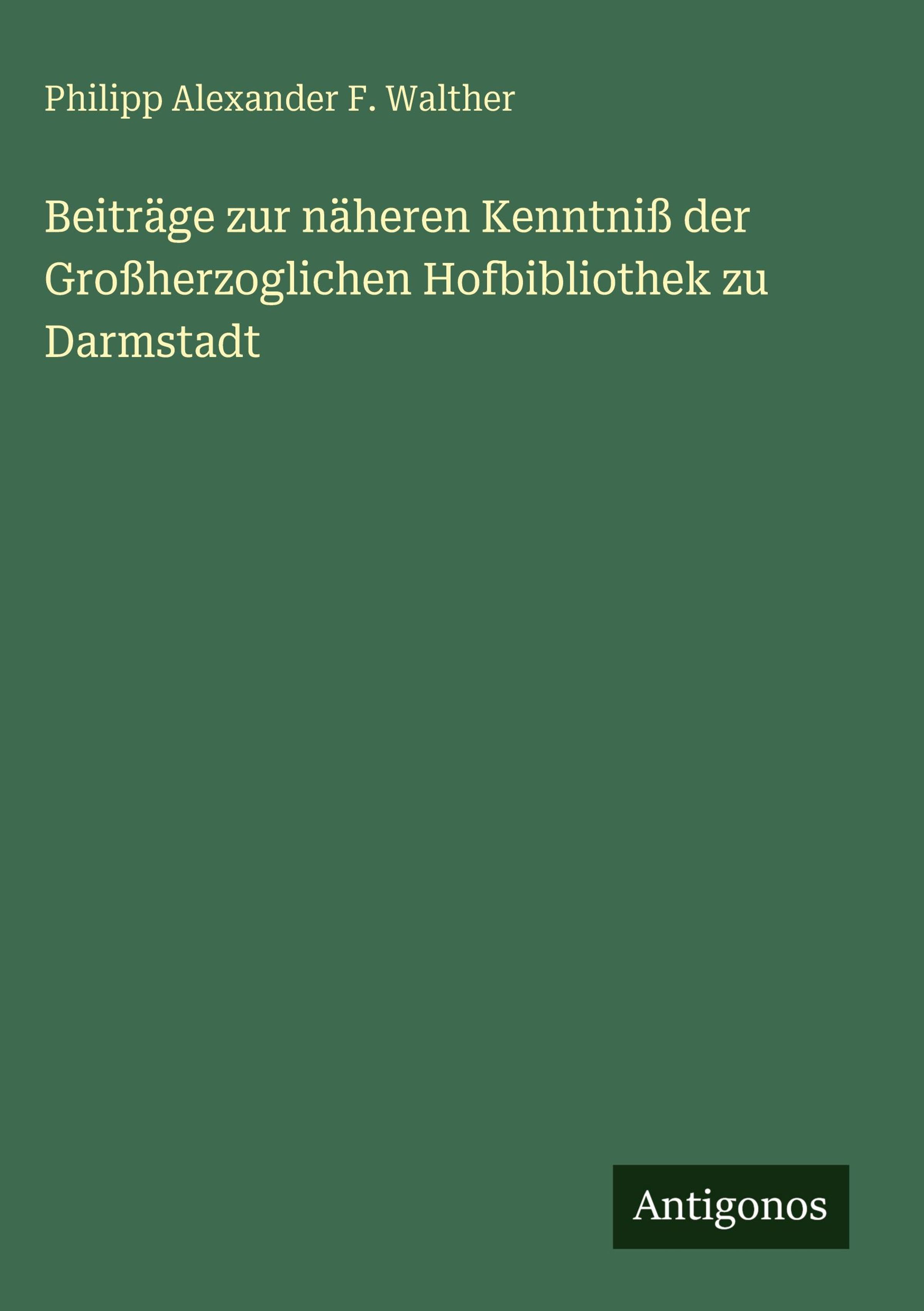 Philipp Alexander F. Walther: Beiträge zur näheren Kenntniß der Großherzoglichen Hofbibliothek zu Darmstadt, Gebunden
