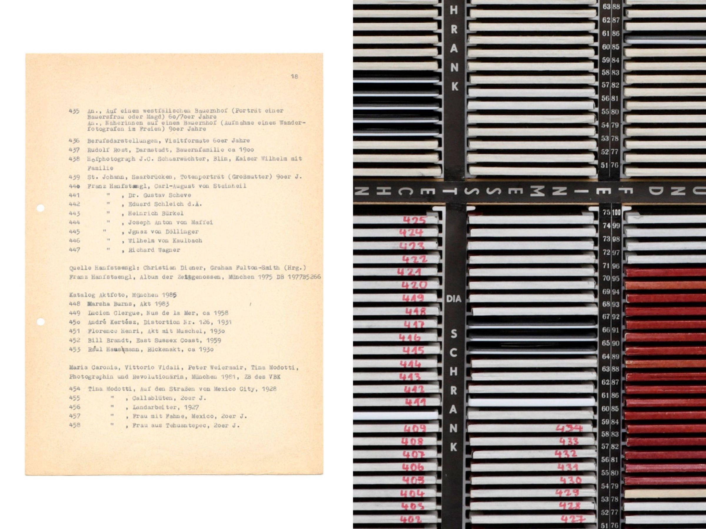 In Improvisierte Projektionen zeigen der Künstler Philipp Goldbach und der Fotohistoriker Steffen Siegel, wie in den späten Jahren der DDR Fotogeschichte erzählt worden ist. Von 1985 bis 1990 unterrichtete Andreas Krase an der Leipziger Hochschule für Grafik und Buchkunst und legte hierfür mit improvisierten Mitteln eine Diathek an. In ihrem visuell und lexikalisch angelegten Projekt überführen Goldbach und Siegel die Diathek in eine künstlerische Ordnung eigenen Rechts - ein neuer KONTEXT -Band, der über die Möglichkeiten und Grenzen der Wissenszirkulation in der späten DDR nachdenken lässt.