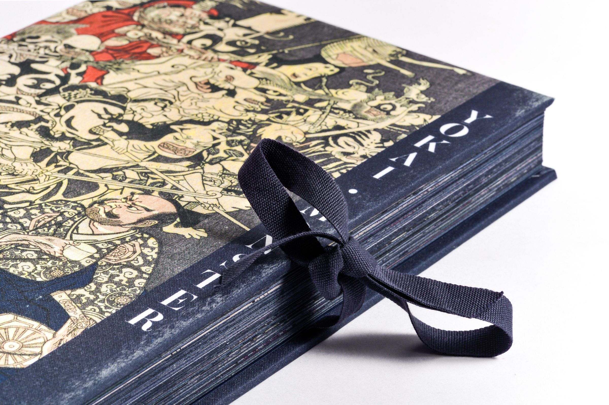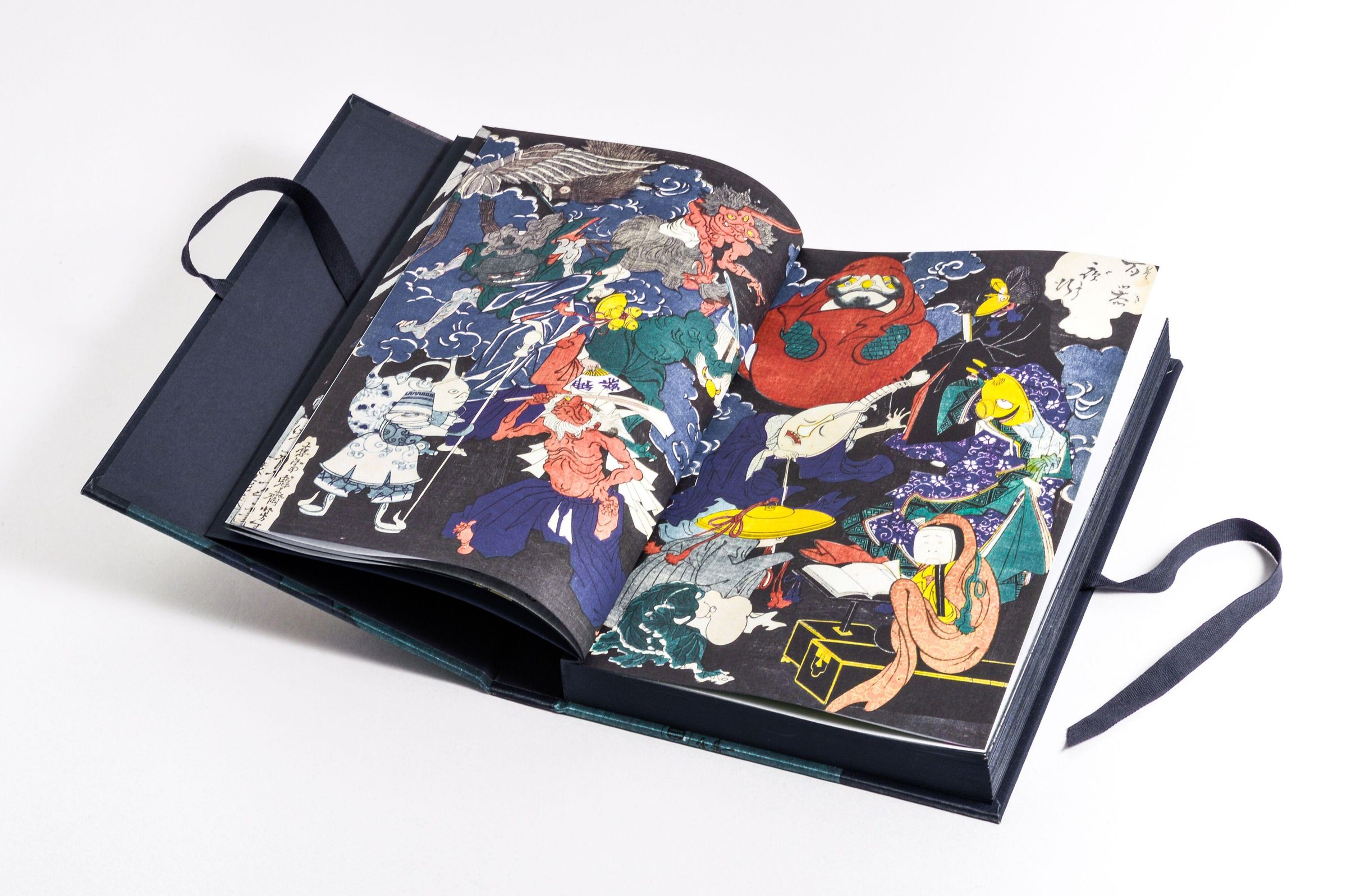 - in Werken der japanischen Holzschnittkunst - vereint in einer prachtvollen Ausgabe mit Seidenüberzug, schwarzem Farbschnitt und Verschlussbändchen mit japanischer Schlauchbindung