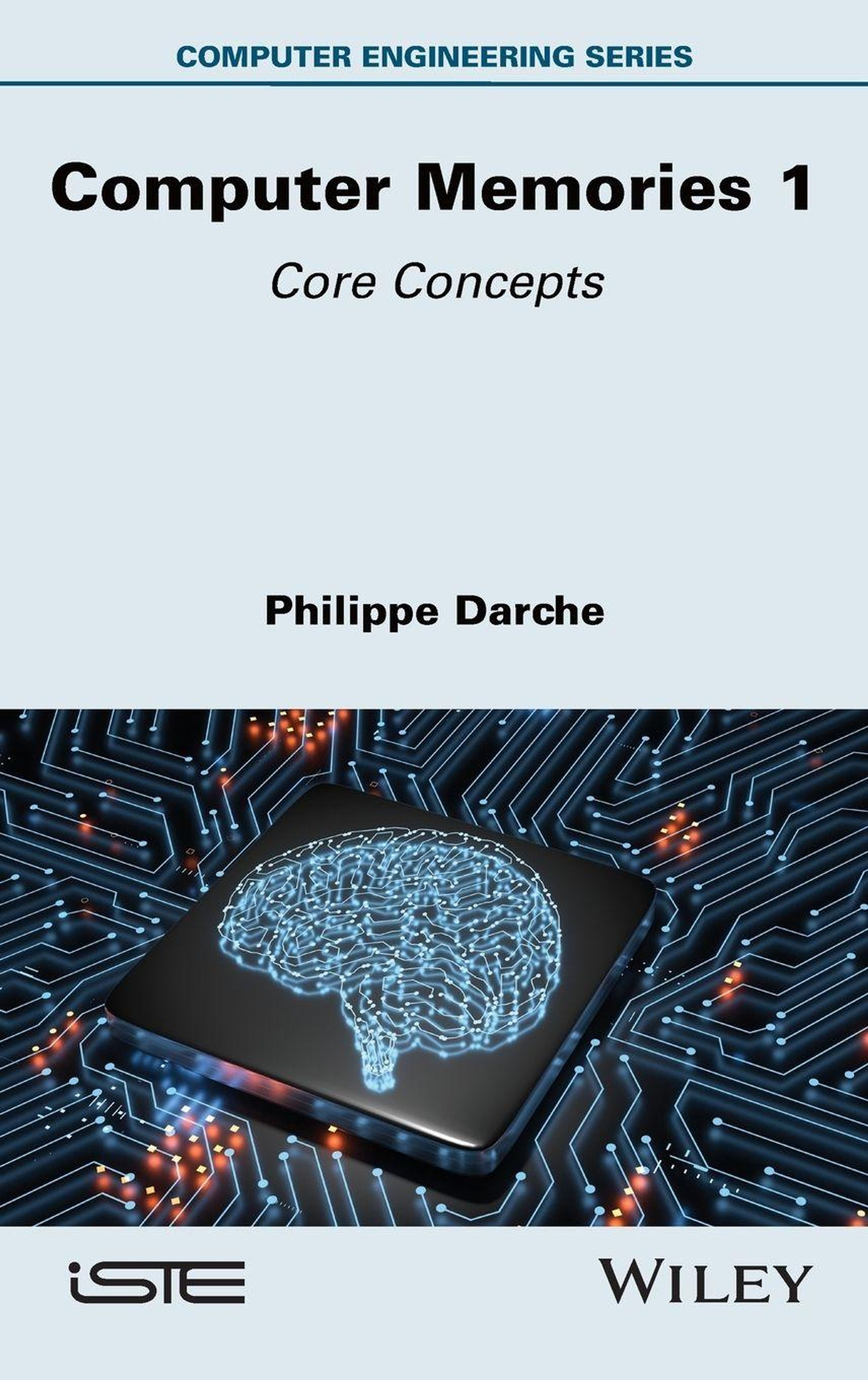 "Computer Engineering Series: Computer Memories 1, Core Concepts, Philippe Darche." Illustration eines Gehirns auf einem Chip., Buch