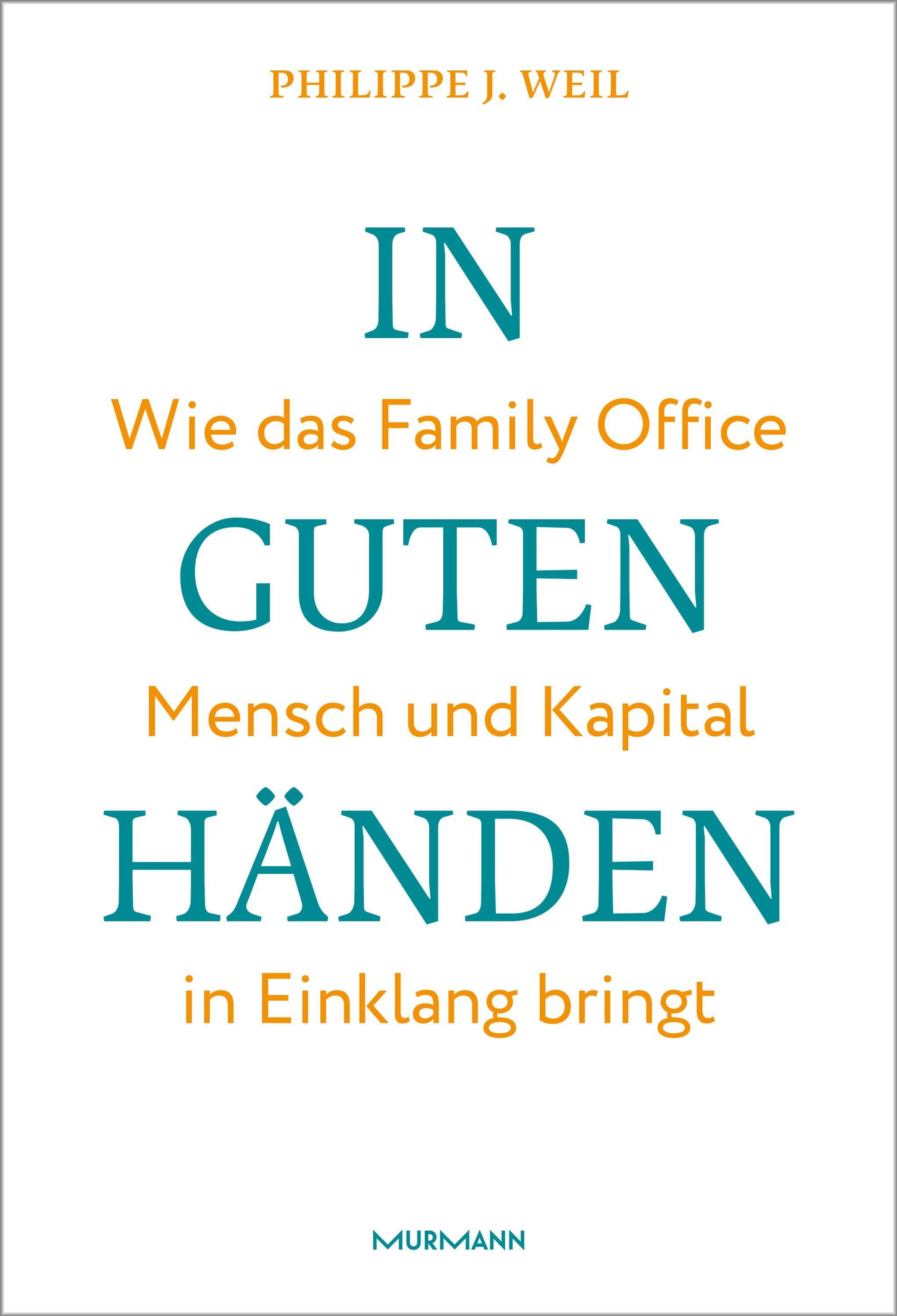 Text: "Philippe J. Weil, IN GUTEN HÄNDEN: Wie das Family Office Mensch und Kapital in Einklang bringt, Murmann." Klare, schlichte Gestaltung., Buch