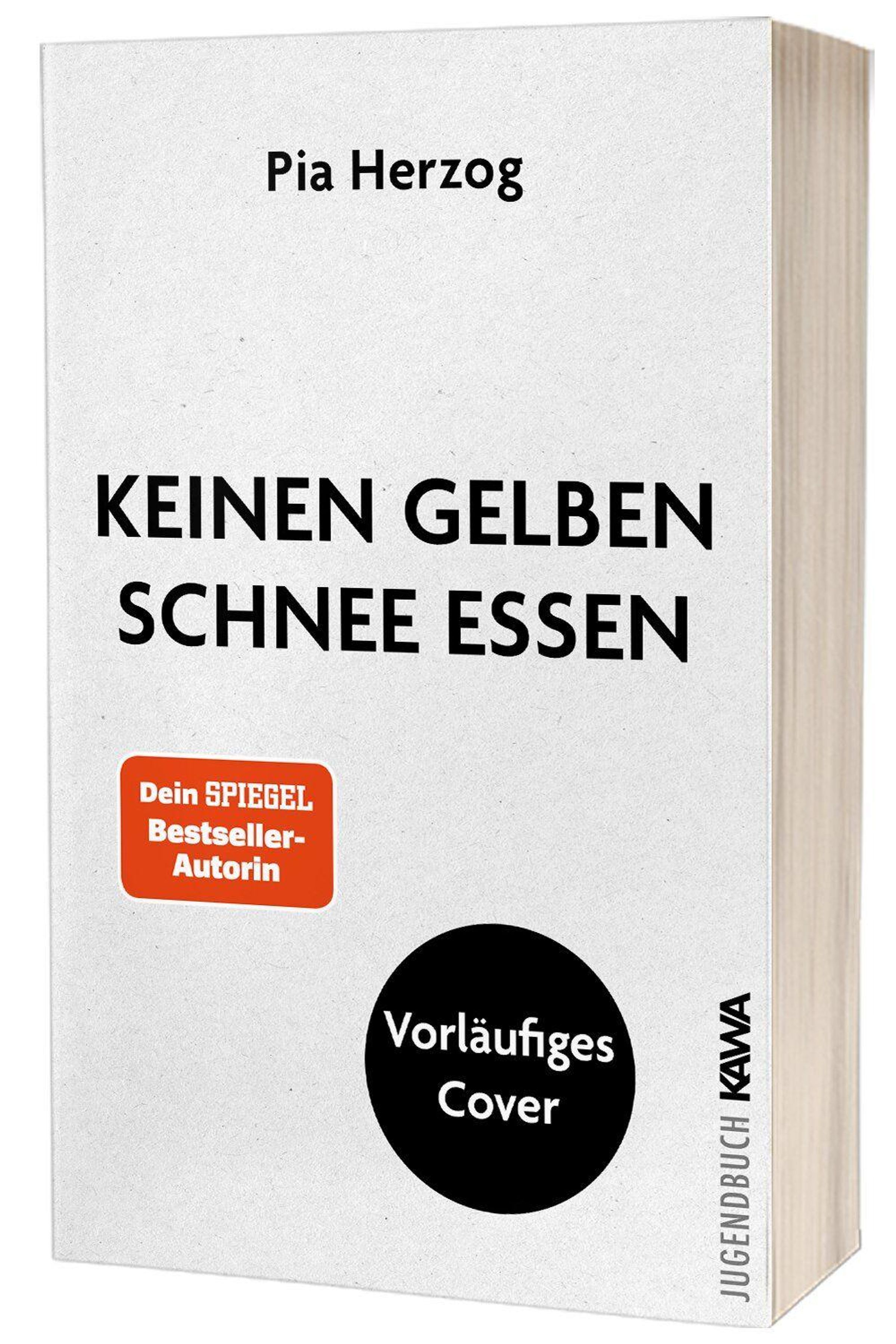 Text: "Pia Herzog", "KEINEN GELBEN SCHNEE ESSEN", "Dein SPIEGEL Bestseller-Autorin", "Vorläufiges Cover". Schlichtes Buchcover., Buch