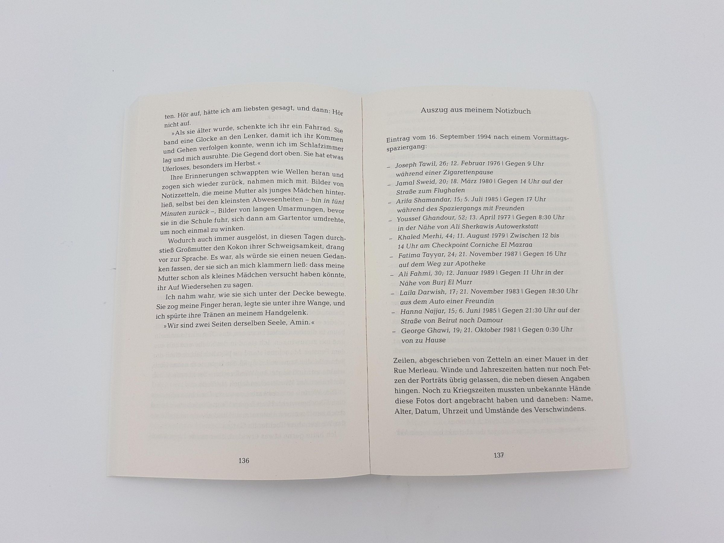 Als 2011 der Arabische Frühling voll entfacht ist, löst der Fund zweier Leichen auch in Beirut erste Unruhen aus. Während schon Häuser brennen, schreibt Amin seine Erinnerungen nieder: an das Jahr 1994, als er als Jugendlicher mit seiner Großmutter aus Deutschland in den Libanon zurückkehrte - zwölf Jahre nach dem Tod seiner Eltern. An seine Freundschaft mit Jafar, mit dem er diese verschwiegene Nachkriegswelt durchstreifte. Und daran, wie er lernen musste, dass es in diesem Land nie Gewissheit geben wird - weder über die Vergangenheit seines Freundes noch über die Geschichte seiner Familie.