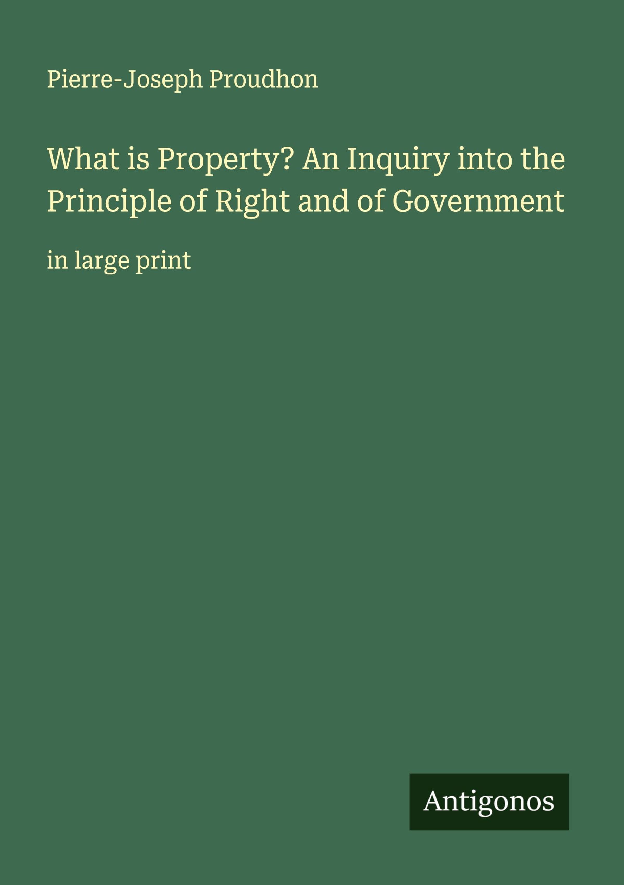 What is Property? An Inquiry into the Principle of Right and of Government
