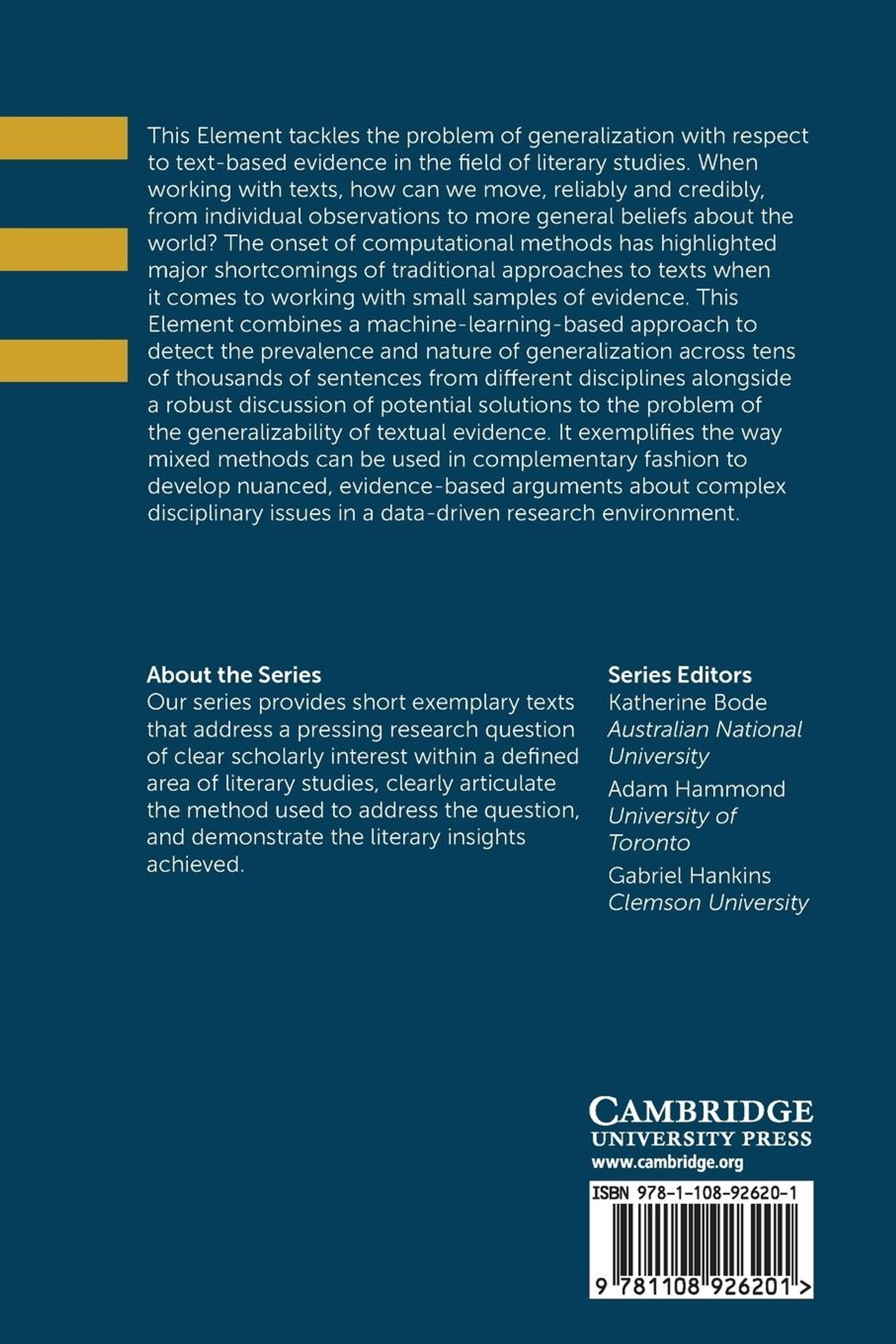 This Element tackles the problem of generalization with respect to text-based evidence in the field of literary studies.