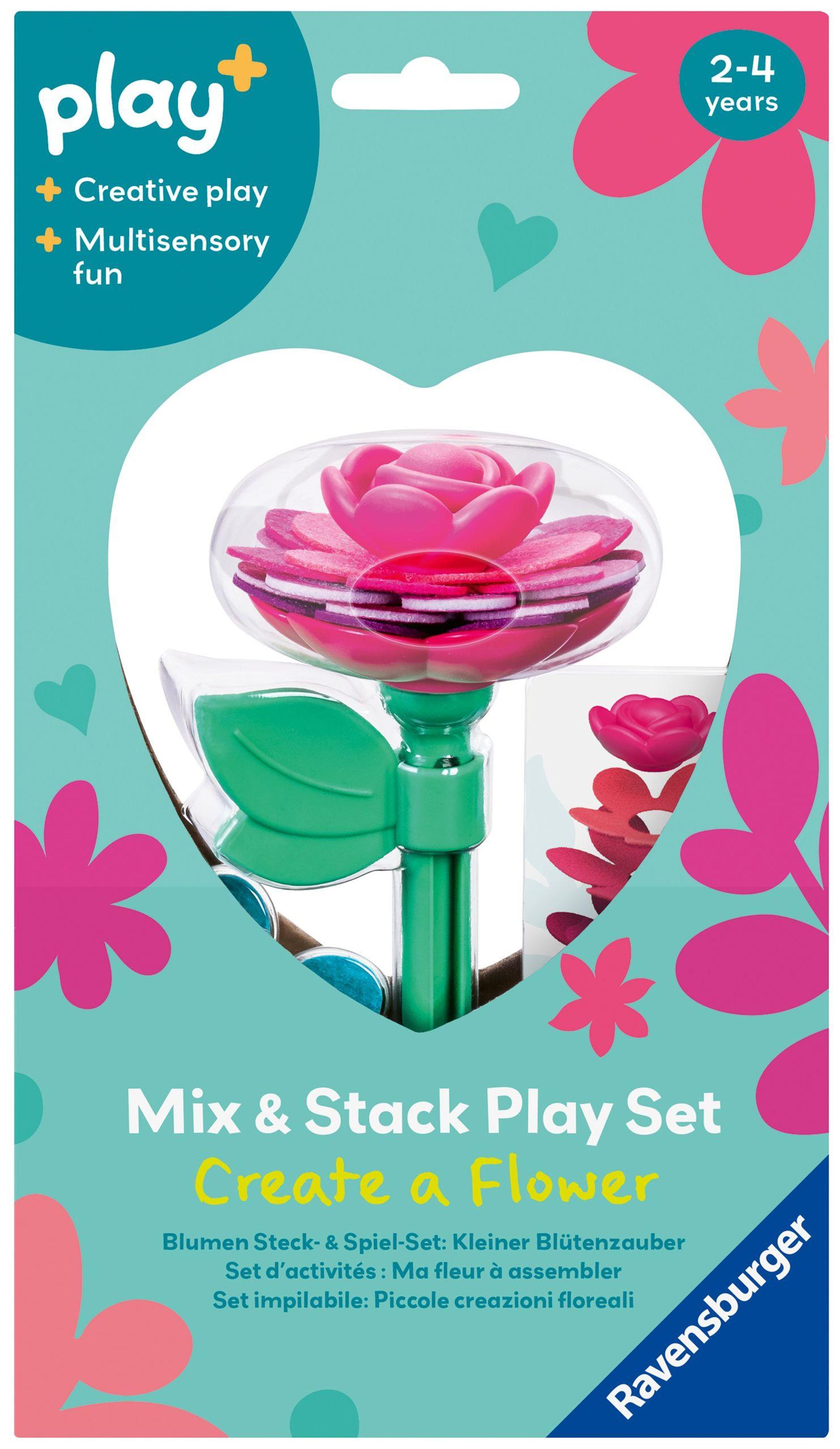 Dieses Spielzeug ab 2 Jahren kombiniert trendiges Steckspiel mit fantasievollem Rollenspiel. Kinder gestalten mit Blüten aus Filz und Kunststoff kreative Blumen. Das trainiert spielerisch die Feinmotorik, Koordination und soziale Interaktionen. Anleitungskarten fördern das logische Denken. Freies Kombinieren regt die Kreativität an. Dieses kleine Kreativ-Spiel-Set ist ideal als Geschenk oder zur Beschäftigung unterwegs. Play+, die neue Baby- und Kleinkindlinie, fokussiert auf eine ganzheitliche frühkindliche Förderung - mit der gesamten Erfahrung der Marke Ravensburger. Die abwechslungsreichen Bücher und Spielzeuge von Play+ garantieren Kindern von 0-3 Jahren jede Menge Spaß und ermöglichen ein spielerisches Lernen und Entdecken - egal ob gemeinsam oder auch allein. Die Bedürfnisse der Kinder und die Anforderungen der Eltern bestimmen die Entwicklung aller Produkte. Der Blick fürs Detail, das besondere Extra und eine moderne Gestaltung machen das Programm von Play+ aus, immer unter Einhaltung der hohen Ravensburger Sicherheits- und Qualitätsansprüche. Denn sicher ist sicher.