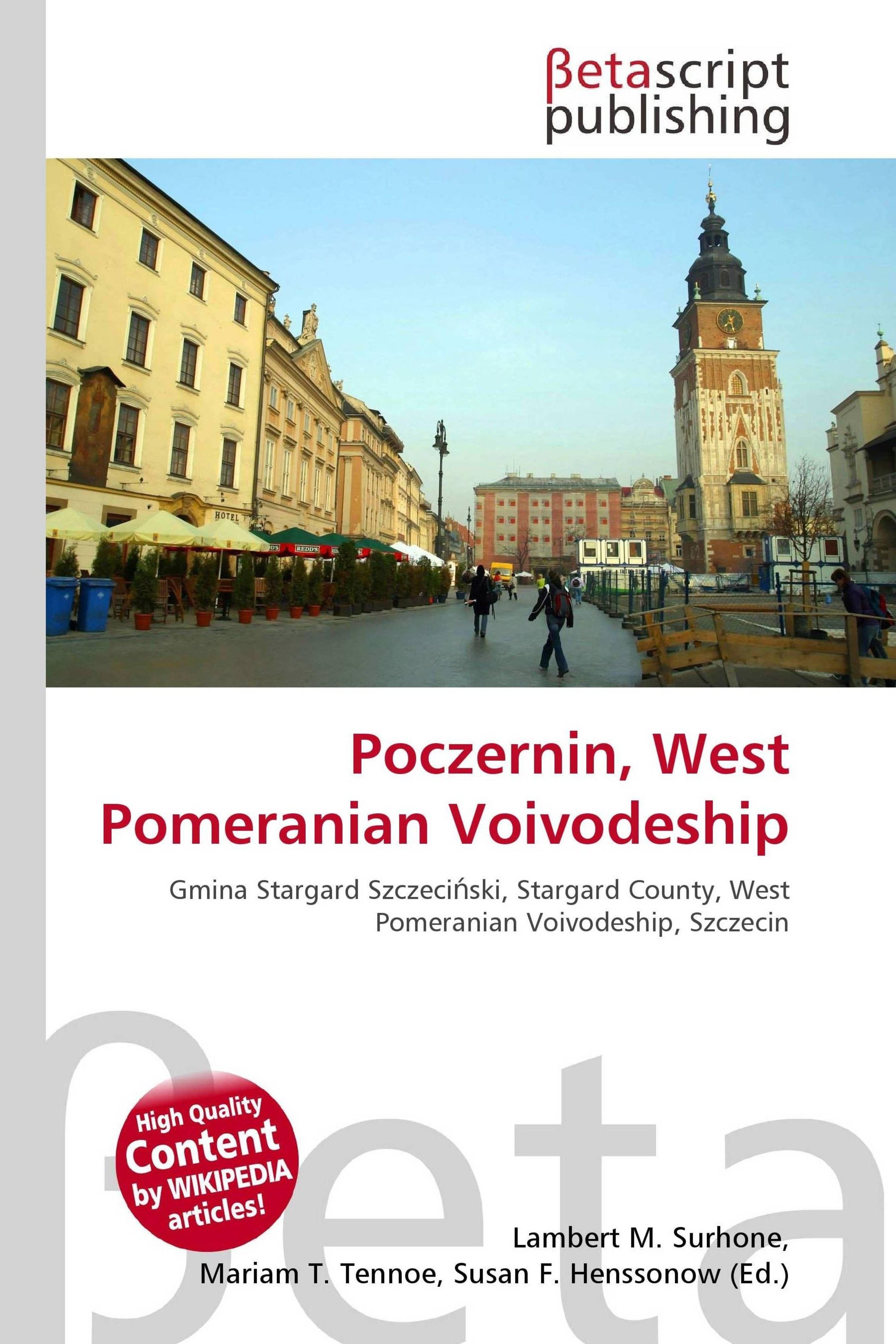 Please note that the content of this book primarily consists of articles available from Wikipedia or other free sources online. Poczernin [ptrnin] (formerly German Pützerlin) is a village in the administrative district of Gmina Stargard Szczeciski, within Stargard County, West Pomeranian Voivodeship, in north-western Poland. It lies approximately 11 kilometres (7 mi) north-west of Stargard Szczeciski and 25 km (16 mi) east of the regional capital Szczecin. Before 1945, the area was part of Germany. For the history of the region, see History of Pomerania. The village has a population of 228. Gmina Stargard Szczeciski is a rural gmina (administrative district) in Stargard County, West Pomeranian Voivodeship, in north-western Poland. Its seat is the town of Stargard Szczeciski, although the town is not part of the territory of the gmina. The gmina covers an area of 318.47 square kilometres (123.0 sq mi), and as of 2006 its total population is 11, 322.