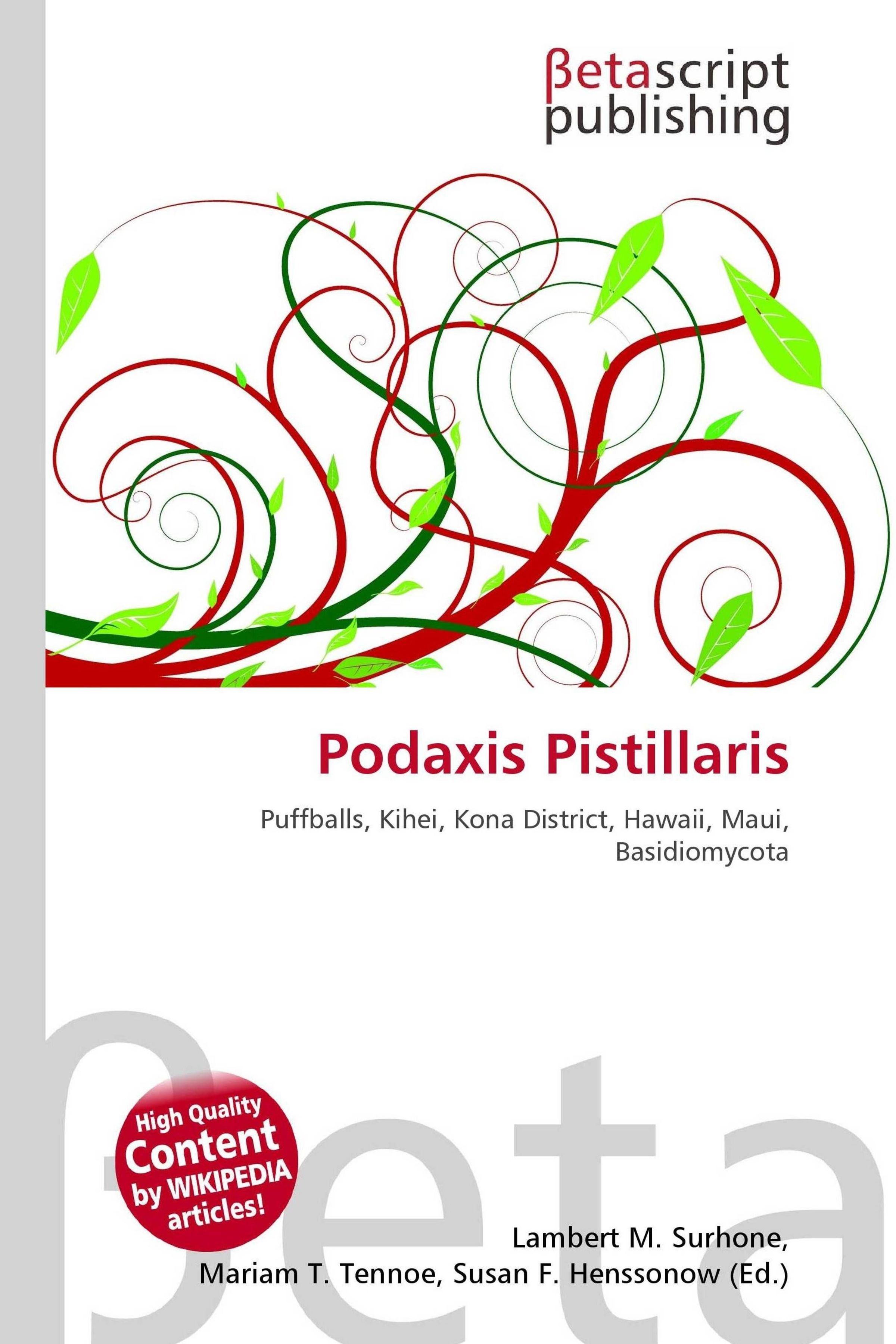 Please note that the content of this book primarily consists of articles available from Wikipedia or other free sources online. Podaxis pistillaris is a very distinctive relative of the puffballs. It grows to 15 cm high and has a hard, woody stem. The large cap, which protects the blackish spore-bearing tissue, splits, and usually falls away at maturity, allowing the spores to be dispersed by wind. Large numbers may appear after soaking rains. It thrives in deserts and semi-deserts of Australia and other countries. In the Hawaiian Islands, it is frequently encountered along roadsides and in disturbed areas on the dry sides of the islands, especially in the Kona area of Hawaii and the Kihei area of Maui. Older synonyms for this species include Lycoperdon pistillare L. (1771) and Scleroderma pistillare (L.) Pers. (1801). The spores are usually 10-14 (-16) by (8-) 9-12 µm broadly oval to sub-globose, smooth yellow to deep reddish-brown with a double wall, truncate base, and apical pore.