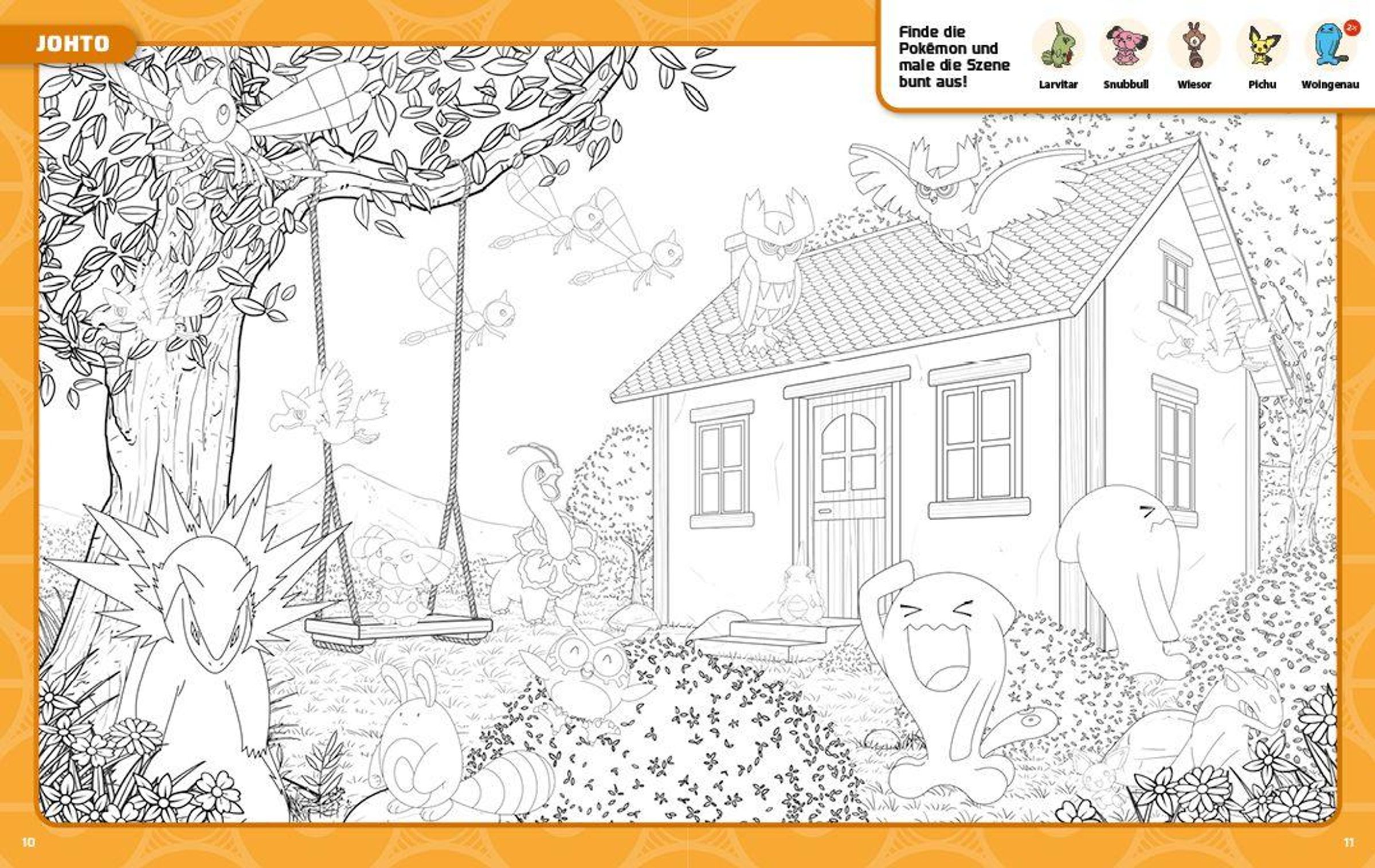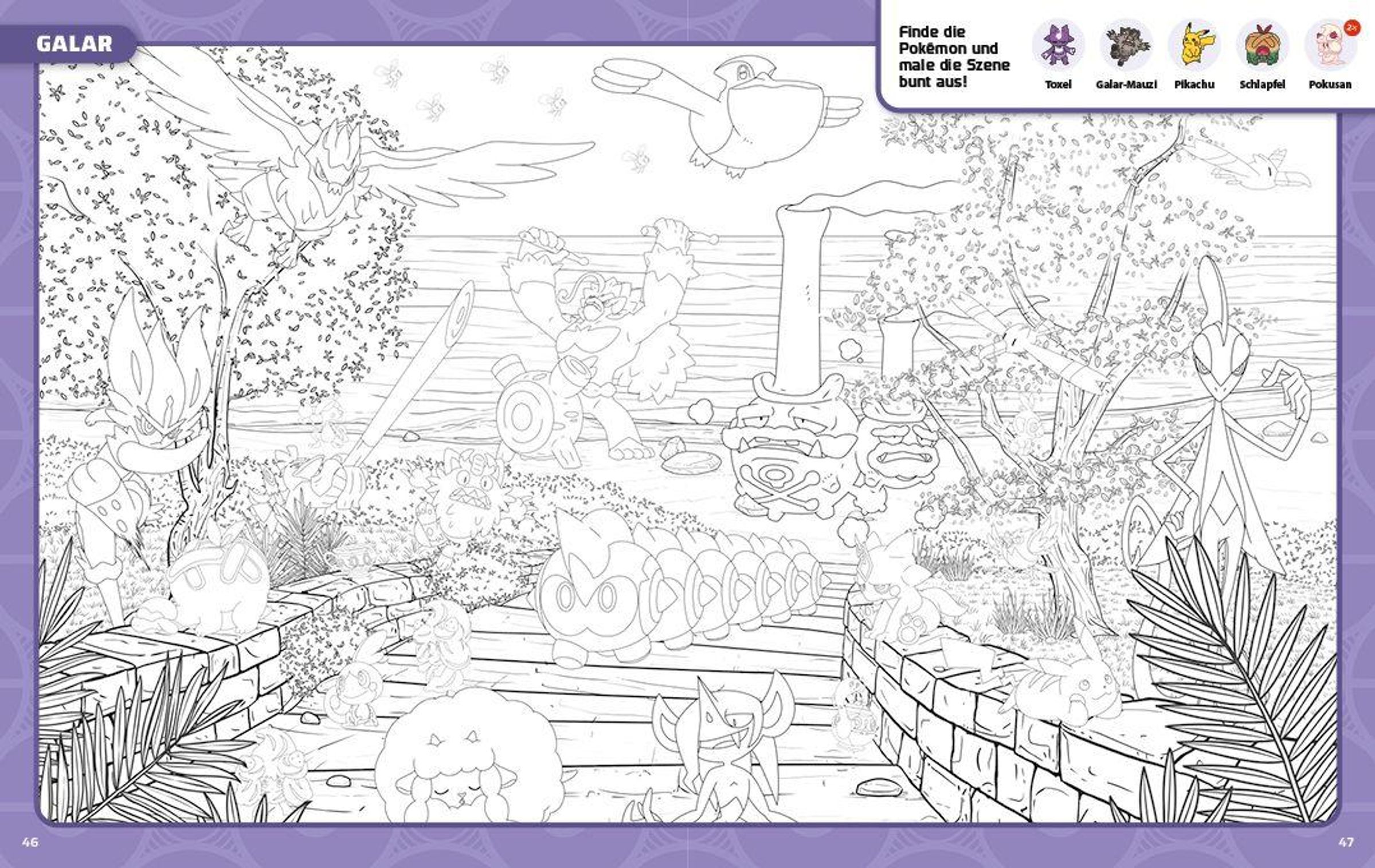 Bereise die neun Pokémon-Regionen in diesem spannenden Wimmelabenteuer! Von Kanto bis Paldea erwarten dich in jeder Region coole Wimmelbilder. Und das Beste: Wenn du die Pokémon entdeckt hast, kannst du die Bilder im Anschluss noch mit deinen Lieblingsfarben ausmalen.