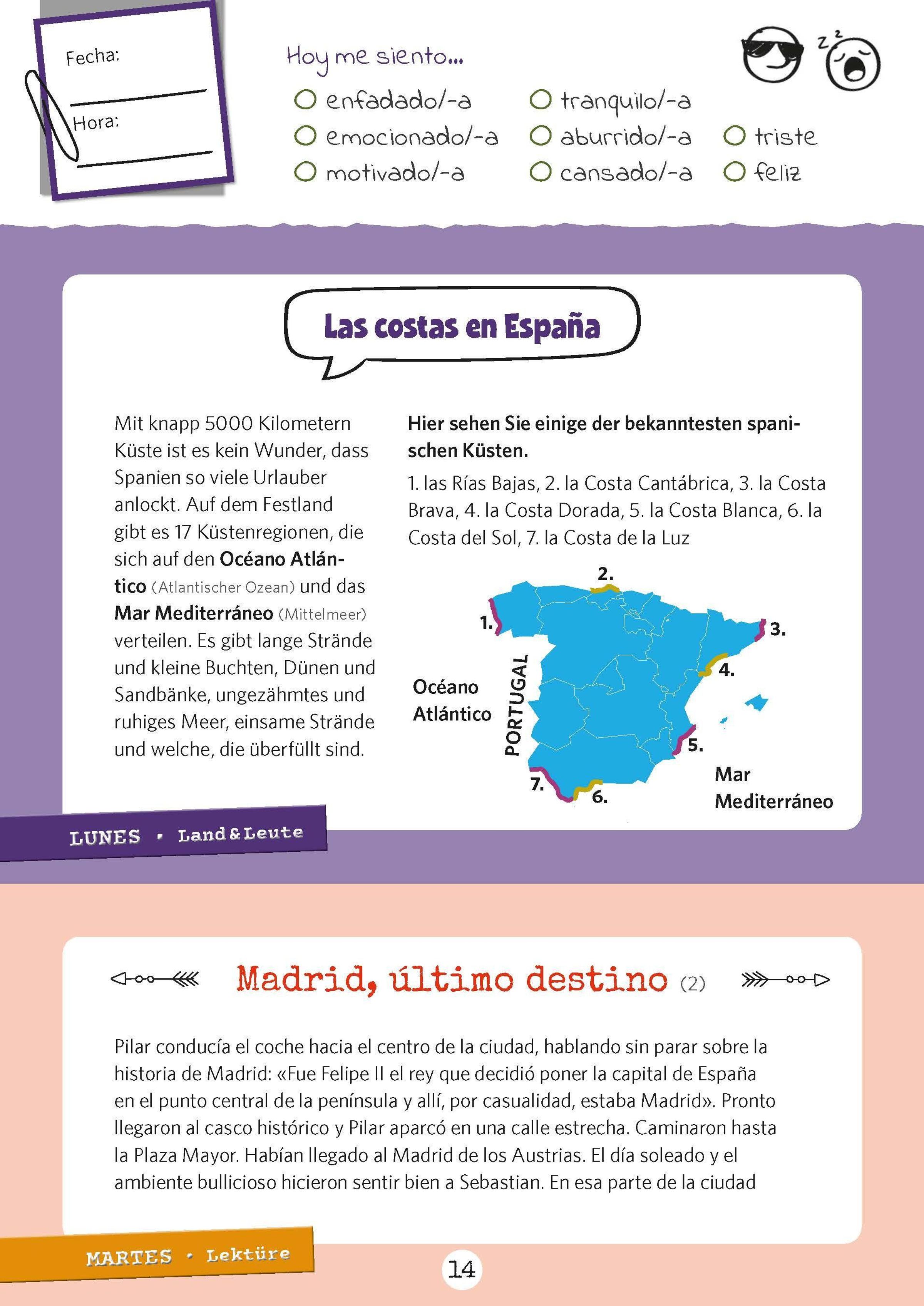 Interessantes über Land und Leute, unterhaltsame Lesetexte, Grammatik und Wortschatz, Witze und zum Abschluss fürs Wochenende etwas Kulinarisches: Nimm dir täglich deine kleine Auszeit und erweitere so effektiv deine Sprachkenntnisse. Mit täglichem Kreativteil zum Ausfüllen.