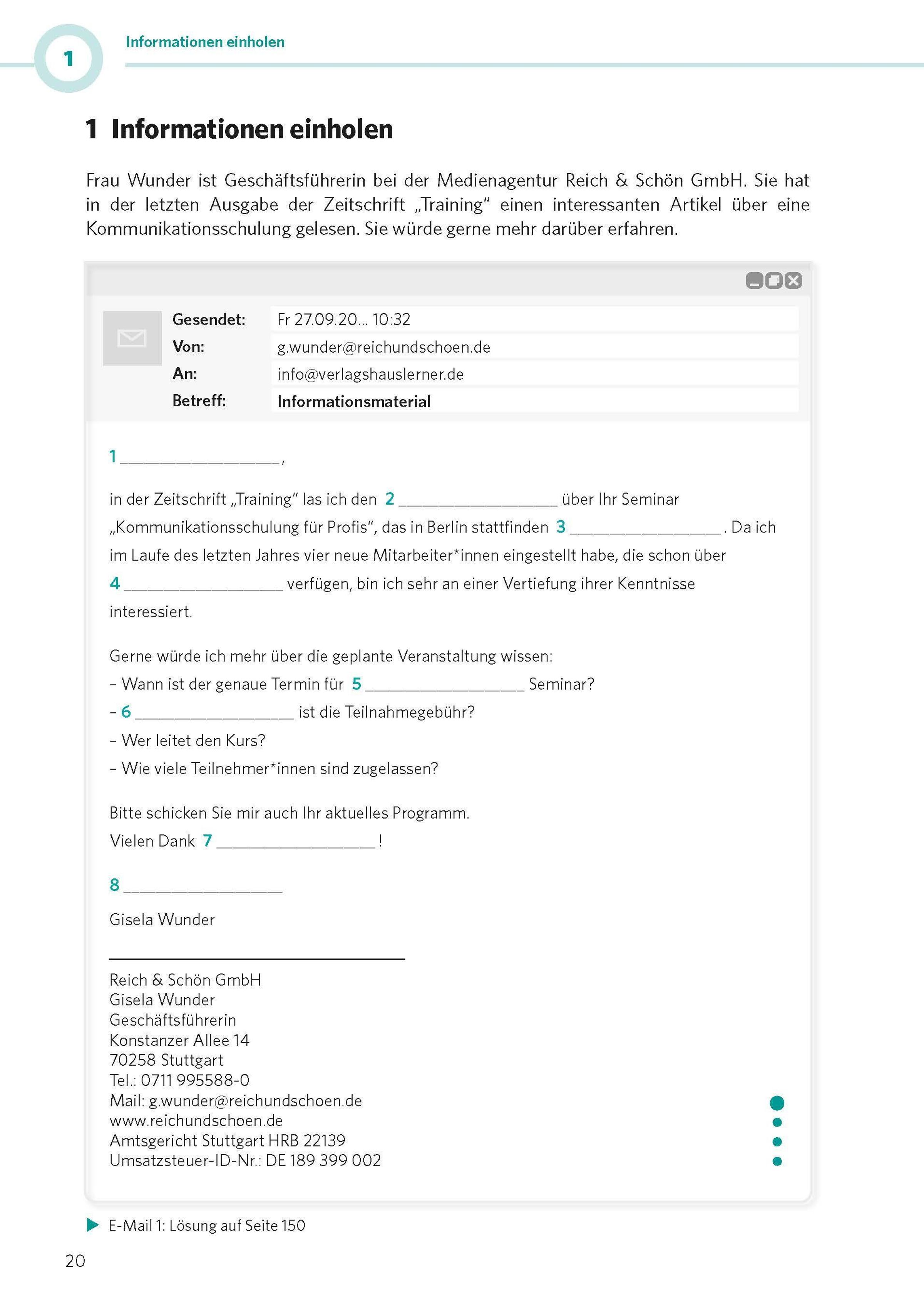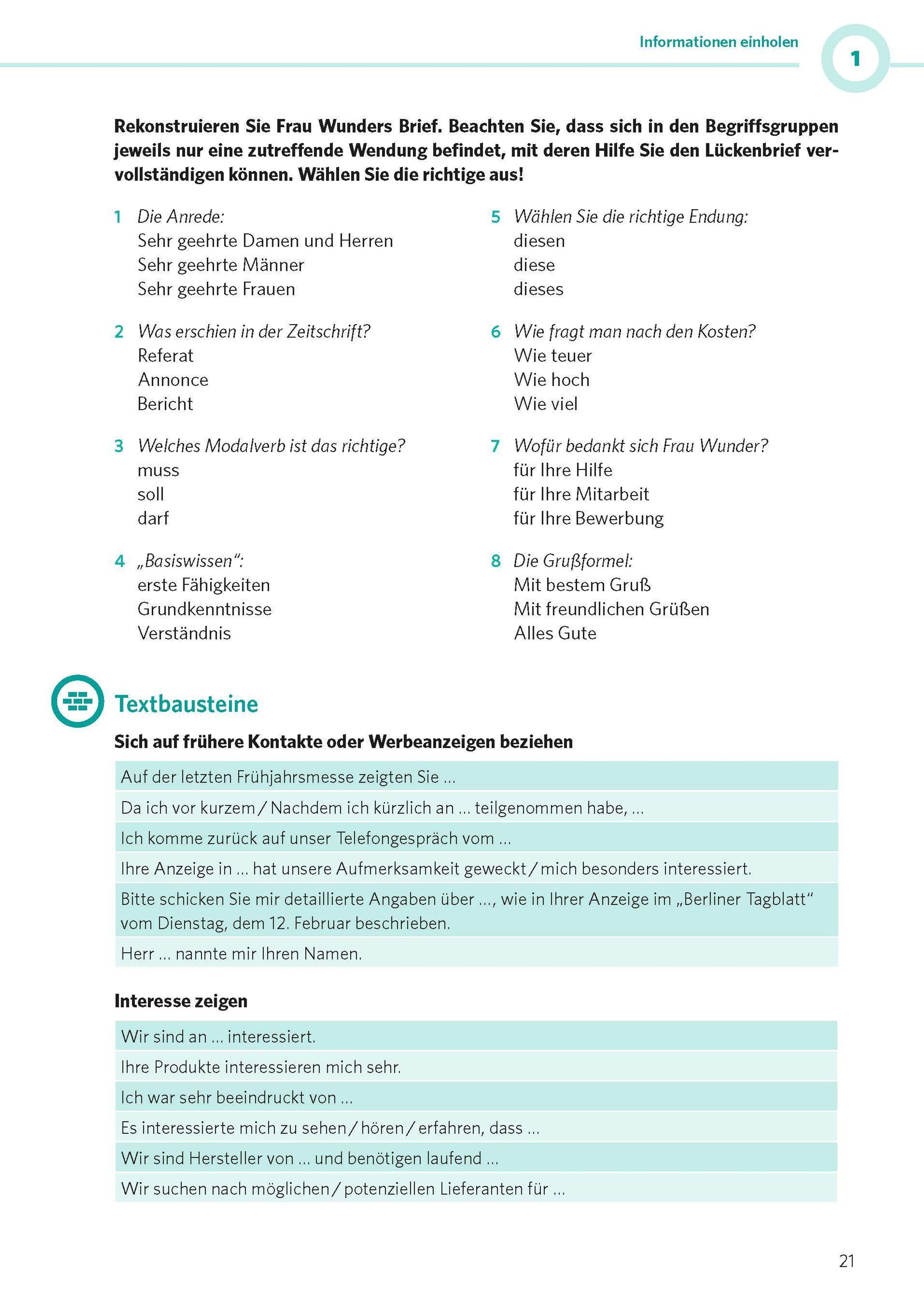 • Mehr als 800 Mustertexte und Textbausteine für E-Mails und Briefe zum Nachschlagen und Üben mit MP3-Download