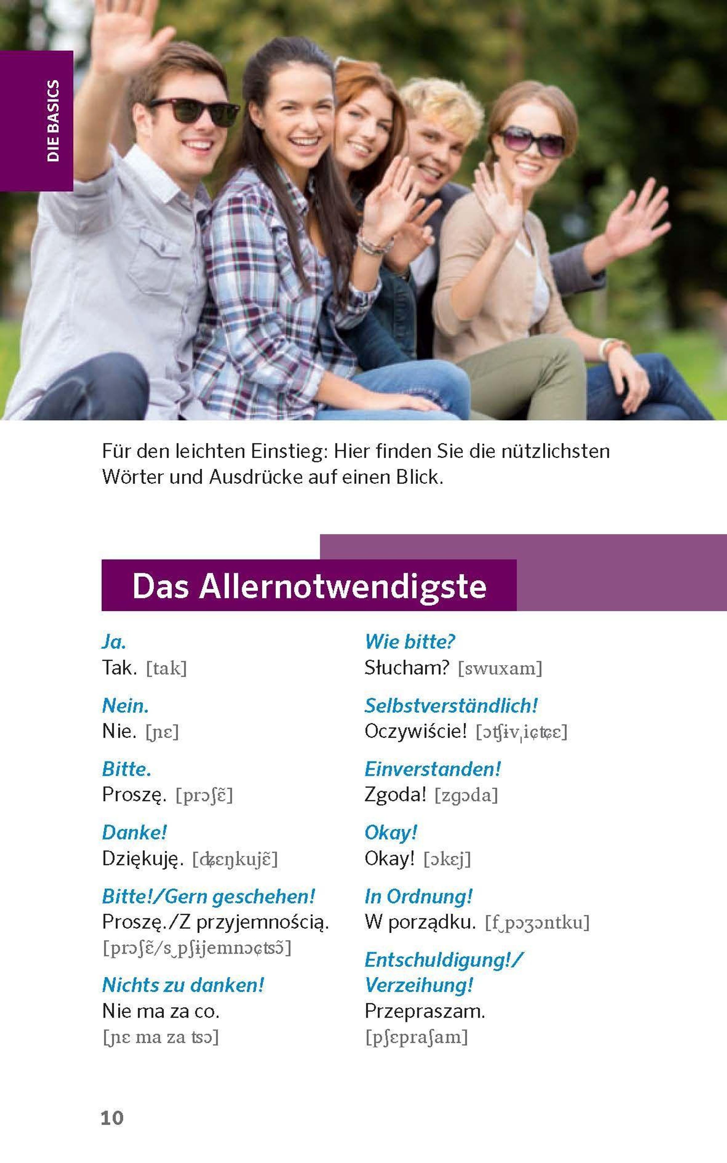 - Mit Klappen an den Umschlagsseiten mit den wichtigsten sprachlichen Basics und Erklärungen zur polnischen Aussprache. Auch zur praktischen Verwendung als Lesezeichen.
