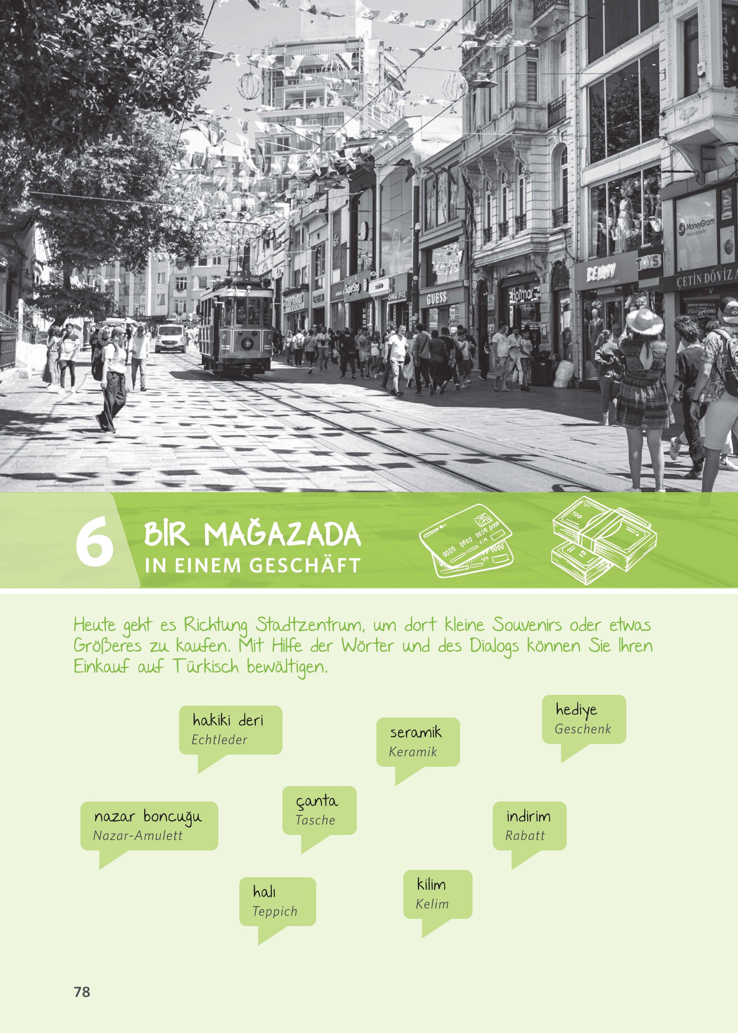 "Türkisch leicht & locker", ohne Grammatik. "Komplett bei null anfangen!" Oben Kuppel, Papierflieger, unten App-Symbol., Buch