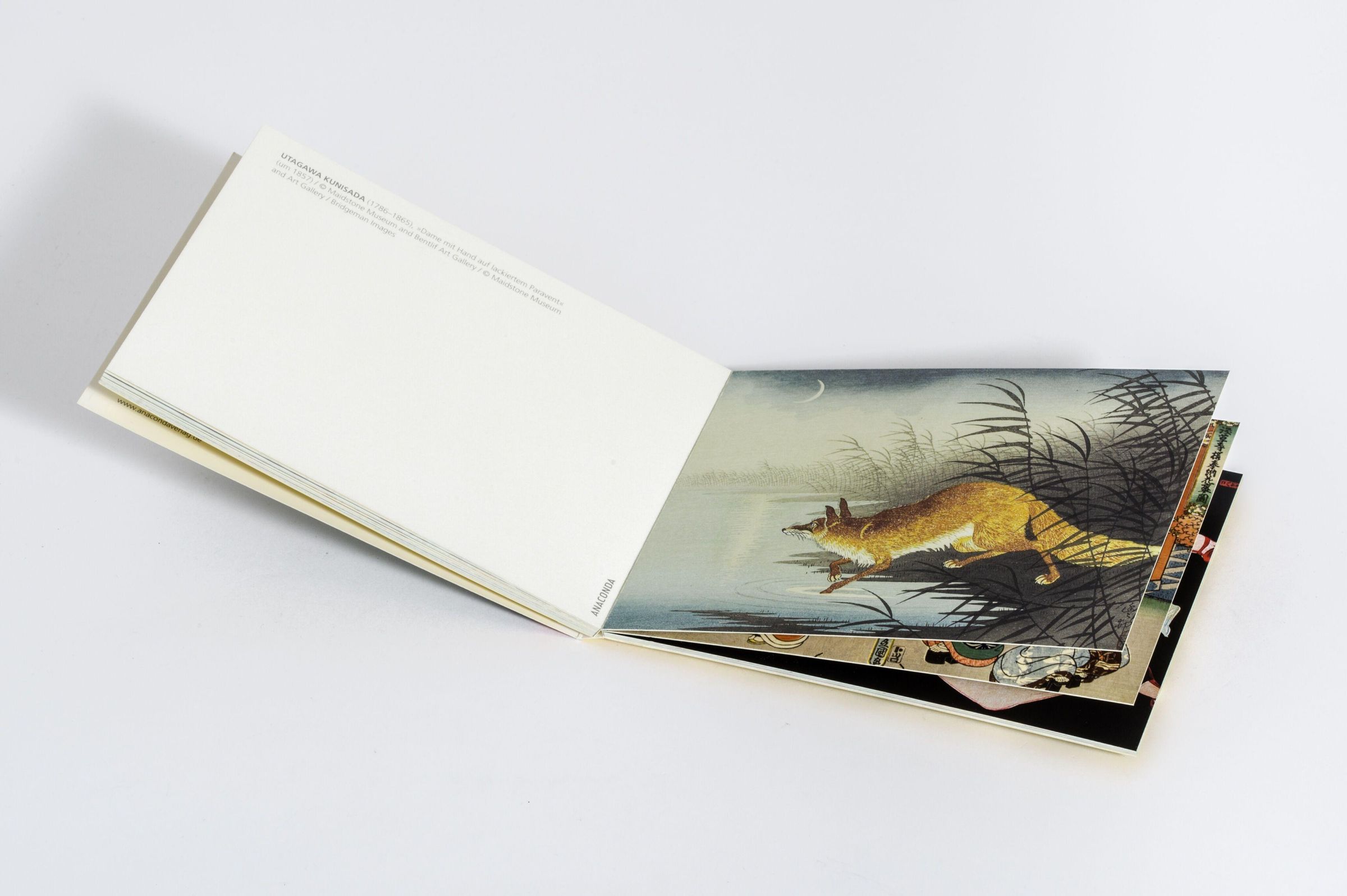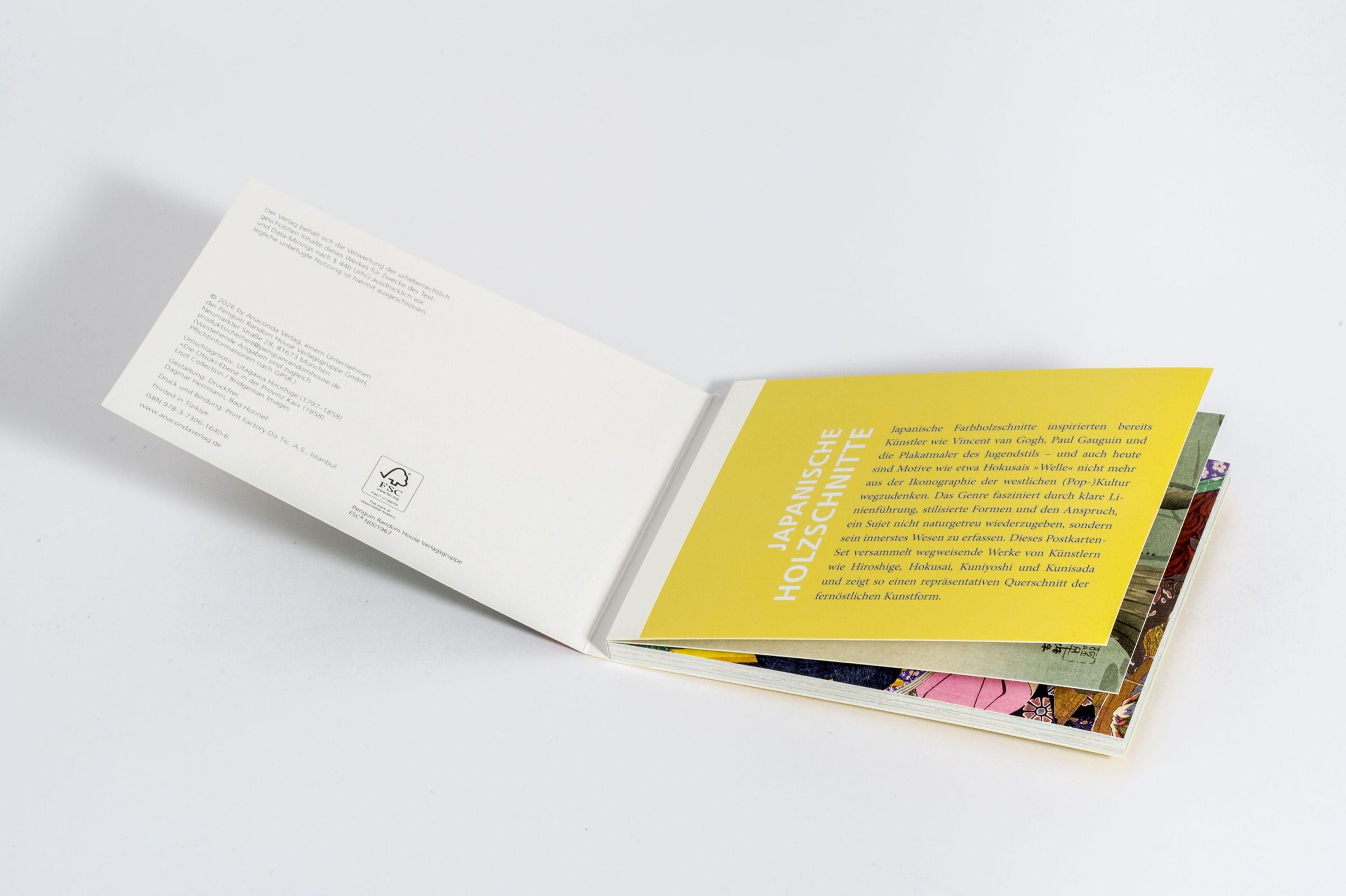 Japanische Farbholzschnitte inspirierten bereits Künstler wie van Gogh, Paul Gauguin und die Plakatmaler des Jugendstils - und auch heute sind Motive wie etwa Hokusais 'Welle' nicht mehr aus der Ikonographie der westlichen (Pop-)Kultur wegzudenken. Das Genre fasziniert durch klare Linienführung, stilisierte Formen und den Anspruch, ein Sujet nicht naturgetreu wiederzugeben, sondern sein innerstes Wesen einzufangen. Dieses Postkarten-Set versammelt wegweisende Werke von Künstlern wie Hiroshige, Hokusai, Kuniyoshi und Kunisada und zeigt so einen repräsentativen Querschnitt der fernöstlichen Kunstform.