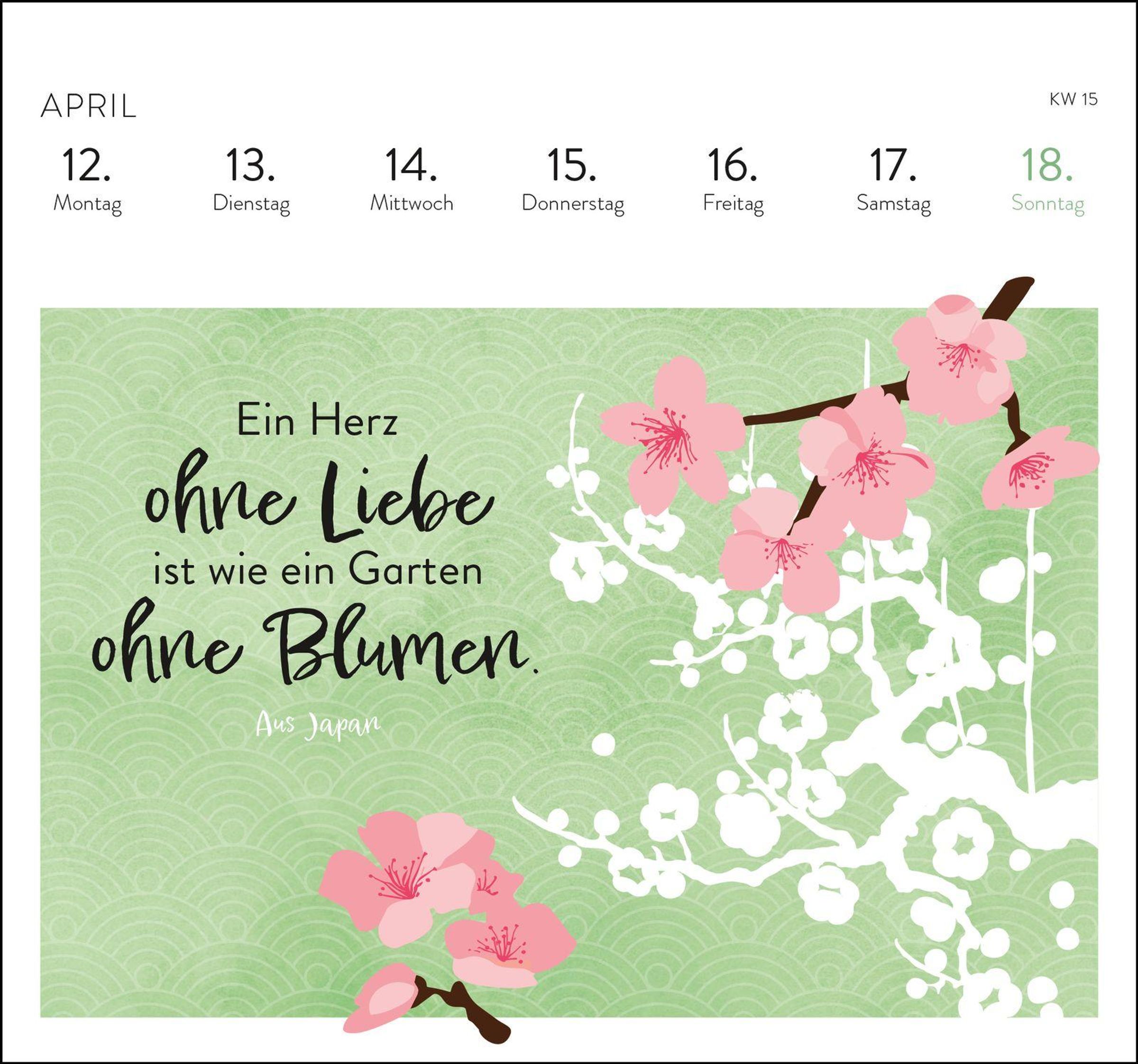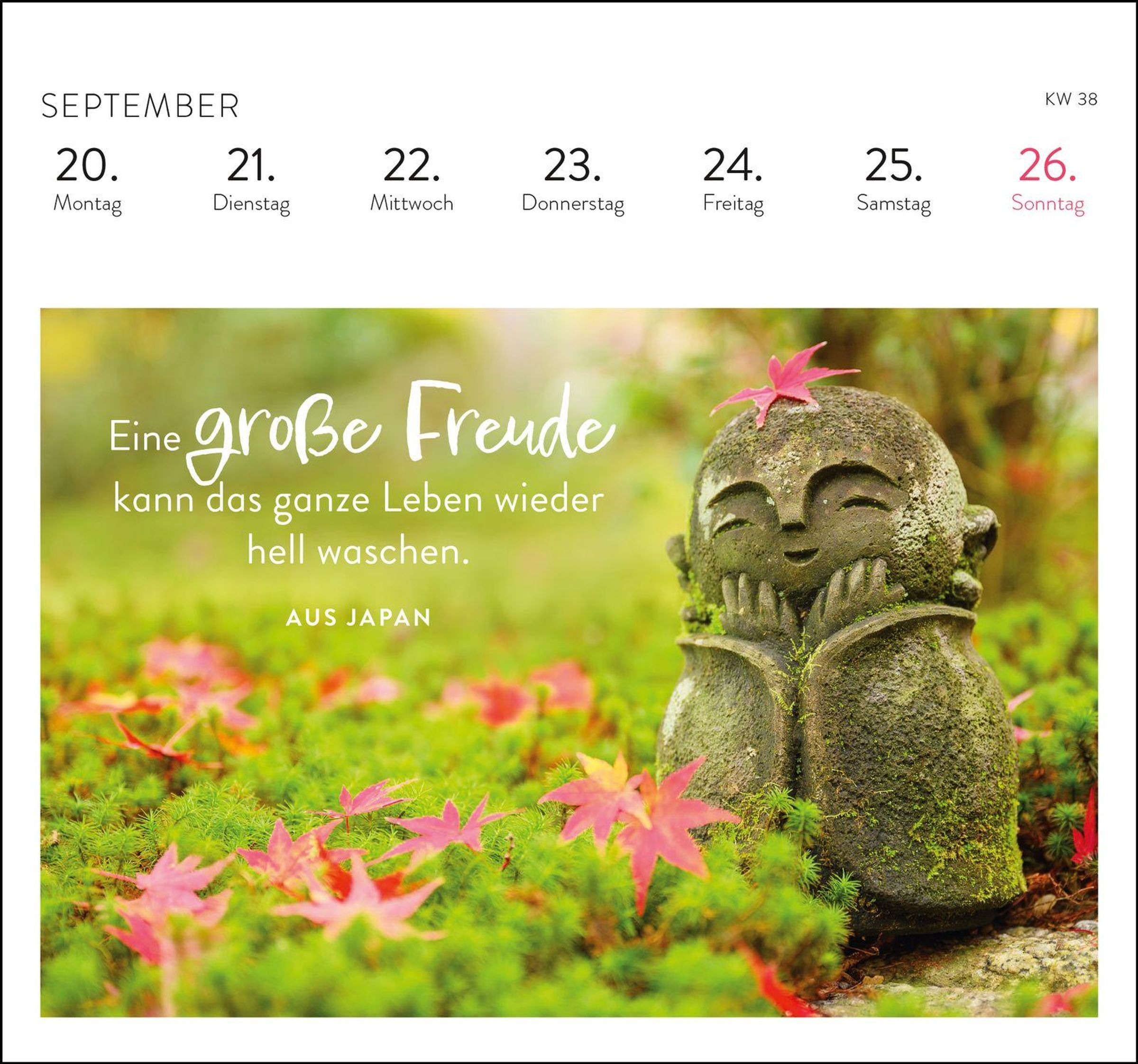 Erleben Sie jeden Tag Momente der Inspiration und Gelassenheit mit diesem einzigartigen Postkartenkalender. Atmosphärische Bilder kombiniert mit inspirierenden Weisheiten aus Japan bieten Ihnen eine wertvolle Quelle der Ruhe und Besinnung.