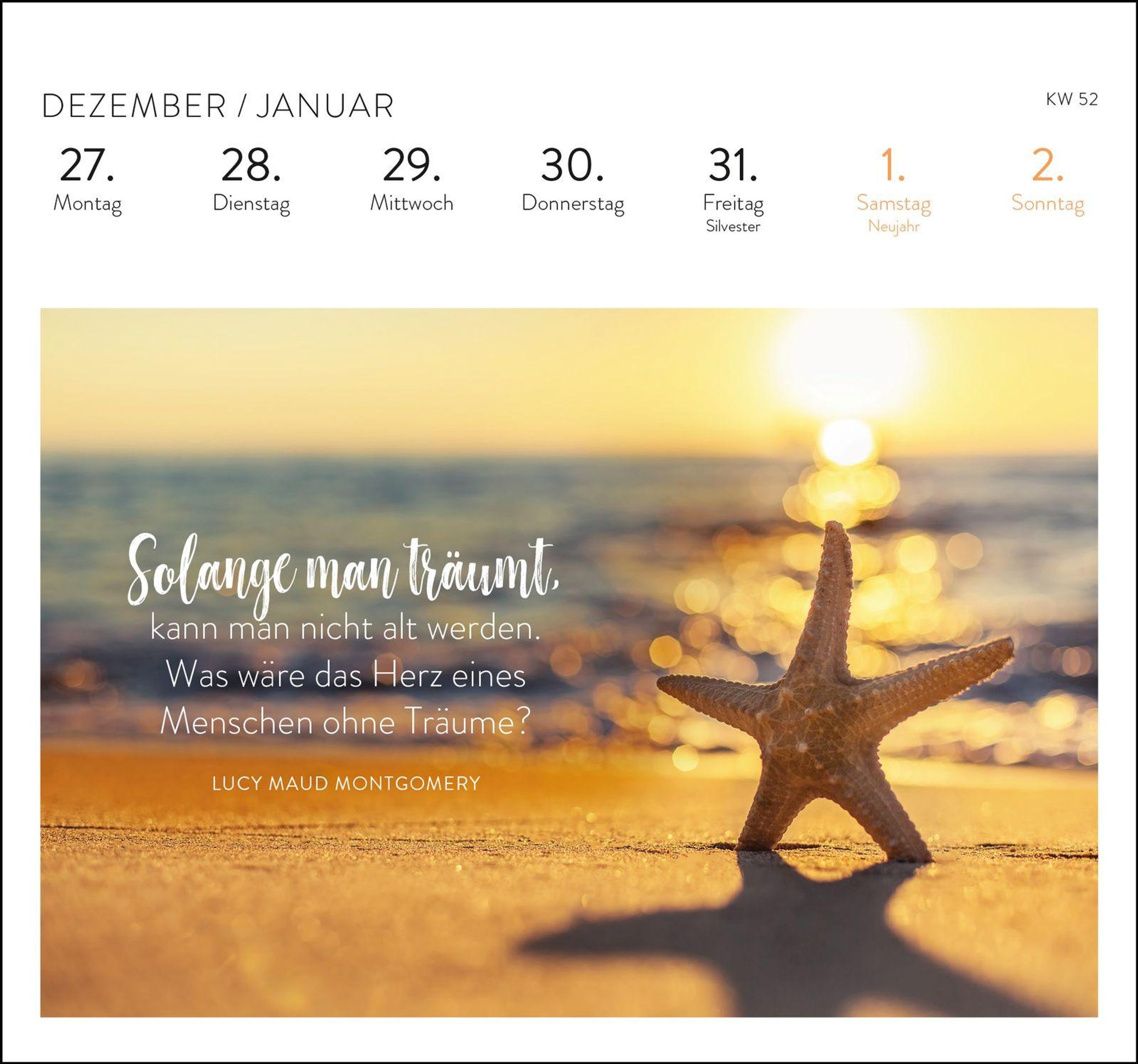 Für die tägliche Auszeit vom hektischen Alltag bringt der Postkarten-Kalender Träume vom Meer 2027 das Meer zu dir nach Hause: Ob Ostsee, Nordsee, Mittelmeer oder exotische Strände - die dekorativen Postkarten, kombiniert mit stimmungsvollen Zitaten, laden zum Träumen ein und wecken Vorfreude auf den nächsten Urlaub am Meer. Der Tischkalender 2027 ist auch ein schönes kleines Geschenk im Advent oder zu Silvester für alle, die das Meer lieben.