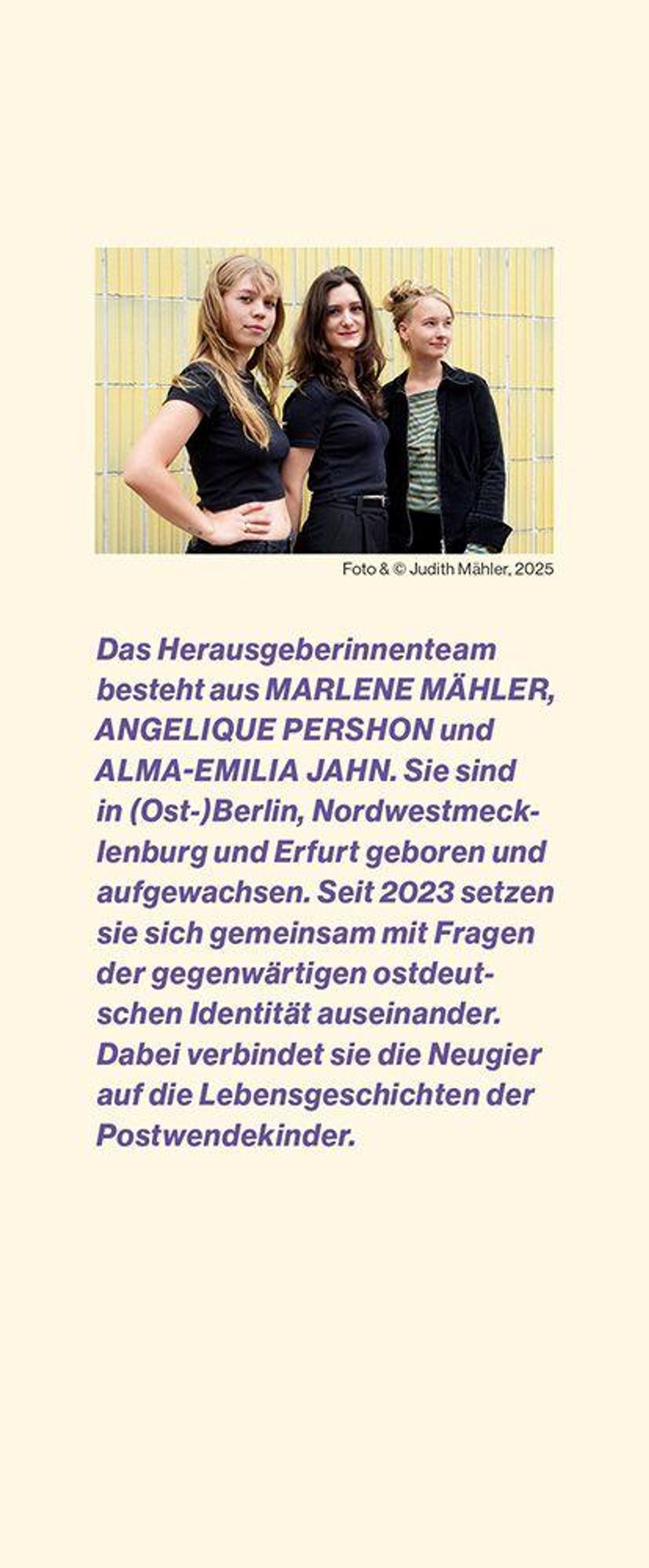 - Alma-Emilia Jahn, Marlene Mähler, Angelique Pershon