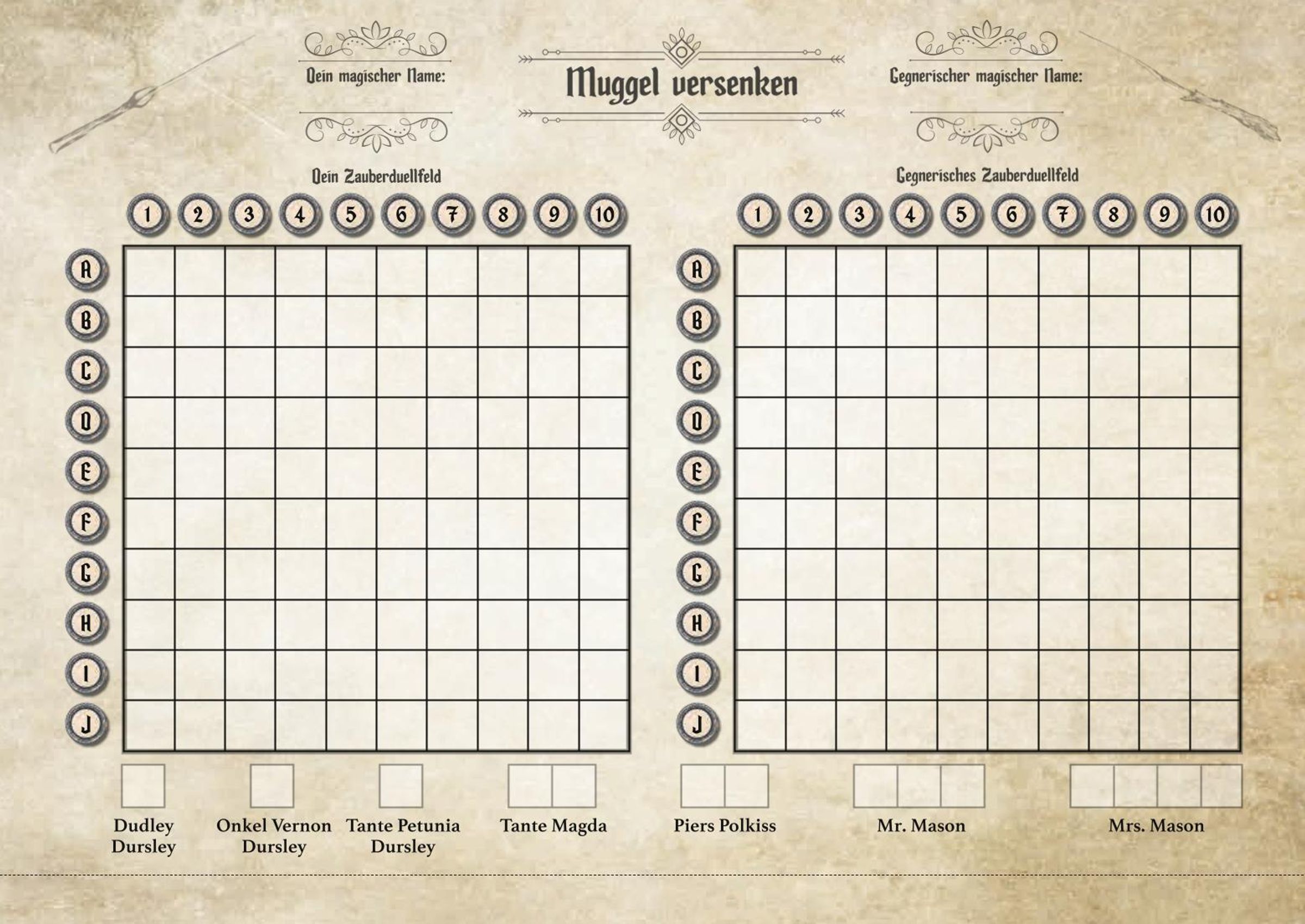 Du wolltest schon immer einmal mit Harry, Ron, Hermine & Co. gegen Du-weißt-schon-wen kämpfen? In der magischen Edition des Spieleklassikers Schiffe versenken hast jetzt du die Chance dazu! Seelenaussaugenden Dementoren, skrupellose Todesser und die bösesten Zauberer und Hexen aus dem Potterversum erwarten euch! Suche strategisch und messe dich mit deinen Freunden im ultimativen Zauber-Duell. Finde 140 magische Objekte, furchteinflößende Kreaturen und dunkle Feinde, die es zu verzaubern gilt. Kannst du die Horkruxe zerstören, die Schlacht um Hogwarts gewinnen und Lord Voldemort besiegen?