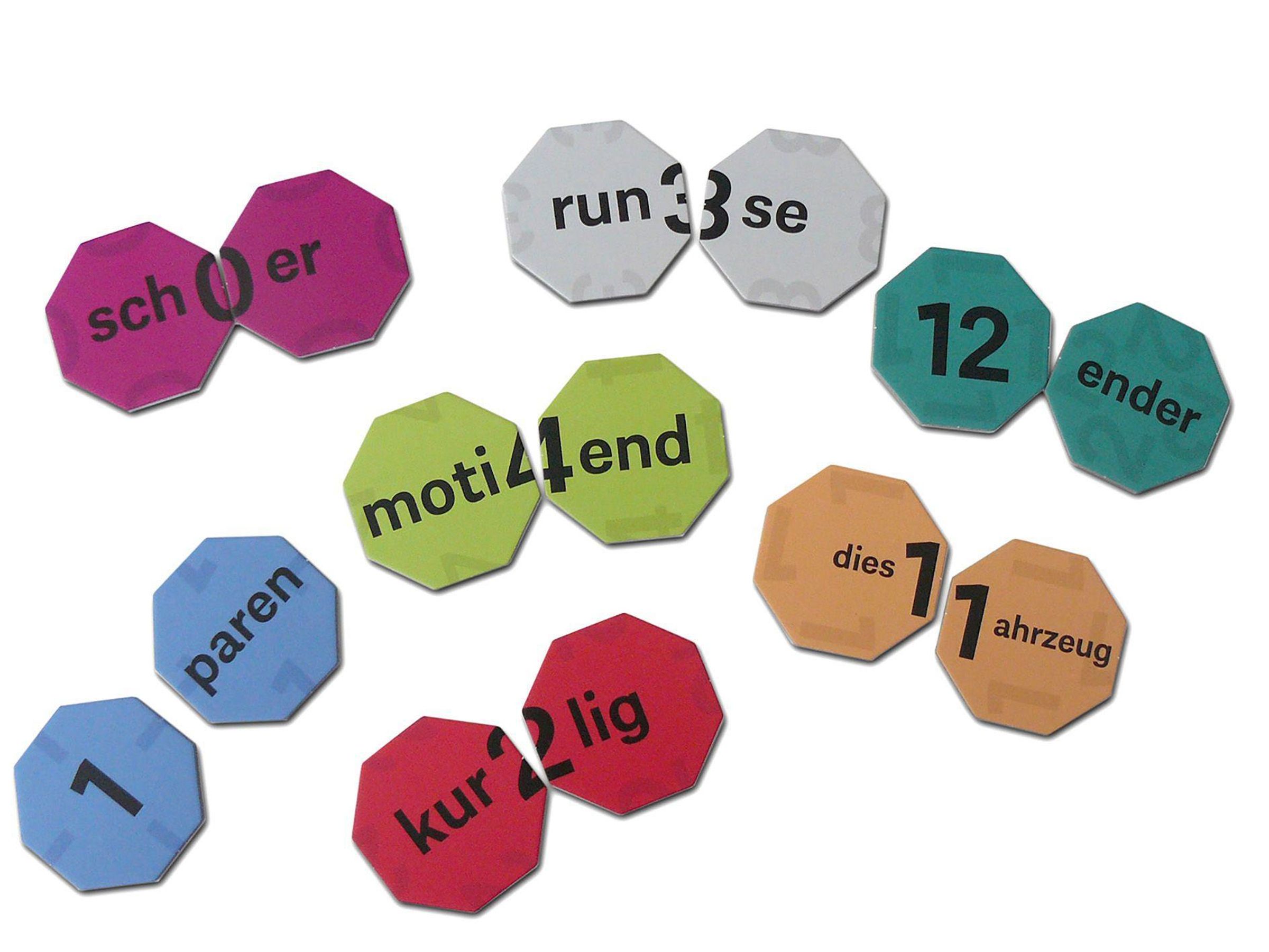 Dieses Spiel ist eine witzige Zahlensuche für Sprachfreunde. Wer eine 4 im Kla4 oder eine 0 im Sch0er entdeckt, kommt schnell zur1icht, wie moti4end es ist, versteckte Zahlen in Wortenzufinden. Eine systematische Suche hat eine überraschend große Menge an verborgenen Zahlen in Wörtern zutage gefördert, die häufig ziemlich gut versteckt sind. So war die Spielidee geboren. Passend zum Inhalt wurde die Sch8tel als 8eckiges Prisma konzipiert: Ein anregendes Familienmemo. 72 dicke Pappkarten in der 8eckigen Röhre. Spieleranzahl: 2 bis unendlich. Spieldauer: ca. 20 Minuten