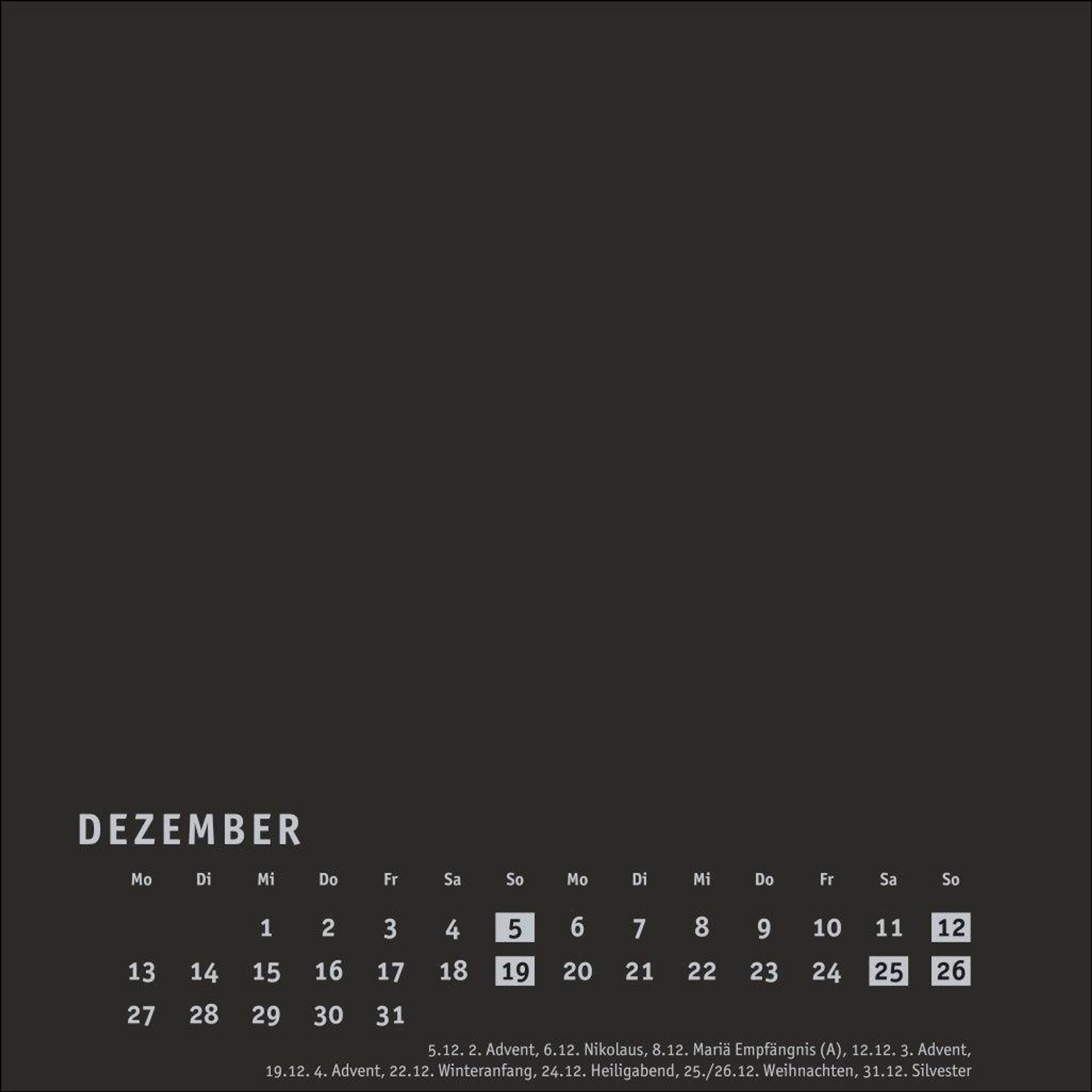 Neutraler Monatskalender (Format 17, 5 x 17, 5 cm) in edlem Schwarz und auf hochwertigem Karton
