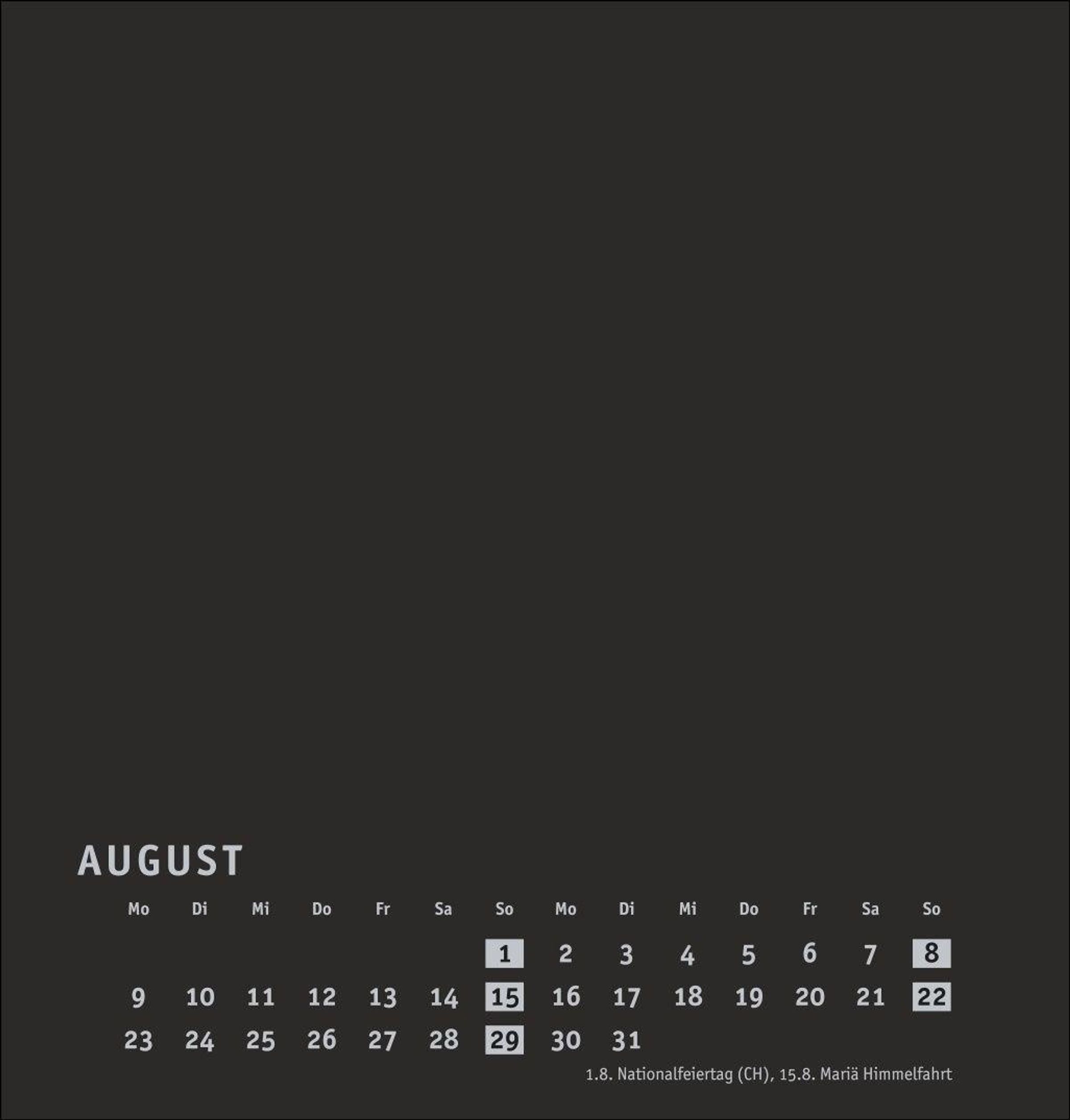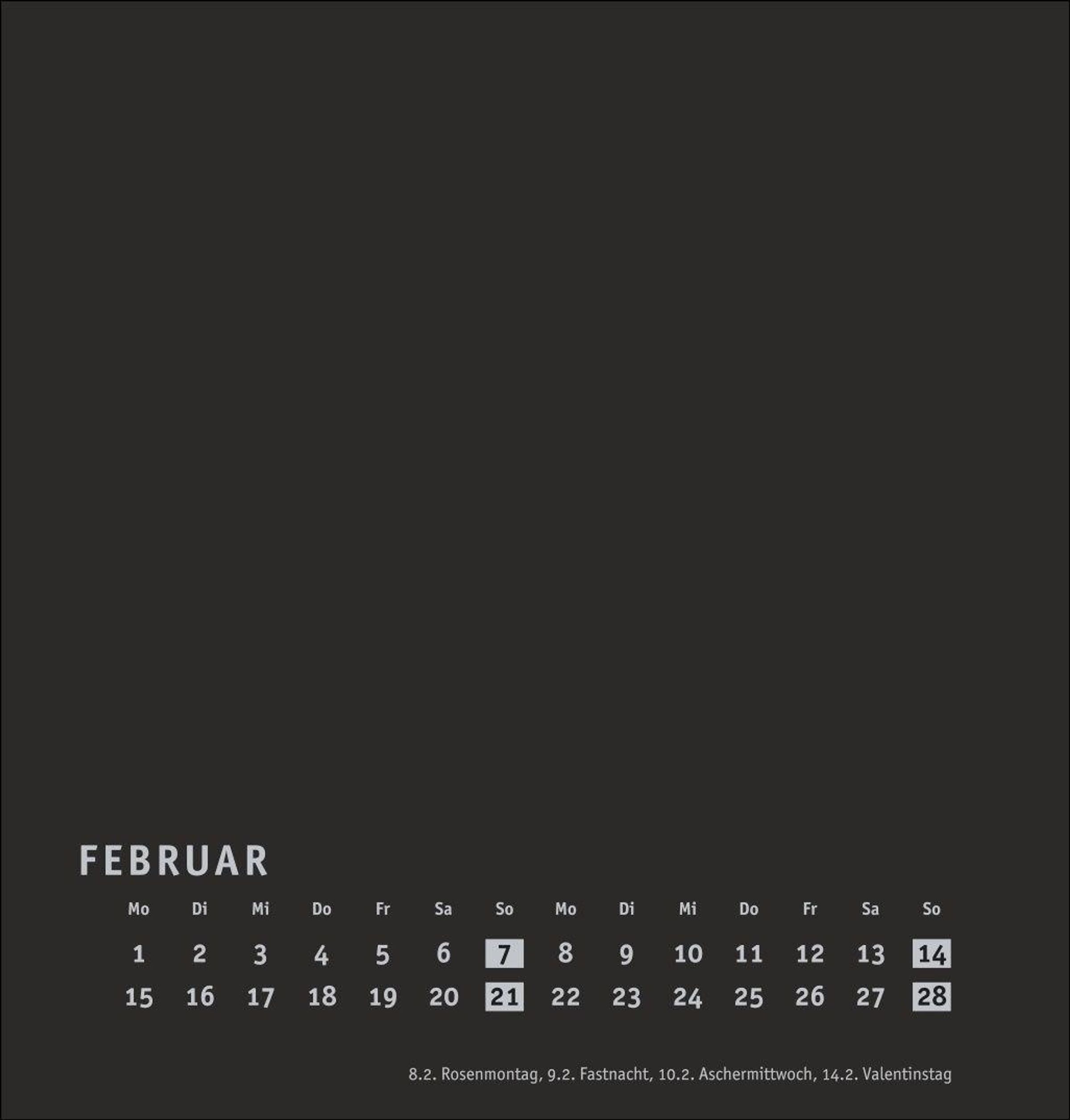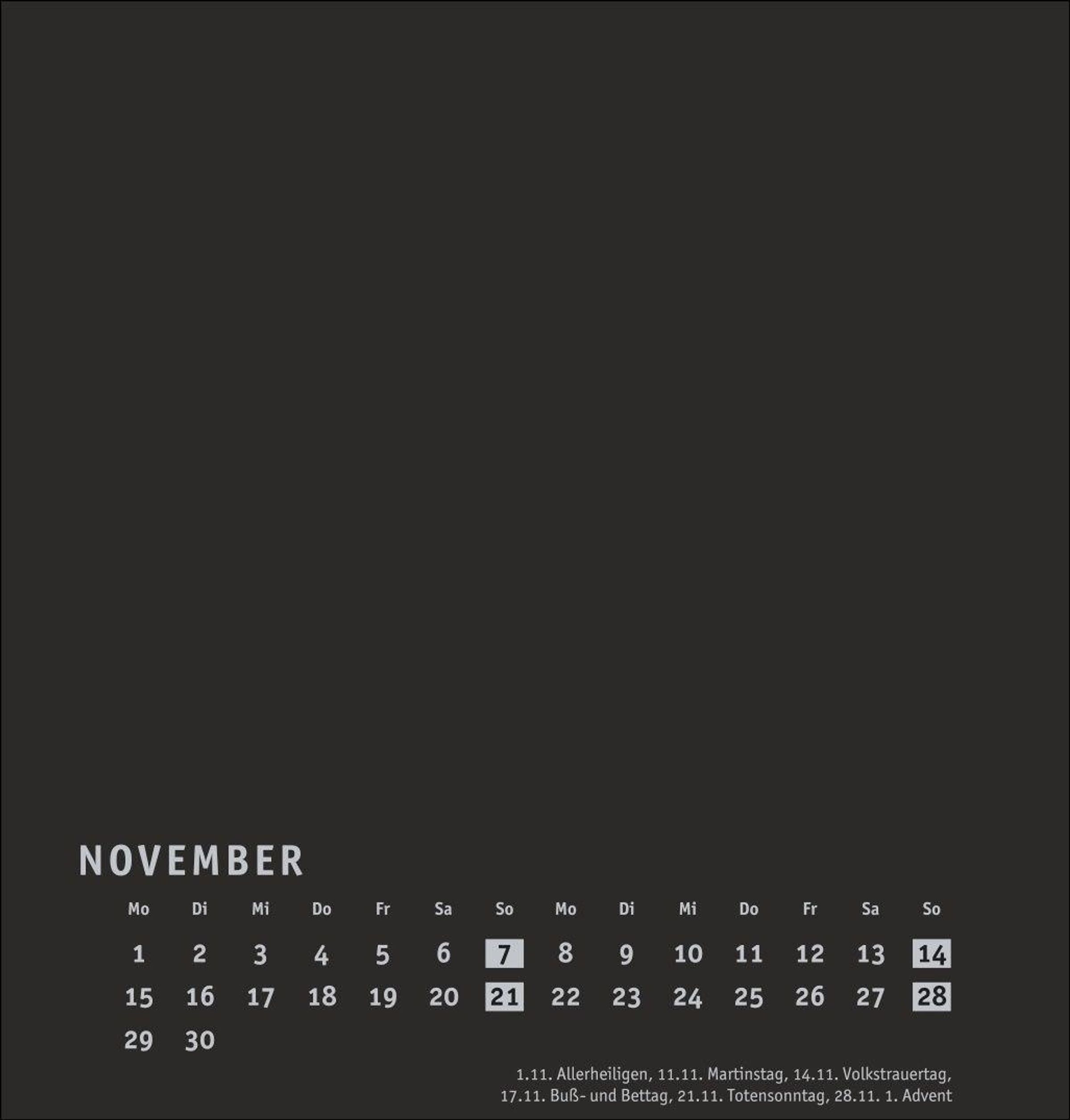 Neutraler Monatskalender (21 x 22 cm) in edlem Schwarz und auf hochwertigem Karton