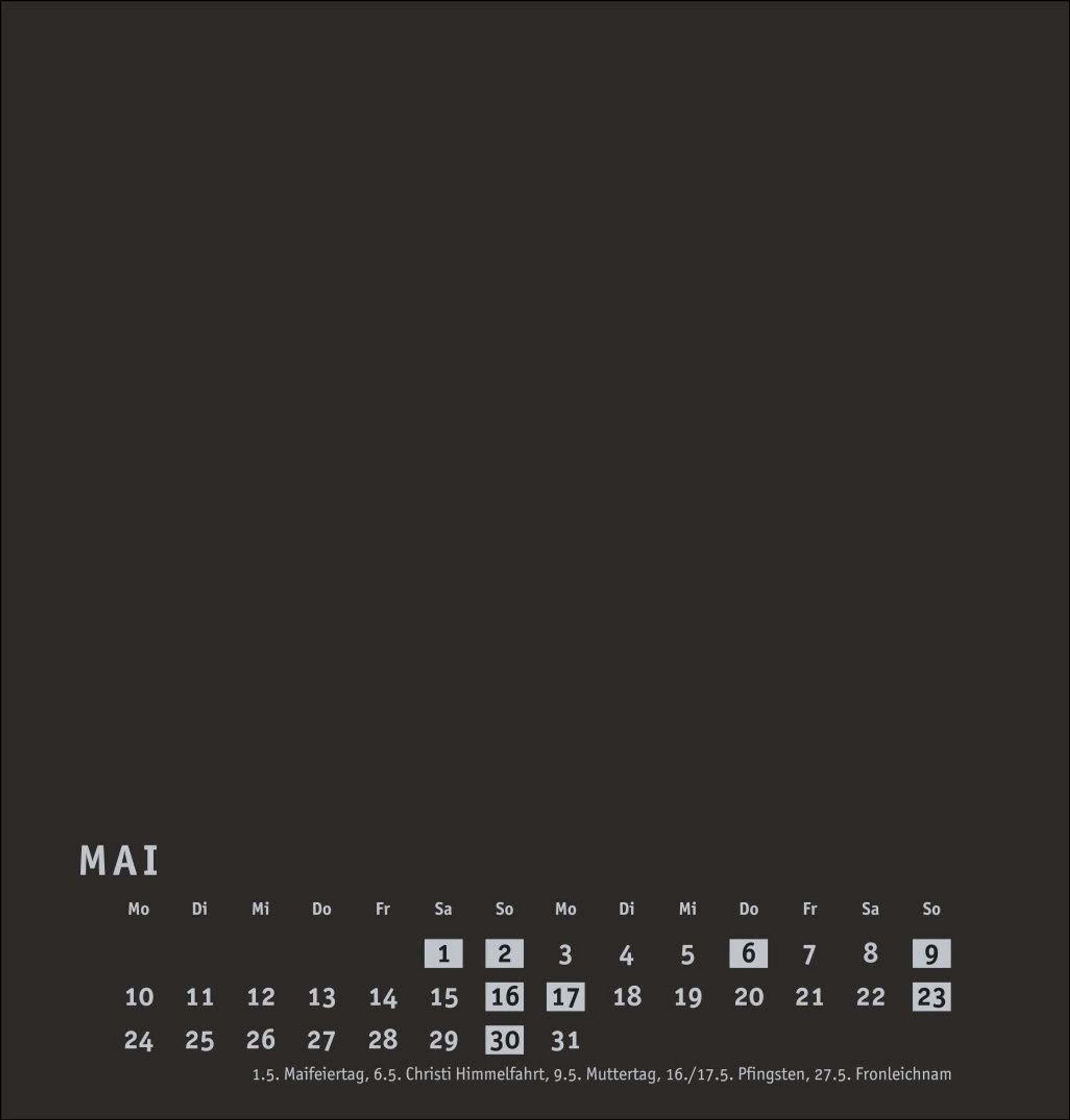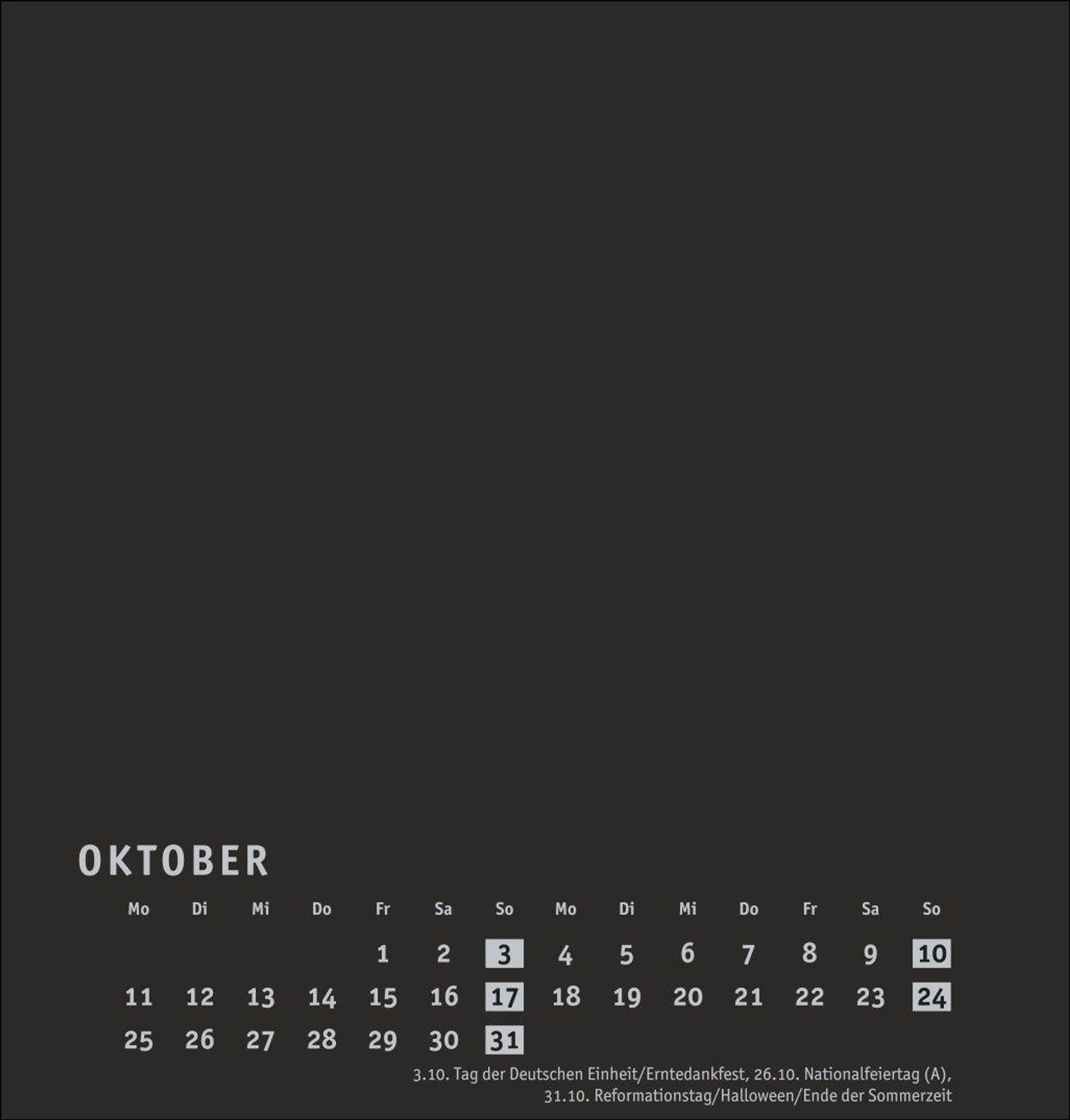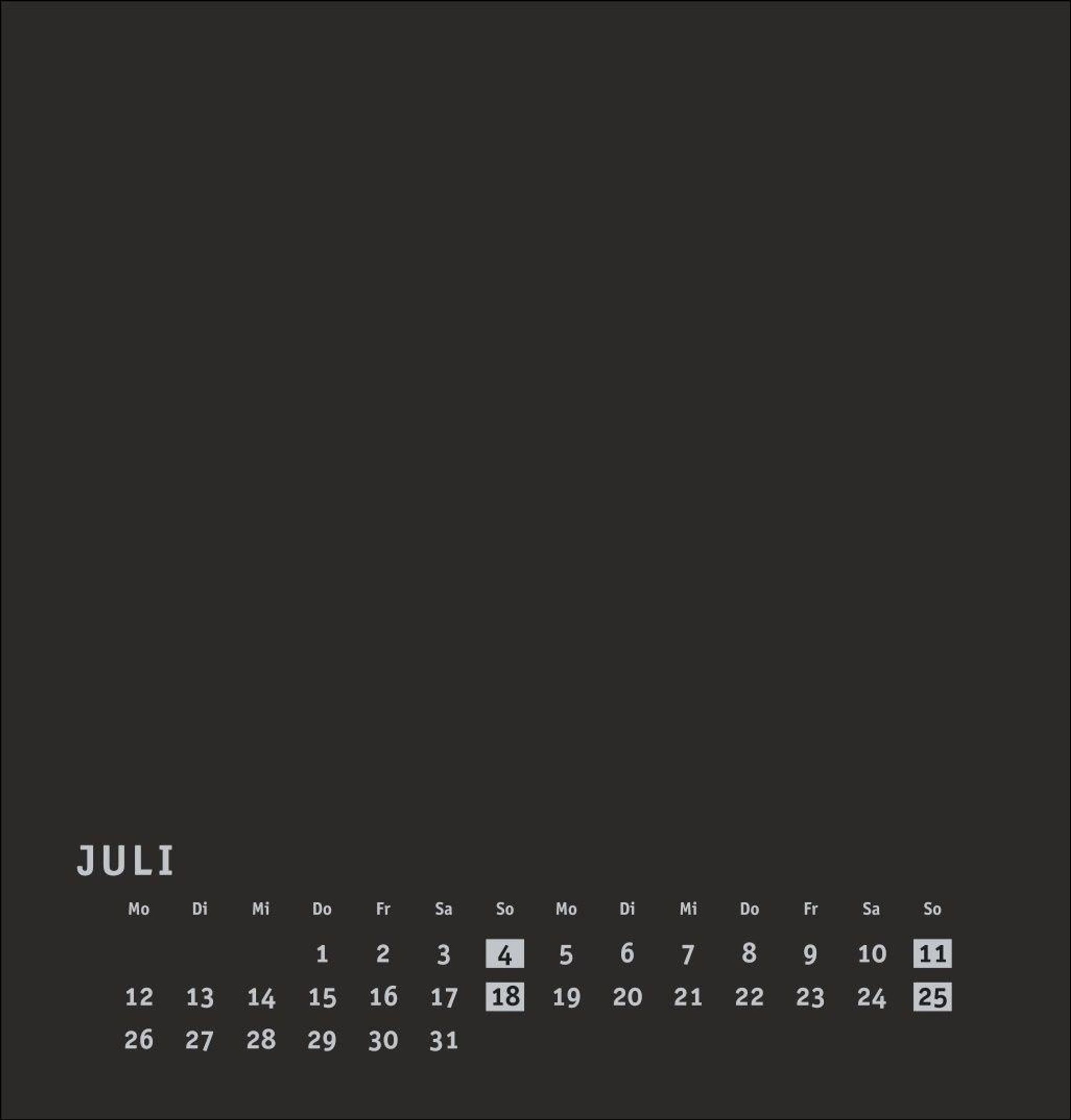 Neutraler Monatskalender (21 x 22 cm) in edlem Schwarz und auf hochwertigem Karton