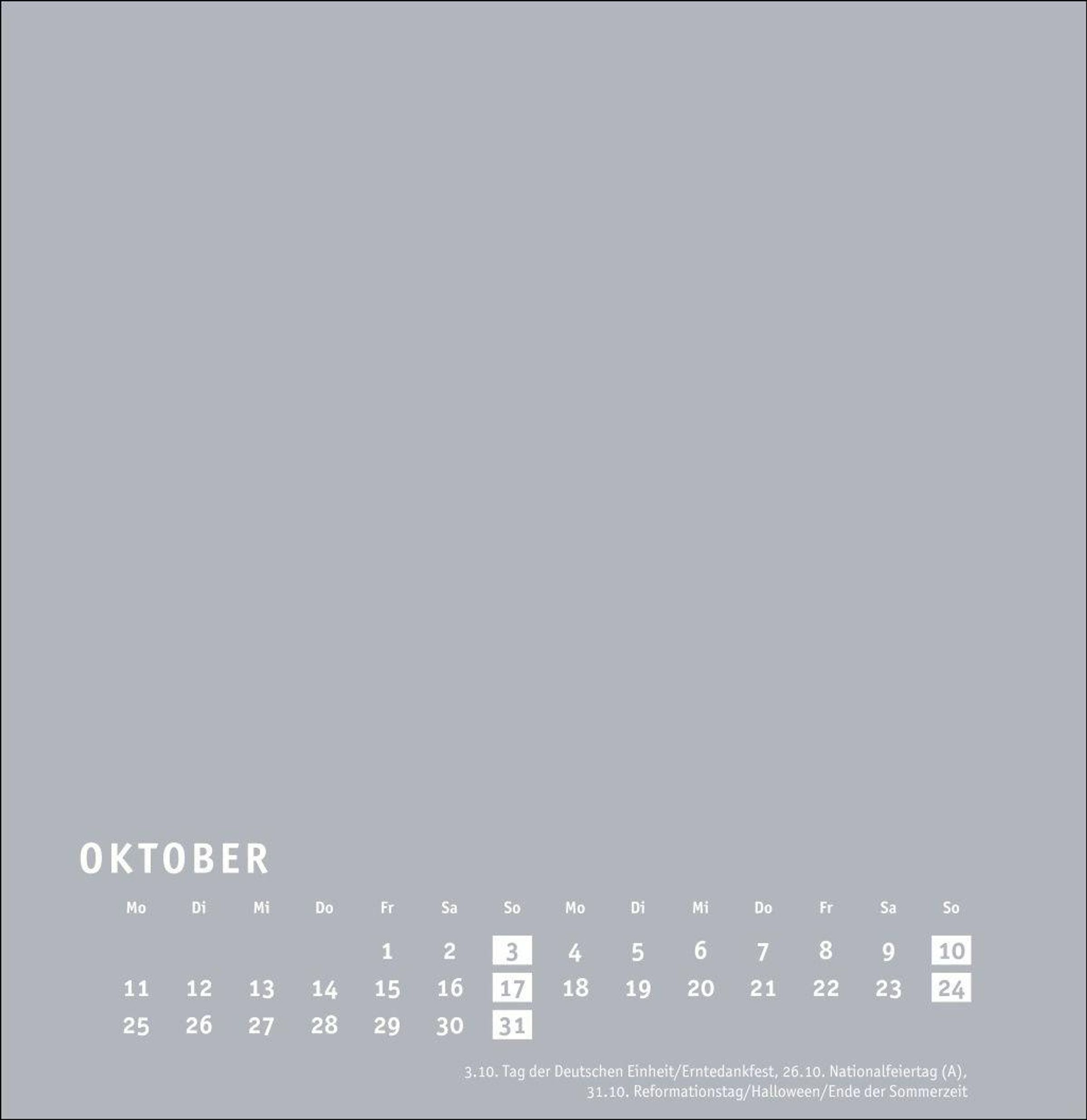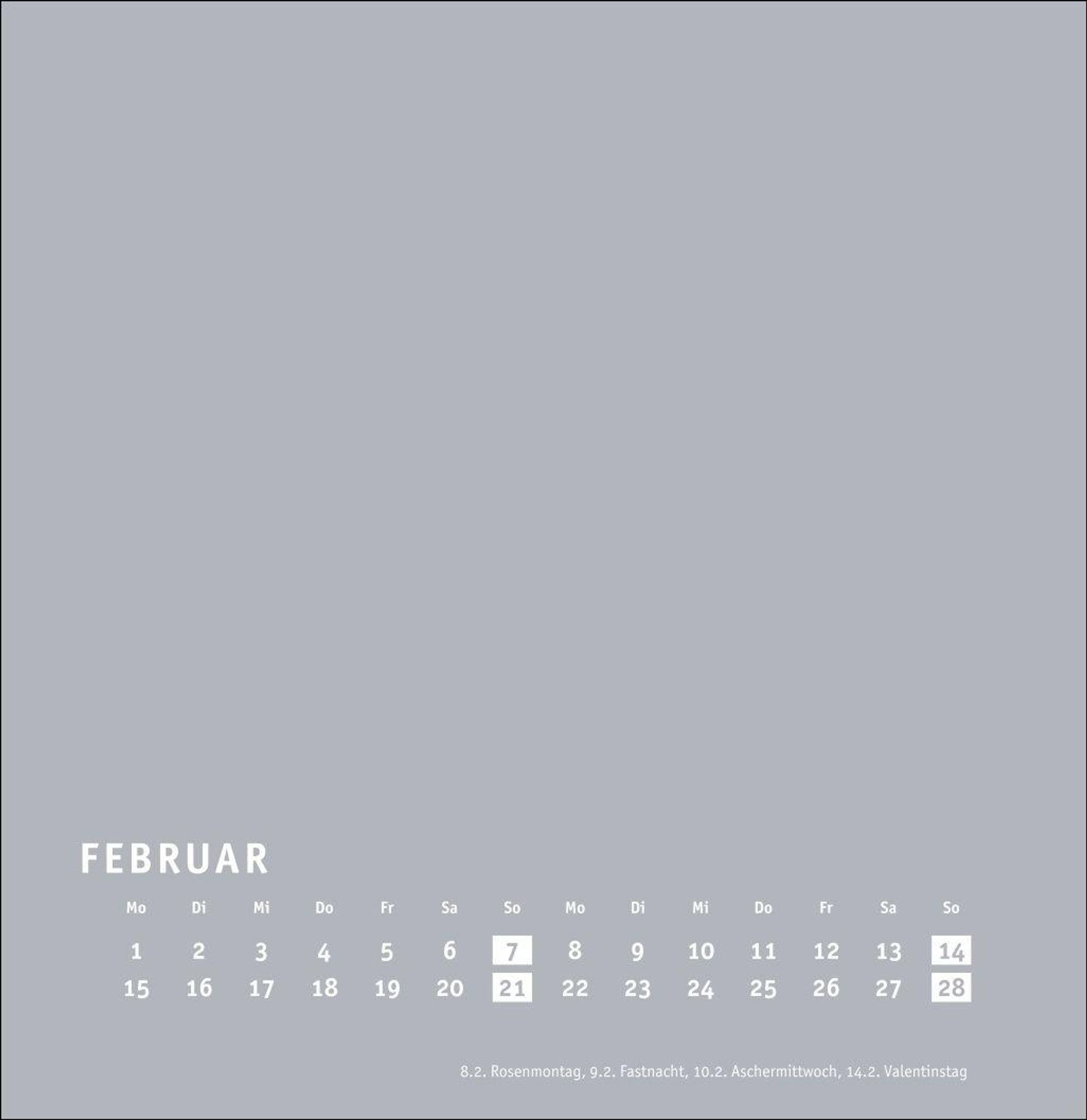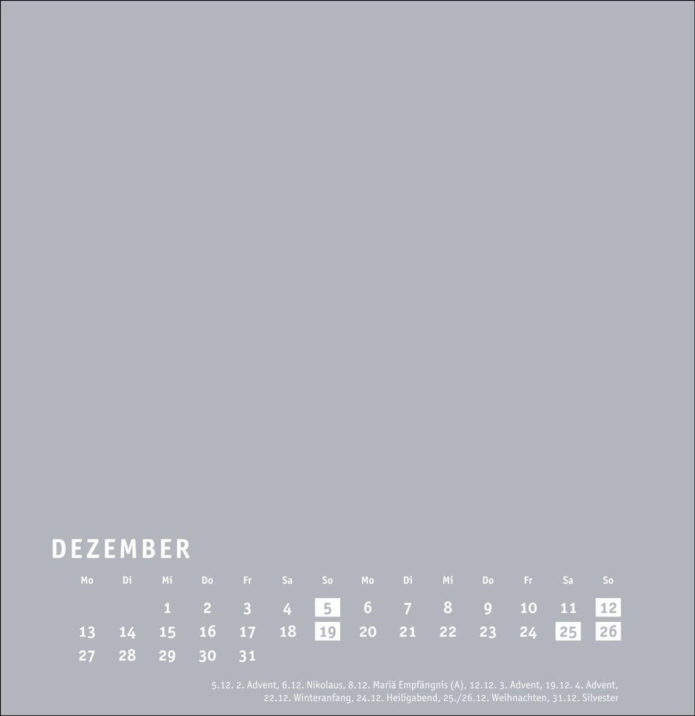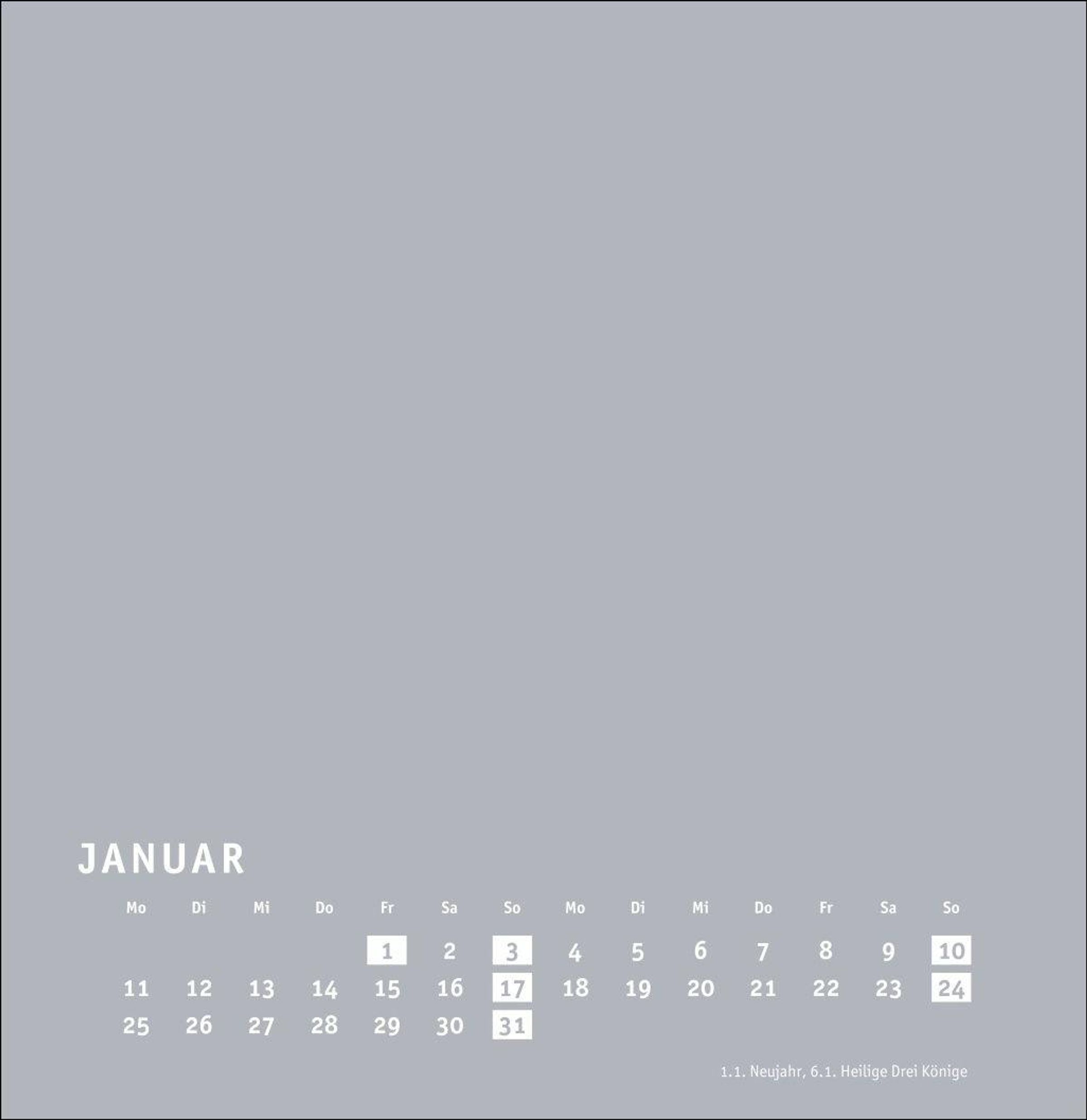 Großer neutraler Monatskalender (32 x 33cm) in edlem Silbergrau und auf hochwertigem Karton