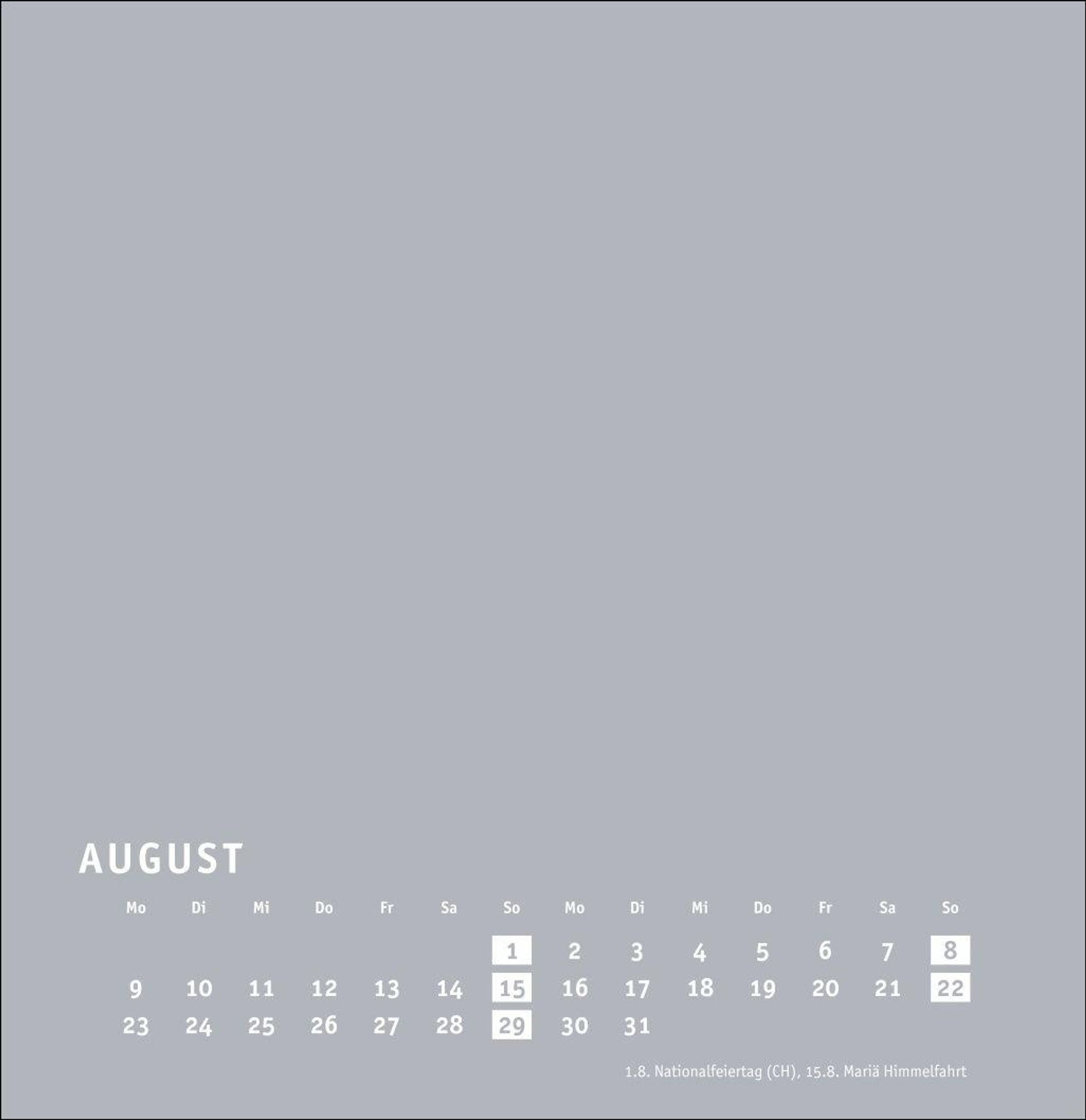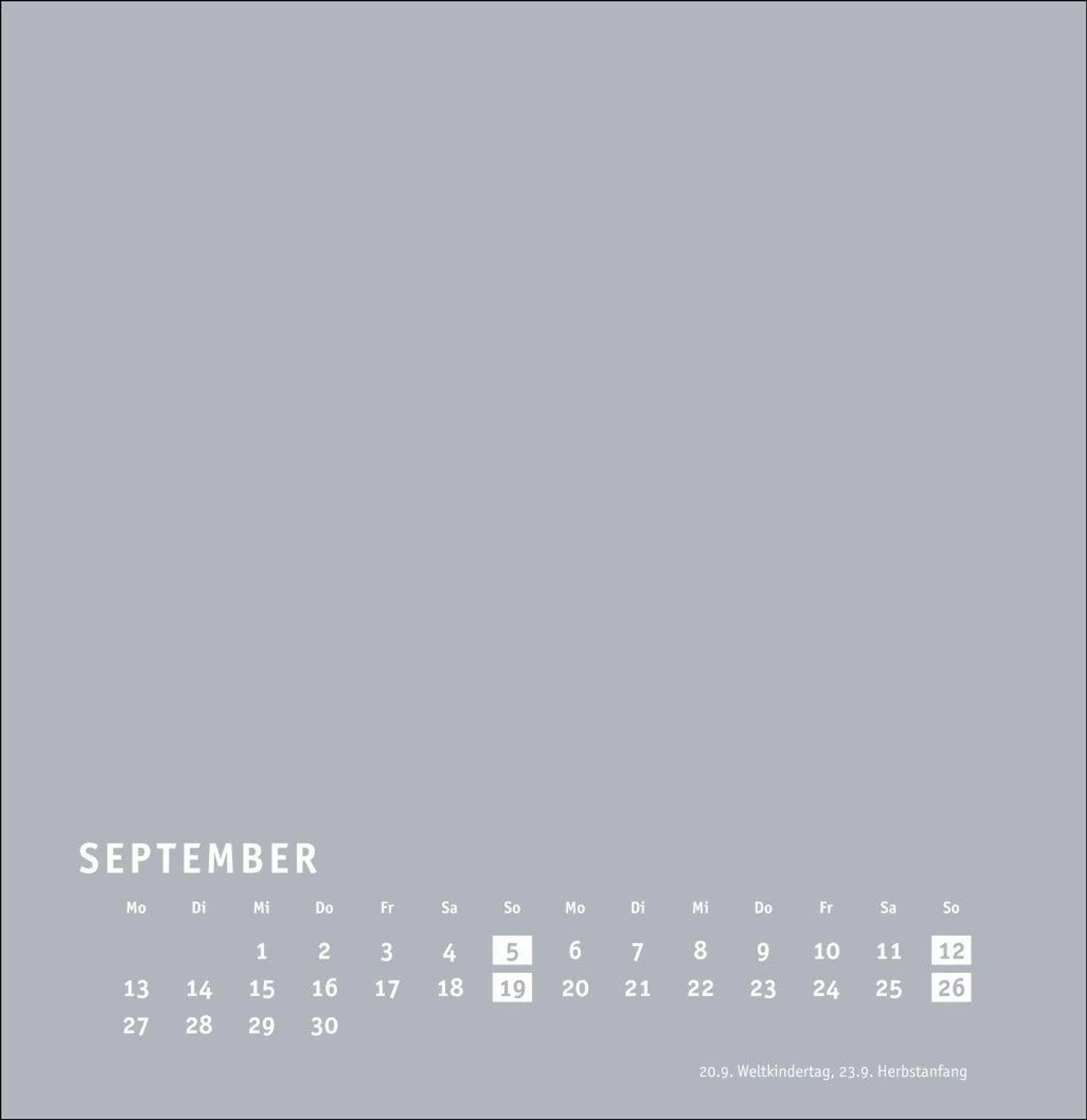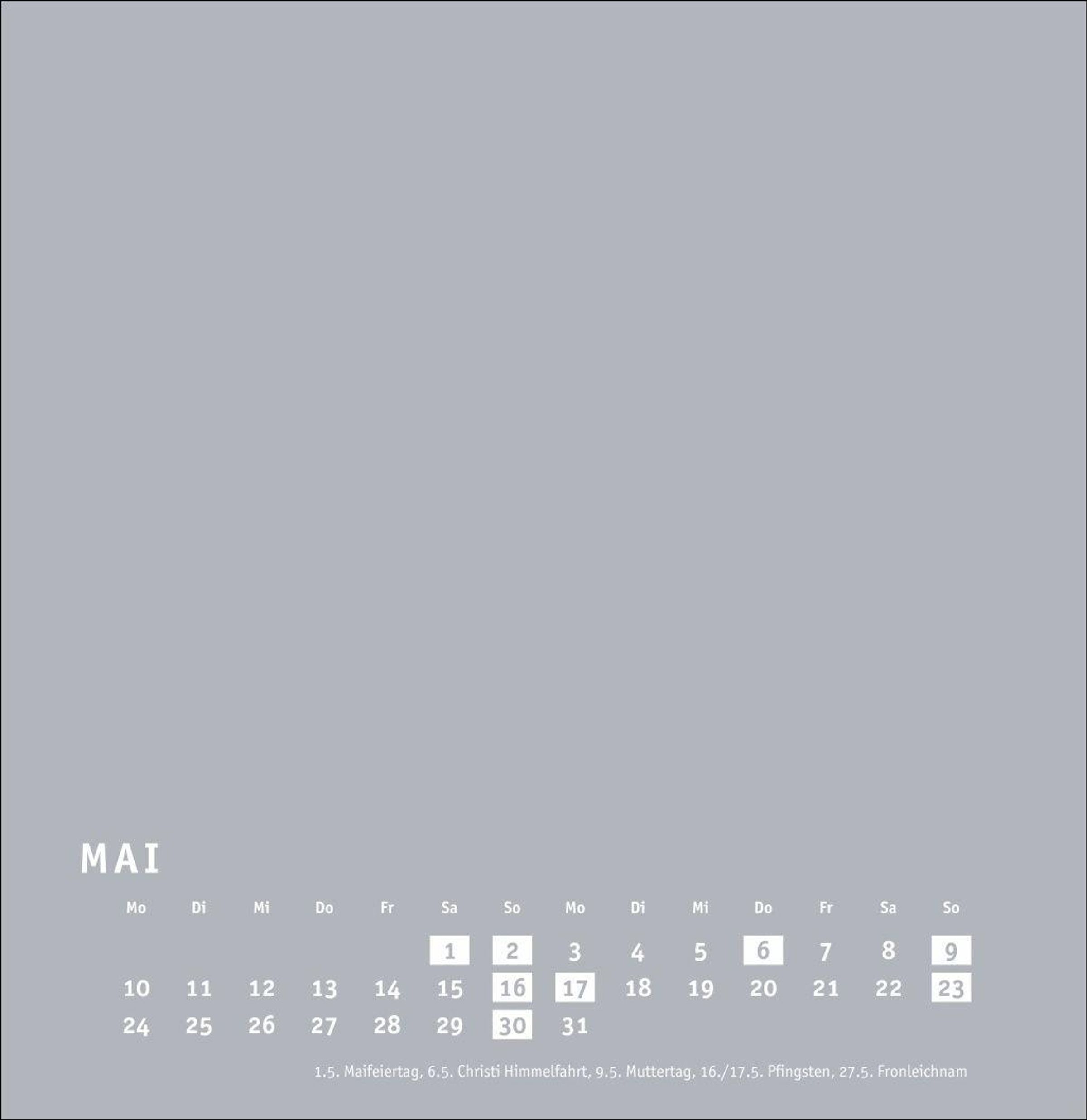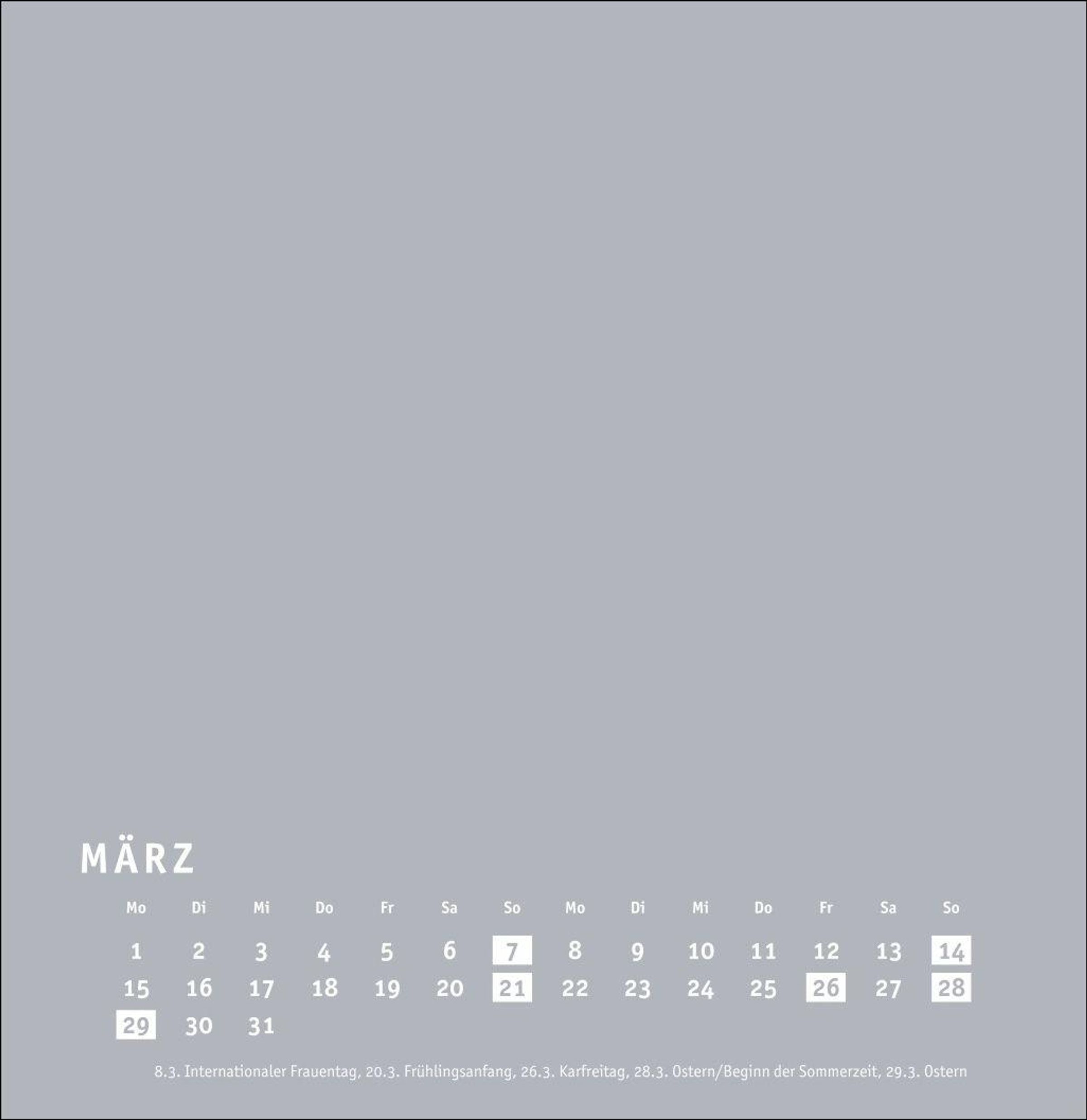 Großer neutraler Monatskalender (32 x 33cm) in edlem Silbergrau und auf hochwertigem Karton