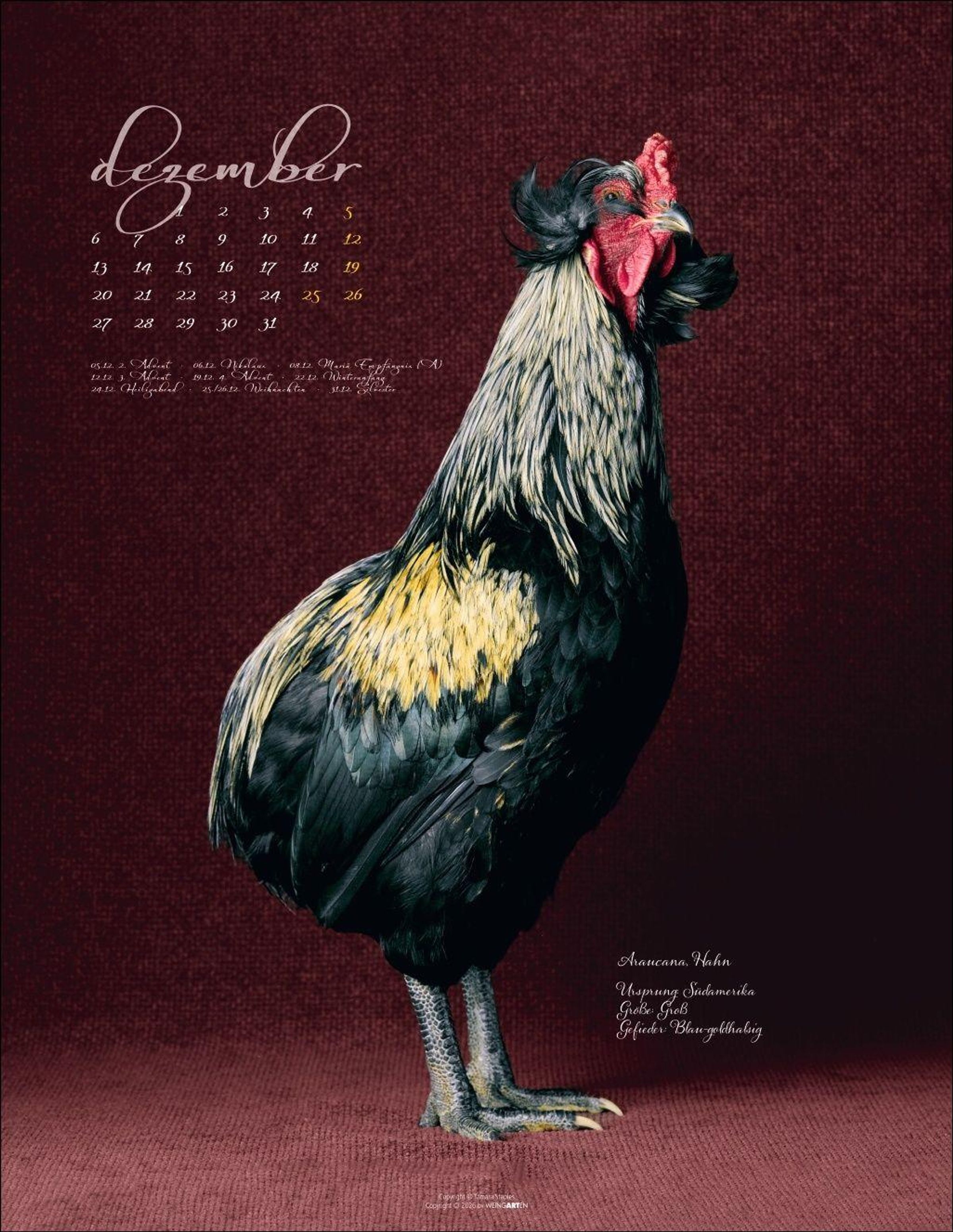 Echte Stars vor der Kamera: Monatskalender mit Hühnerfotos und Kalendarium und kurzer Beschreibung des abgebildeten Rassegeflügels