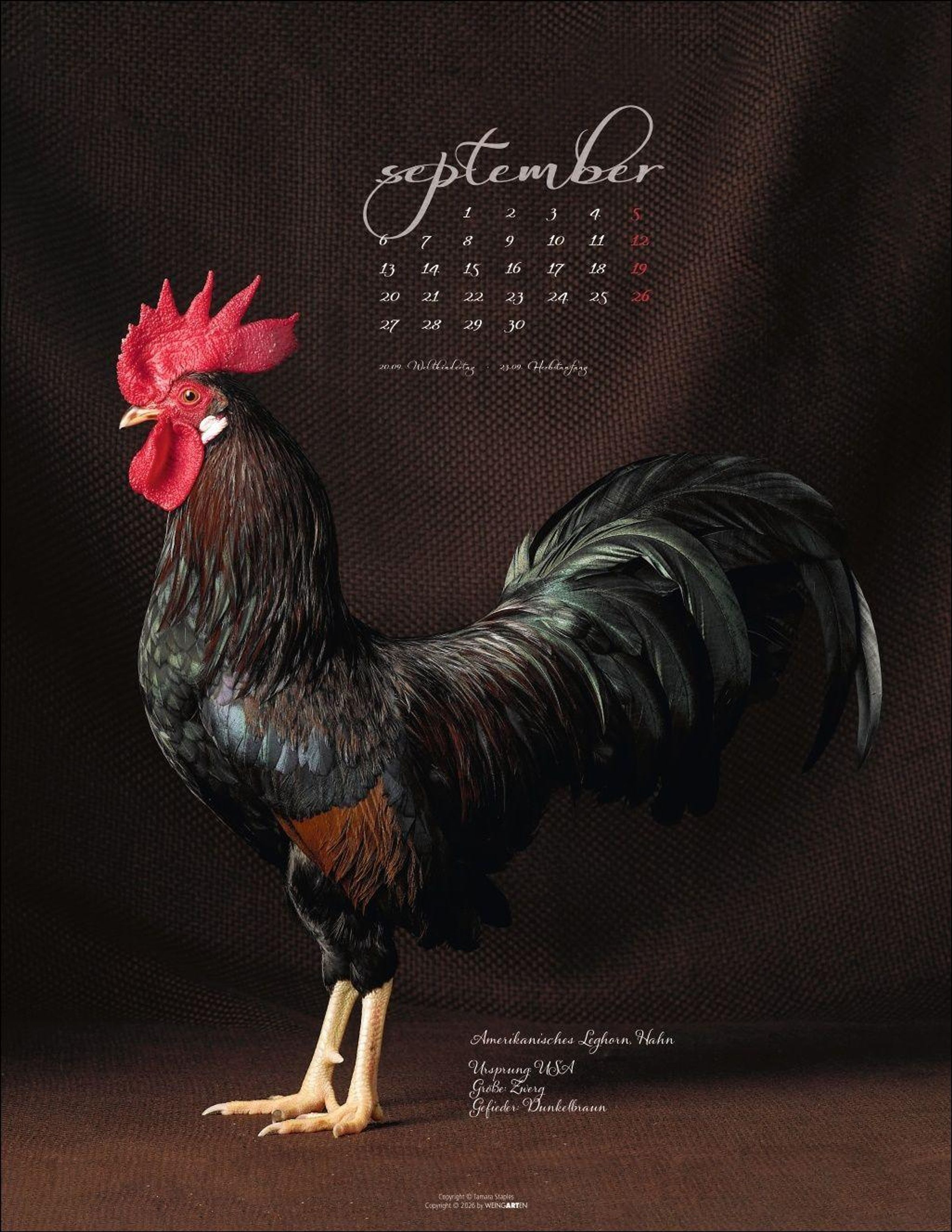 - Tier-Wandkalender. Ungewöhnliches Fotokunst-Projekt der Fotografin Tamara Staples. Rasse-Hühner von ihrer besten Seite im Fotokalender. 34x44 cm Hochformat