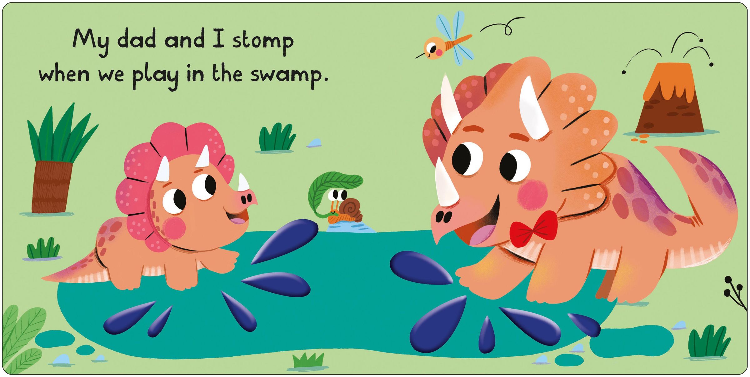 The littlest dinosaur-lovers will enjoy touching the crinkly dino egg on the front cover and feeling all the tactile elements inside the book, while pointing out some of the best-loved dinosaurs like T. Rex, Stegosaurus, Triceratops, and more. The sweet rhyming text and DINO-mite fun make this book a great read aloud to declare lots of love for Dad.