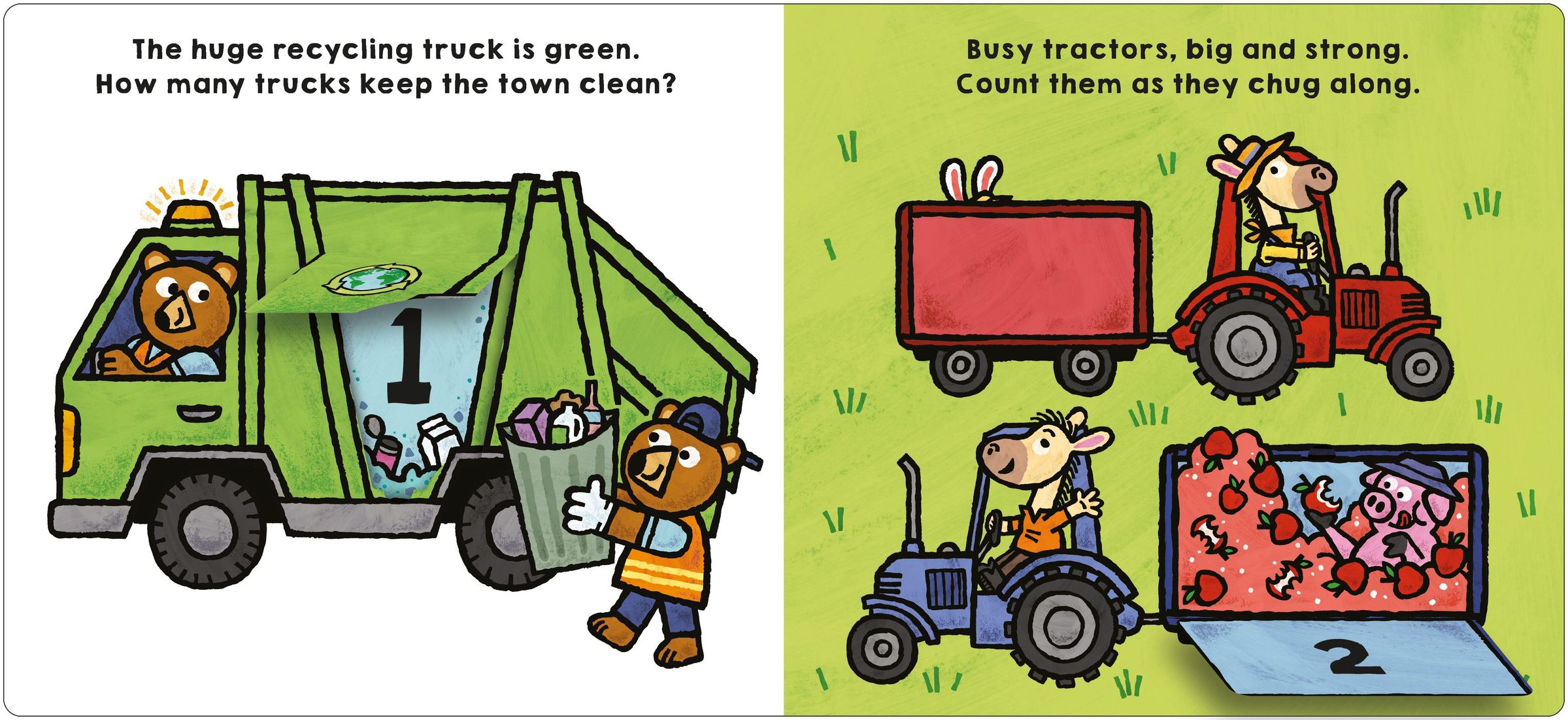 Introduce toddlers to their first numbers! They will love exploring the vibrant illustrations and lifting the shaped flaps to reveal the numbers. From fire engines and tractors, to diggers and dump trucks, little ones can learn to count from 1 to 10 whilst discovering different vehicles.