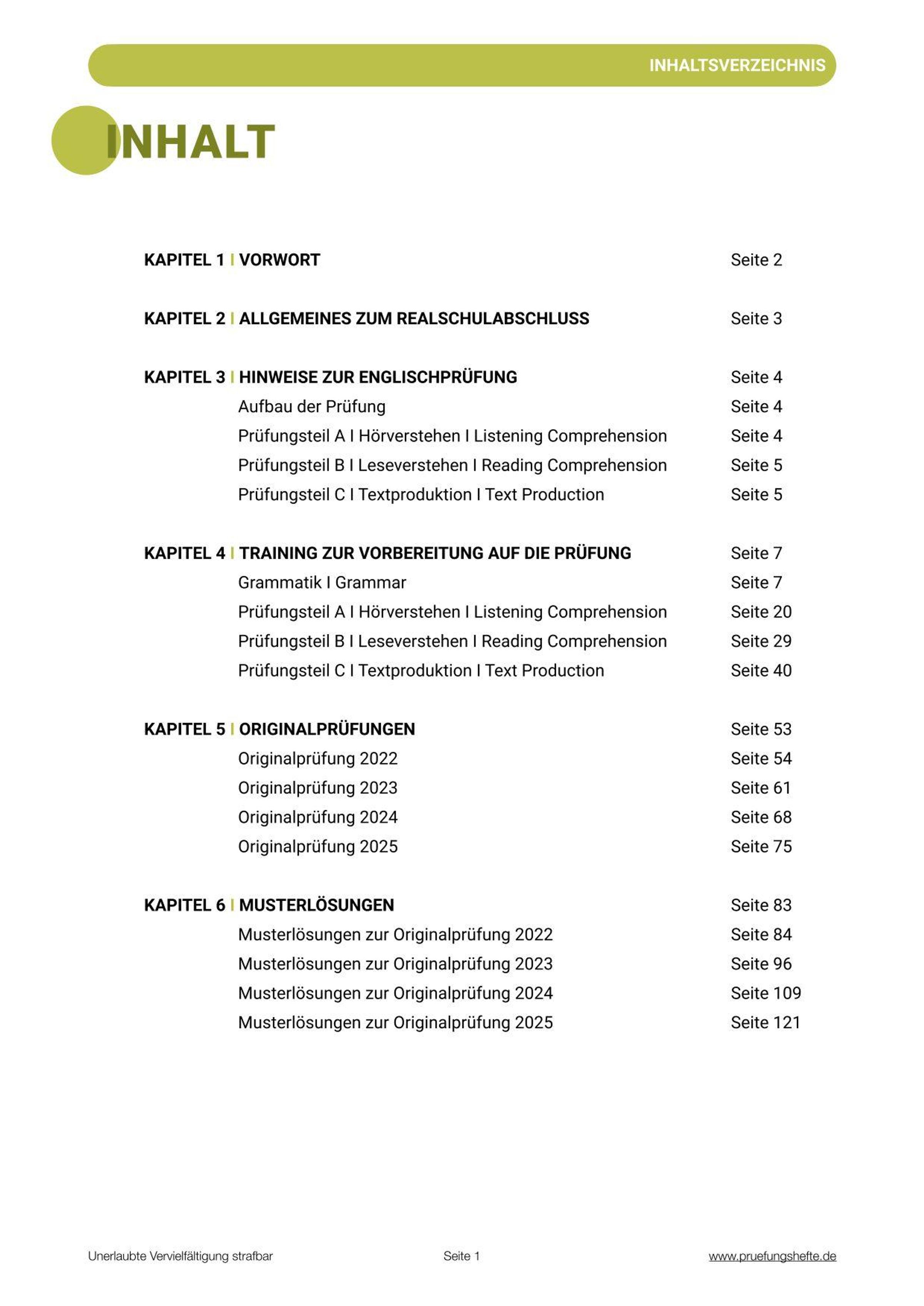 Das Lernheft für das Fach Englisch bietet die perfekte Vorbereitung auf den Realschulabschluss 2026 in Thüringen! In dem Prüfungsheft erhältst du Originalprüfungen aus den letzten vier Jahren inklusive ausführlichen Musterlösungen mit Tipps und Hinweisen zur Bearbeitung. Hinzu kommt ein Trainingsteil mit Erklärungen und Übungsaufgaben. Bestandteile des LernpaketsVorbereitung auf die schriftliche Abschlussprüfung der Realschule in Englisch Original-Prüfungen 2022, 2023, 2024 und 2025 ausführliche Musterlösungen zu allen Aufgaben, inklusive Schreibplan und Beispieltexte Hörverstehensteil mit Audio umfangreicher Trainingsteil mit Erklärungen und Übungsaufgaben zu prüfungsrelevanten Themen Hinweise zum Aufbau der Prüfung geeignet für Thüringen