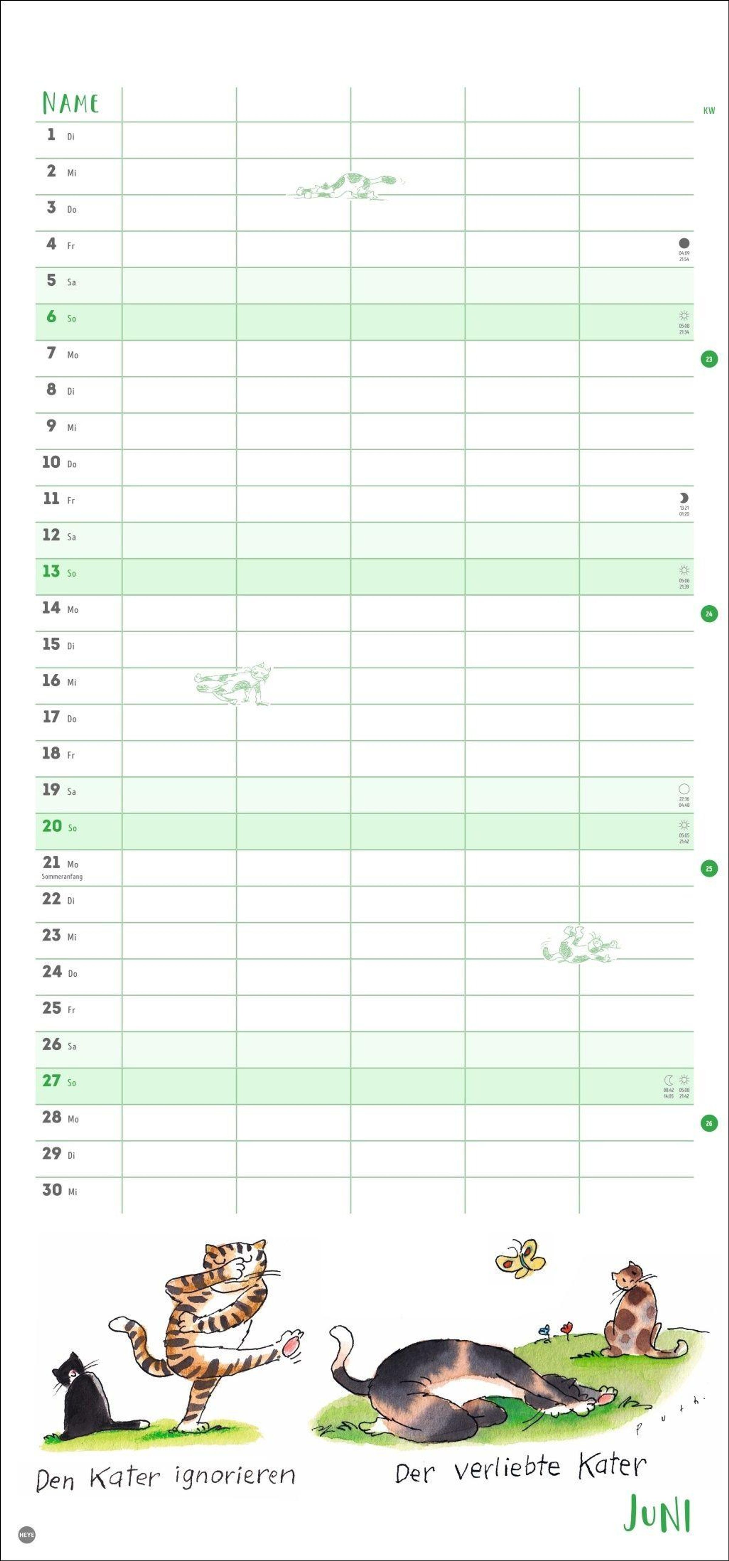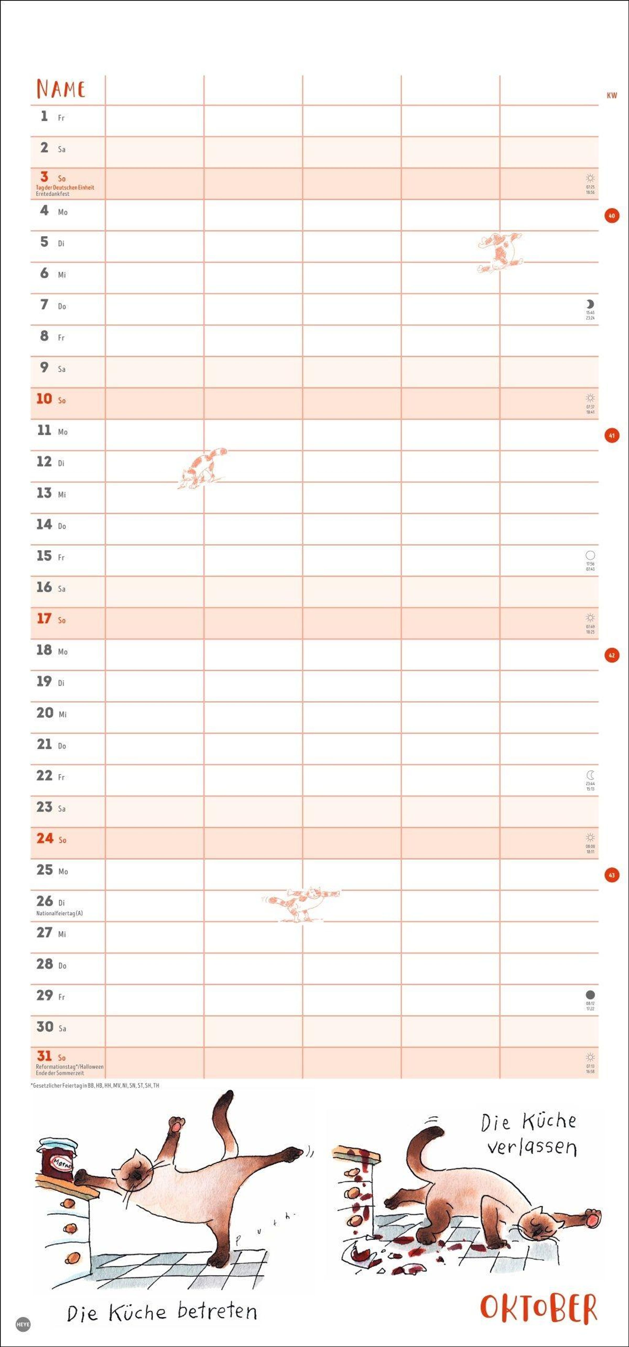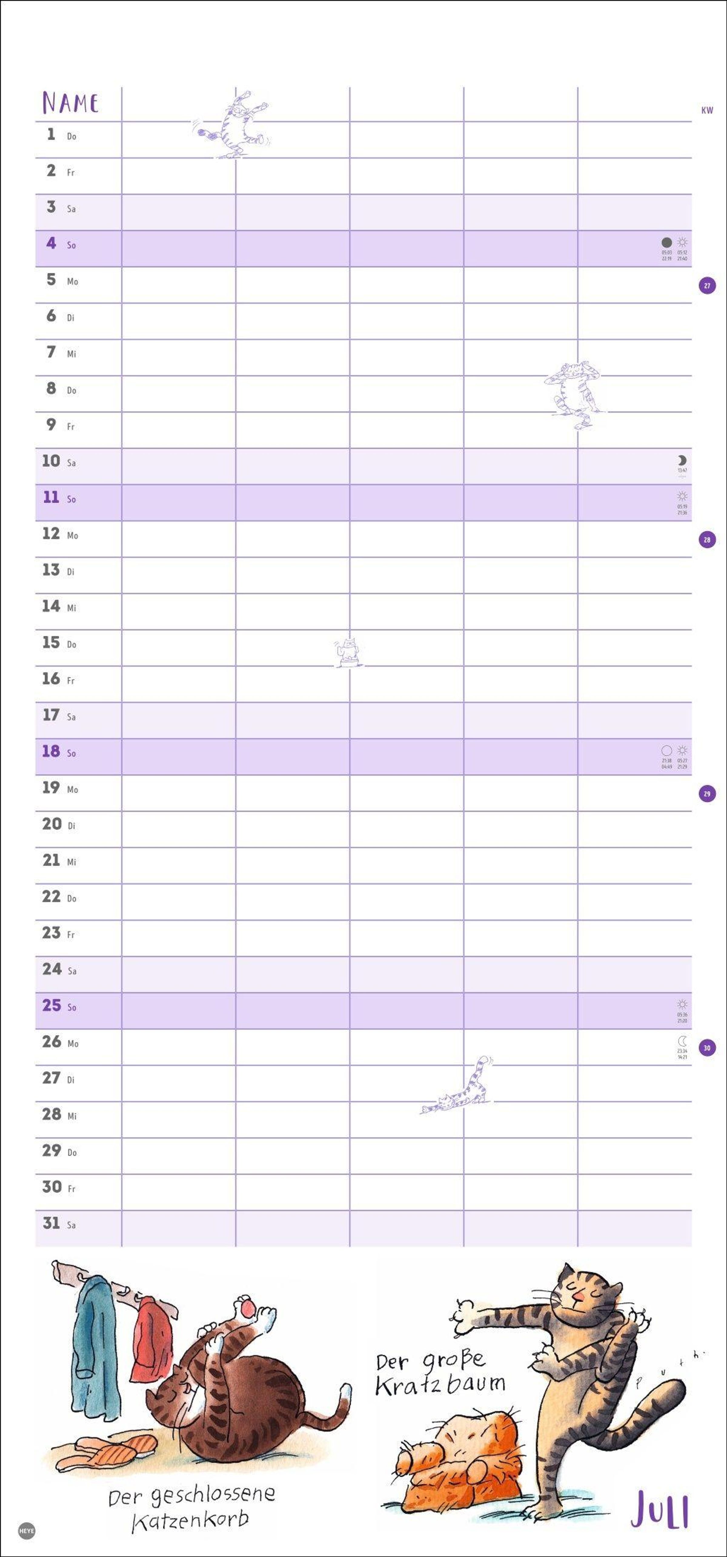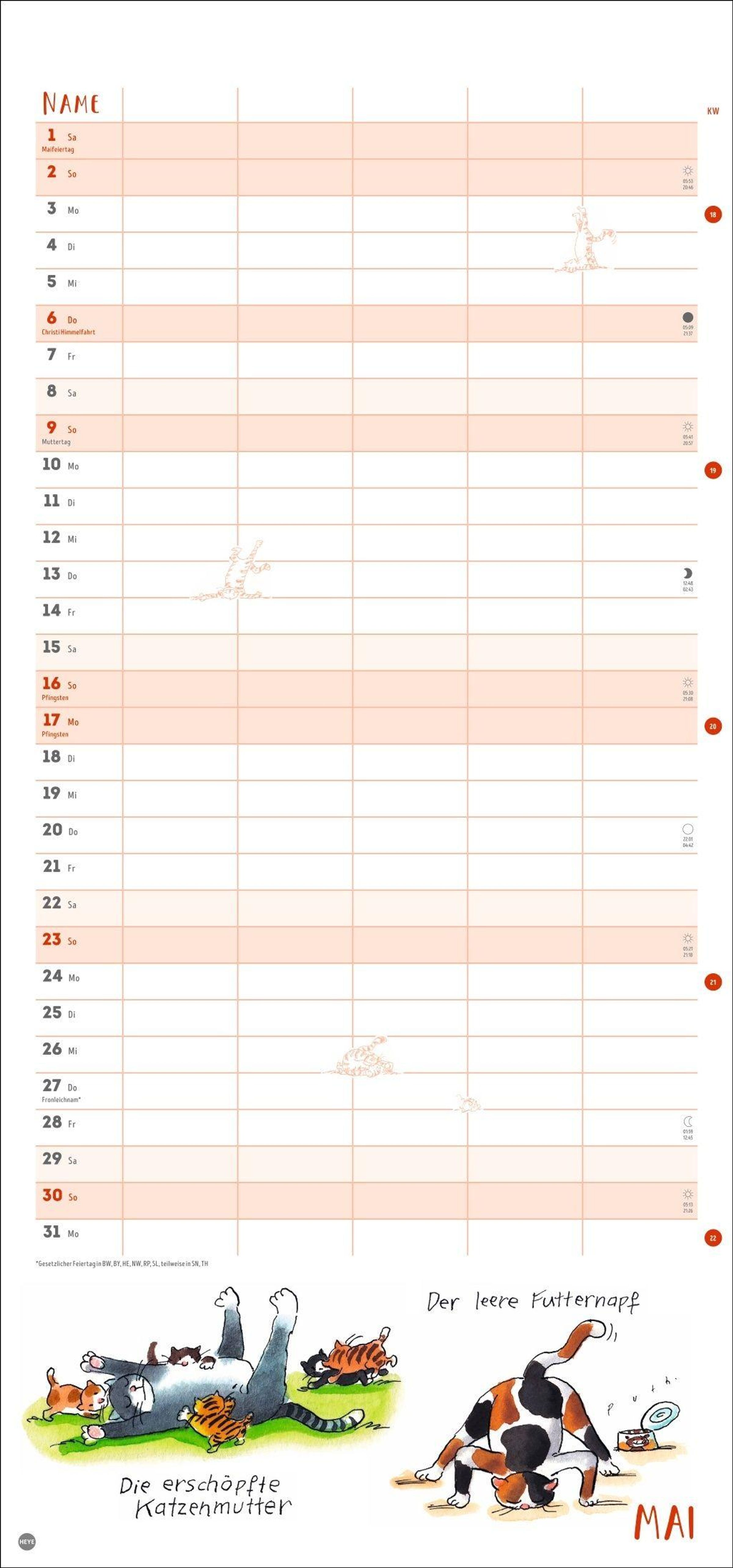 - Witziger Katzen-Kalender mit gelenkigen Samtpfoten. Termin-Kalender mit 5 Spalten für Übersicht und Planung im Format 21 x 45 cm