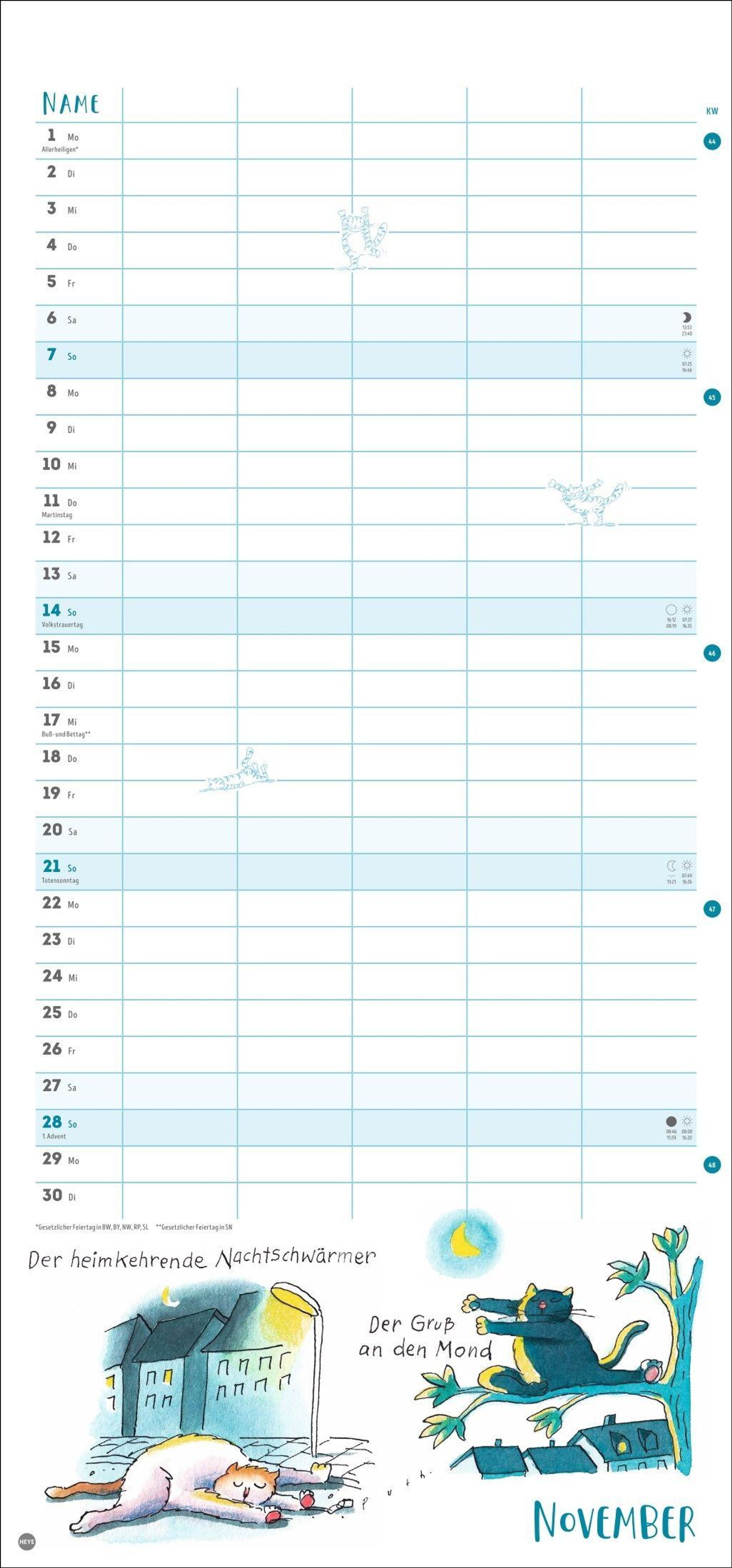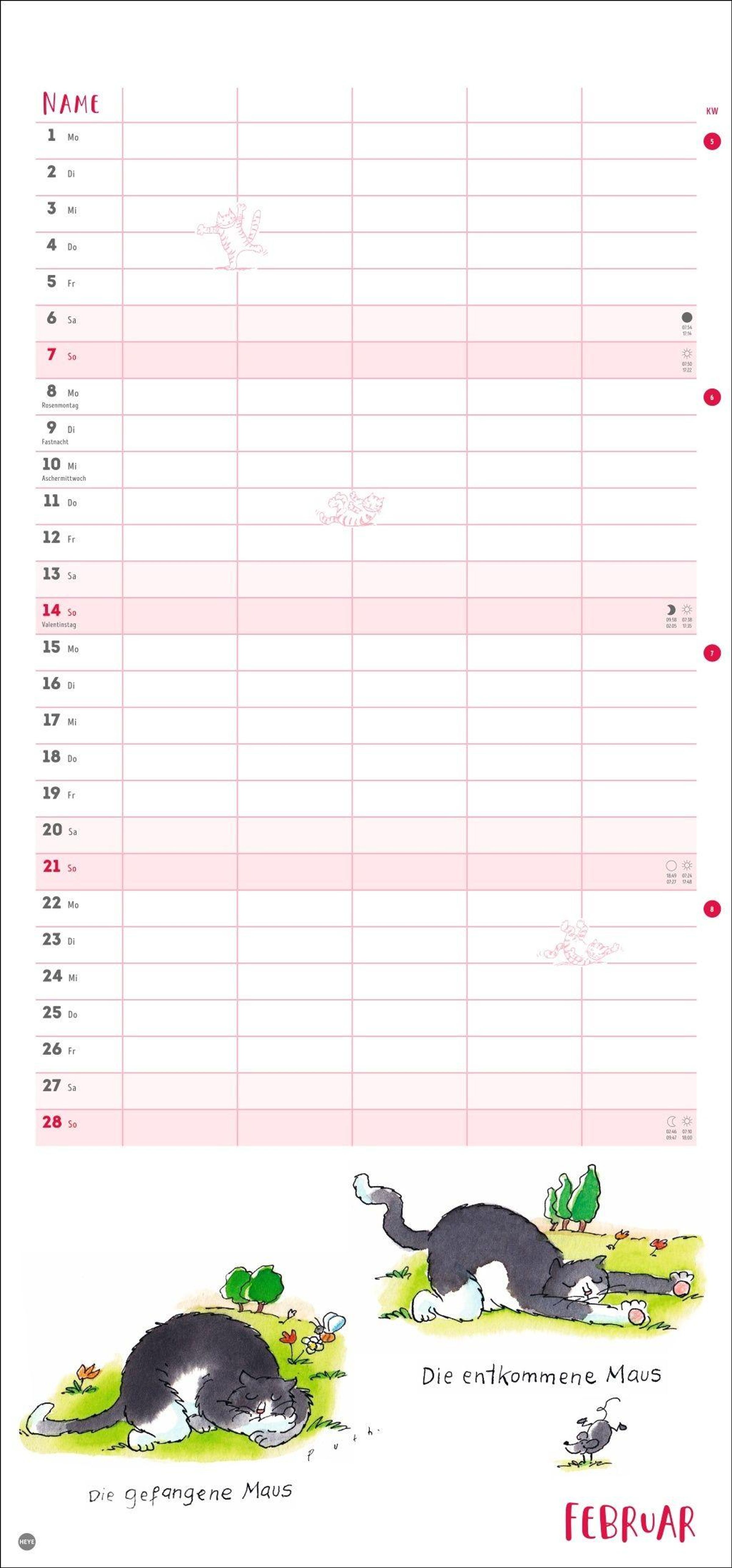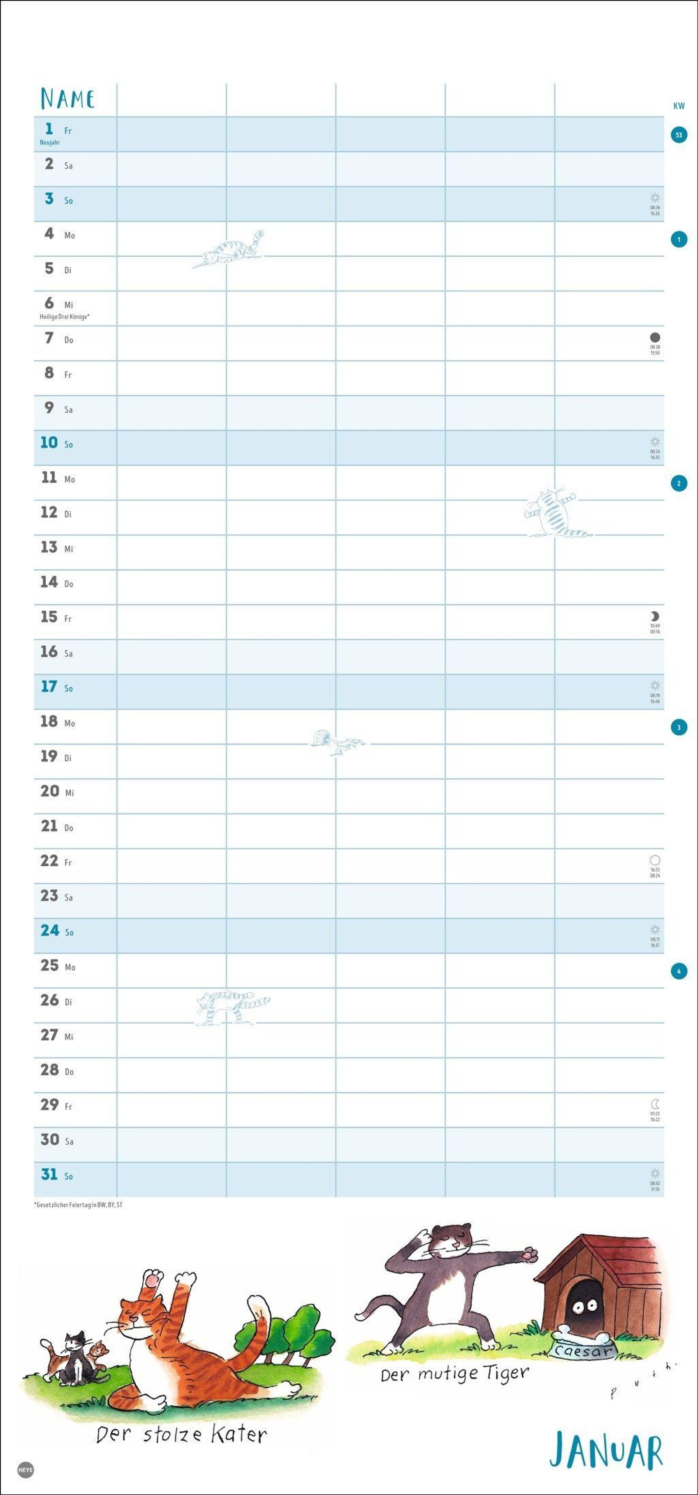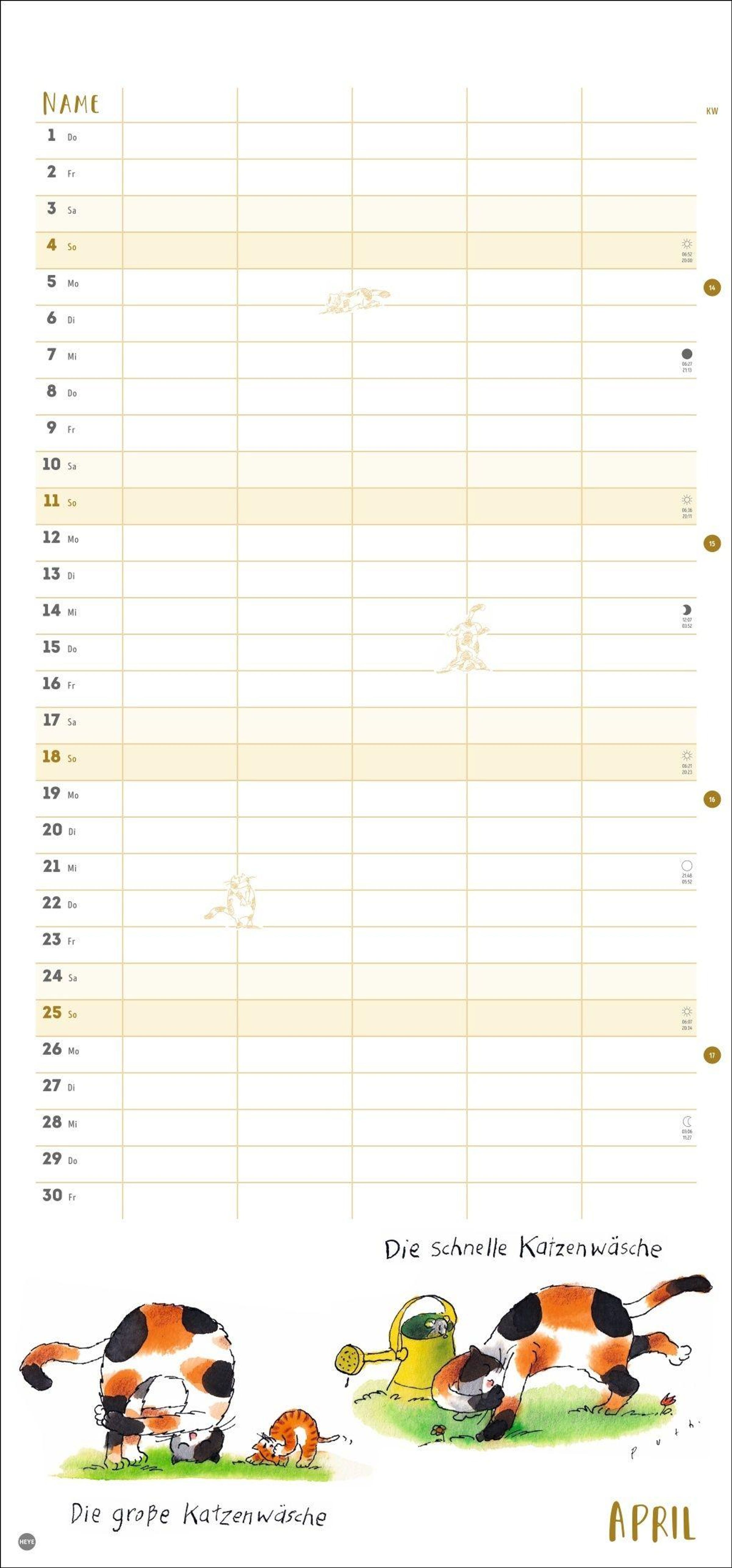 - Witziger Katzen-Kalender mit gelenkigen Samtpfoten. Termin-Kalender mit 5 Spalten für Übersicht und Planung im Format 21 x 45 cm