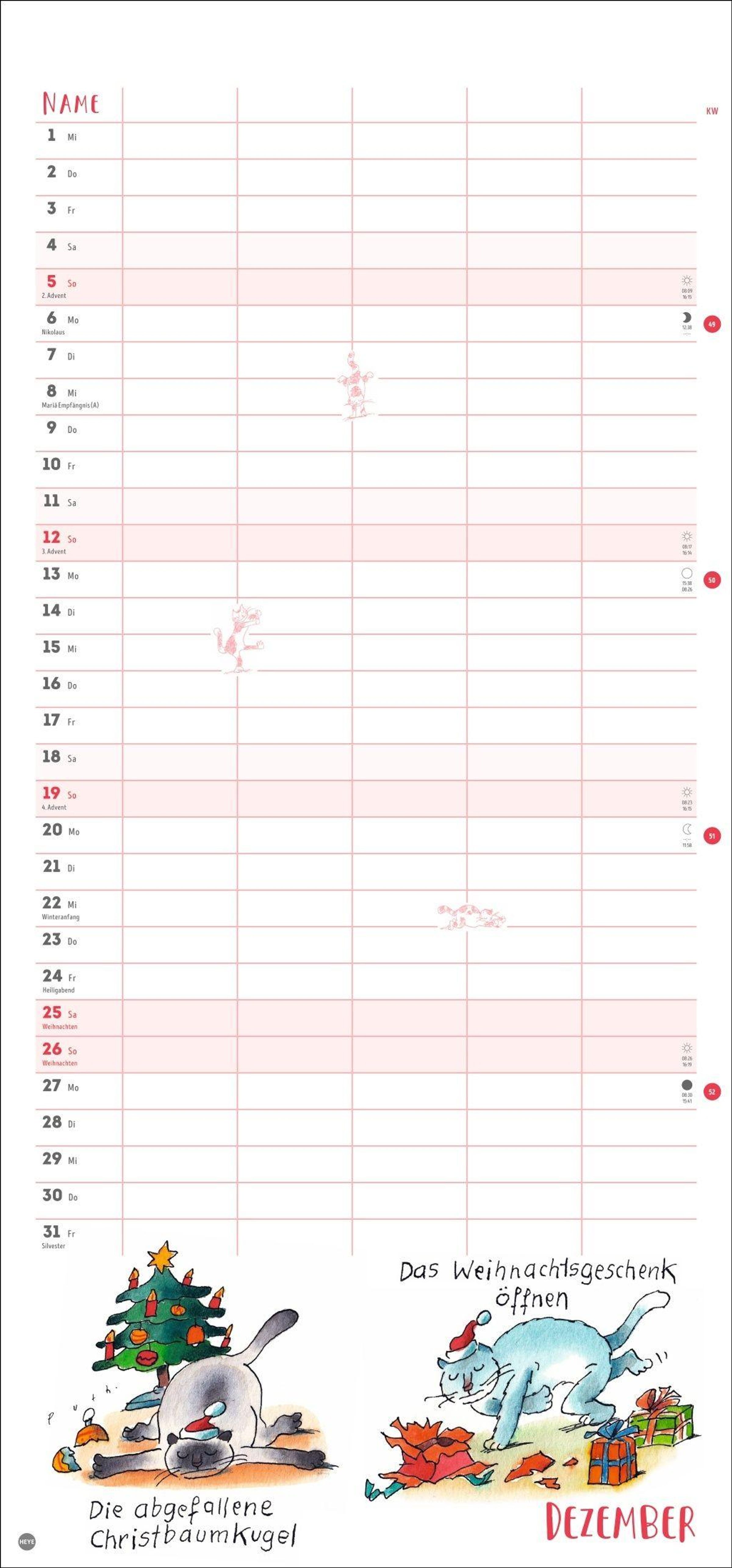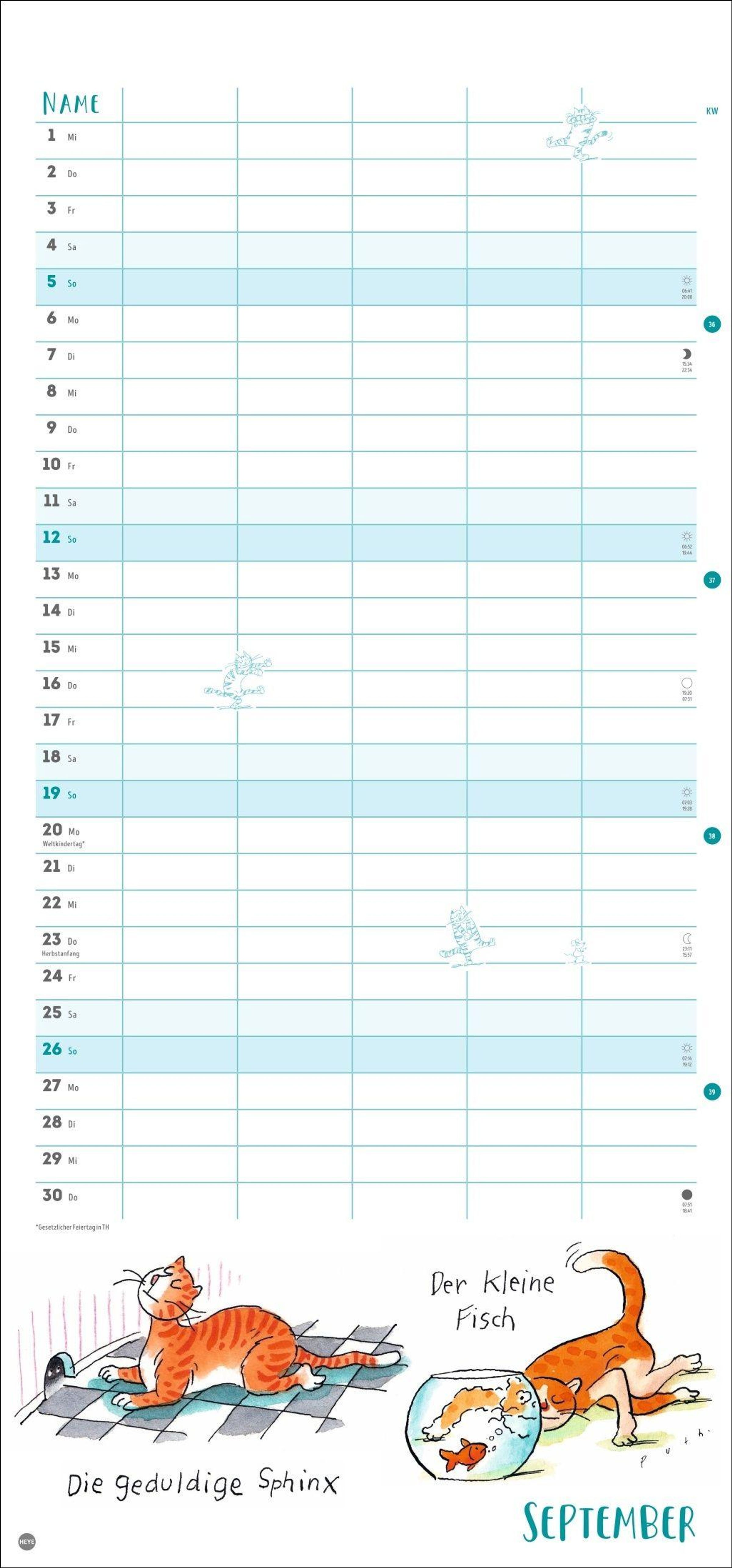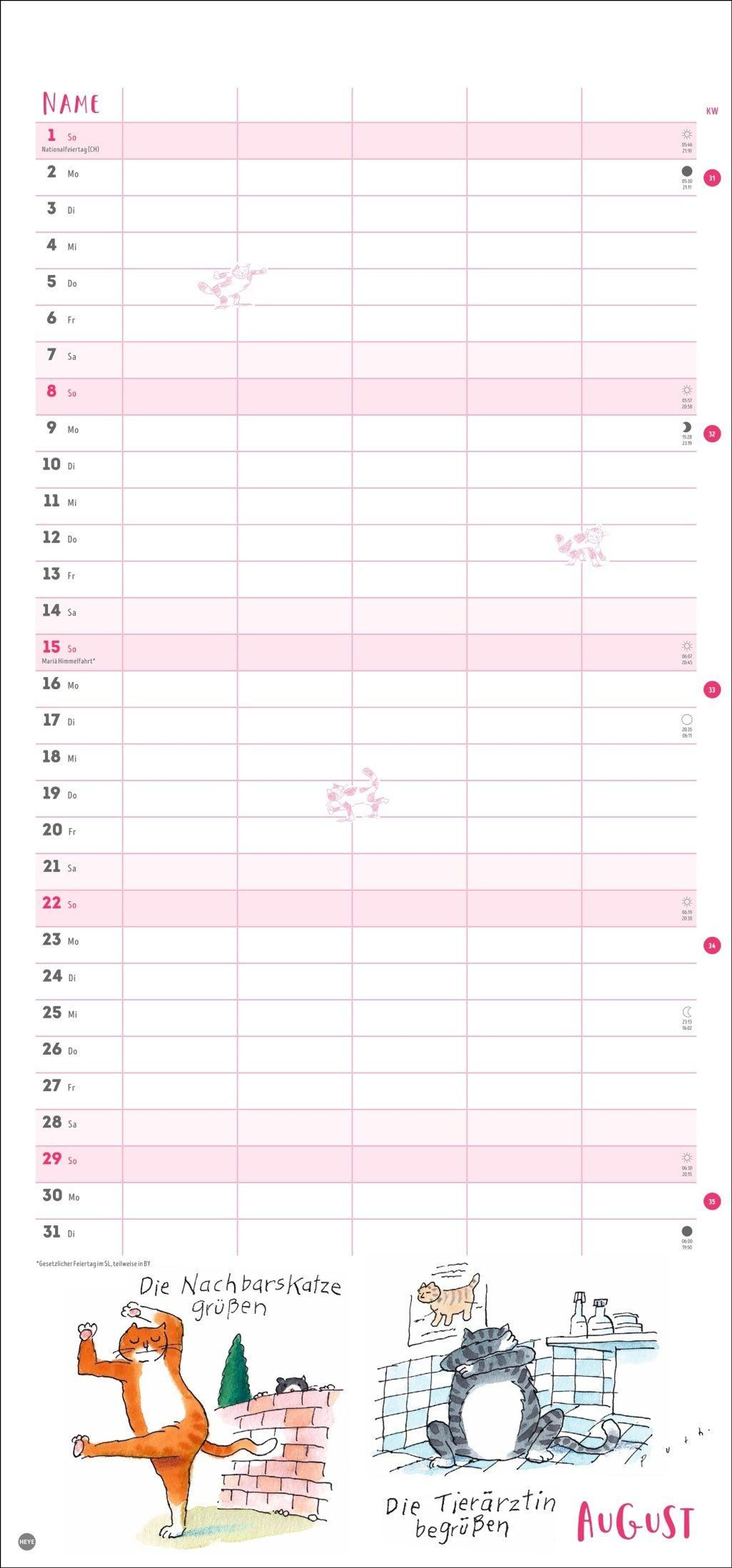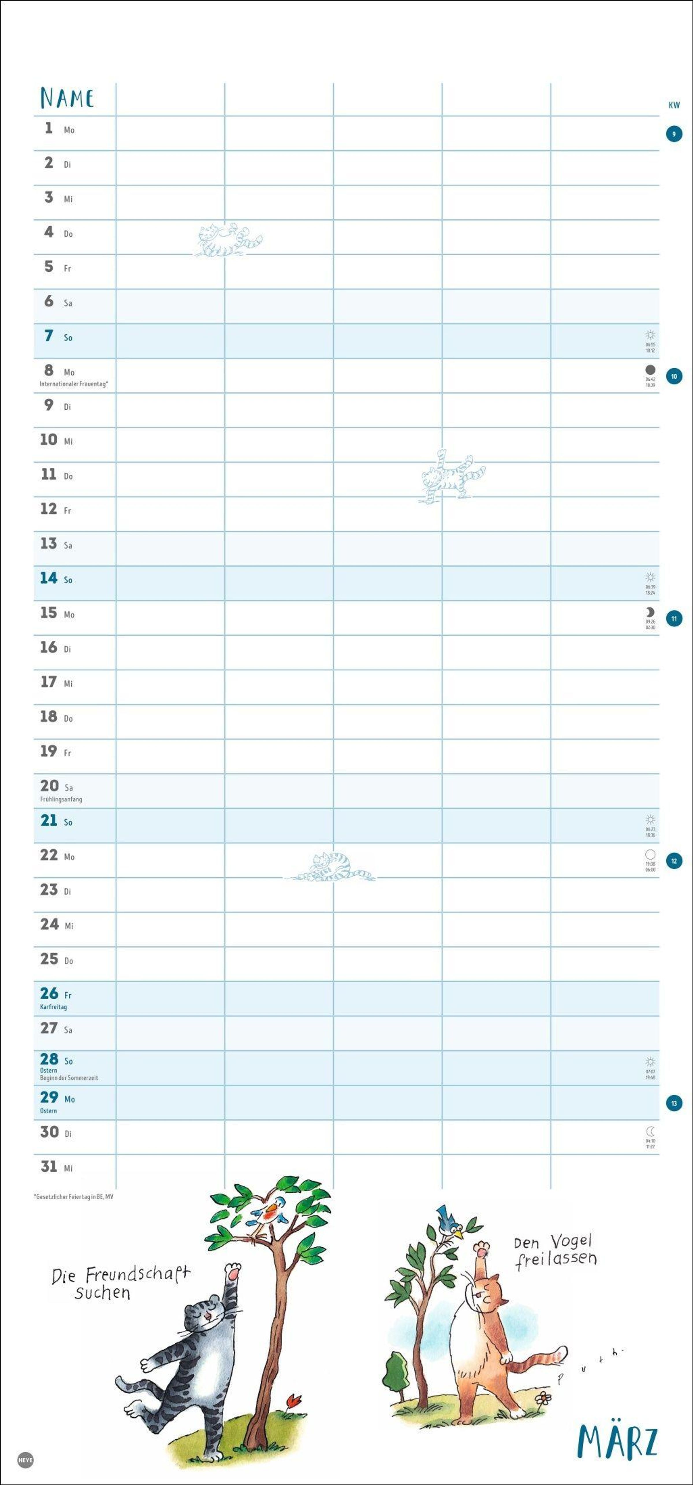 - Witziger Katzen-Kalender mit gelenkigen Samtpfoten. Termin-Kalender mit 5 Spalten für Übersicht und Planung im Format 21 x 45 cm