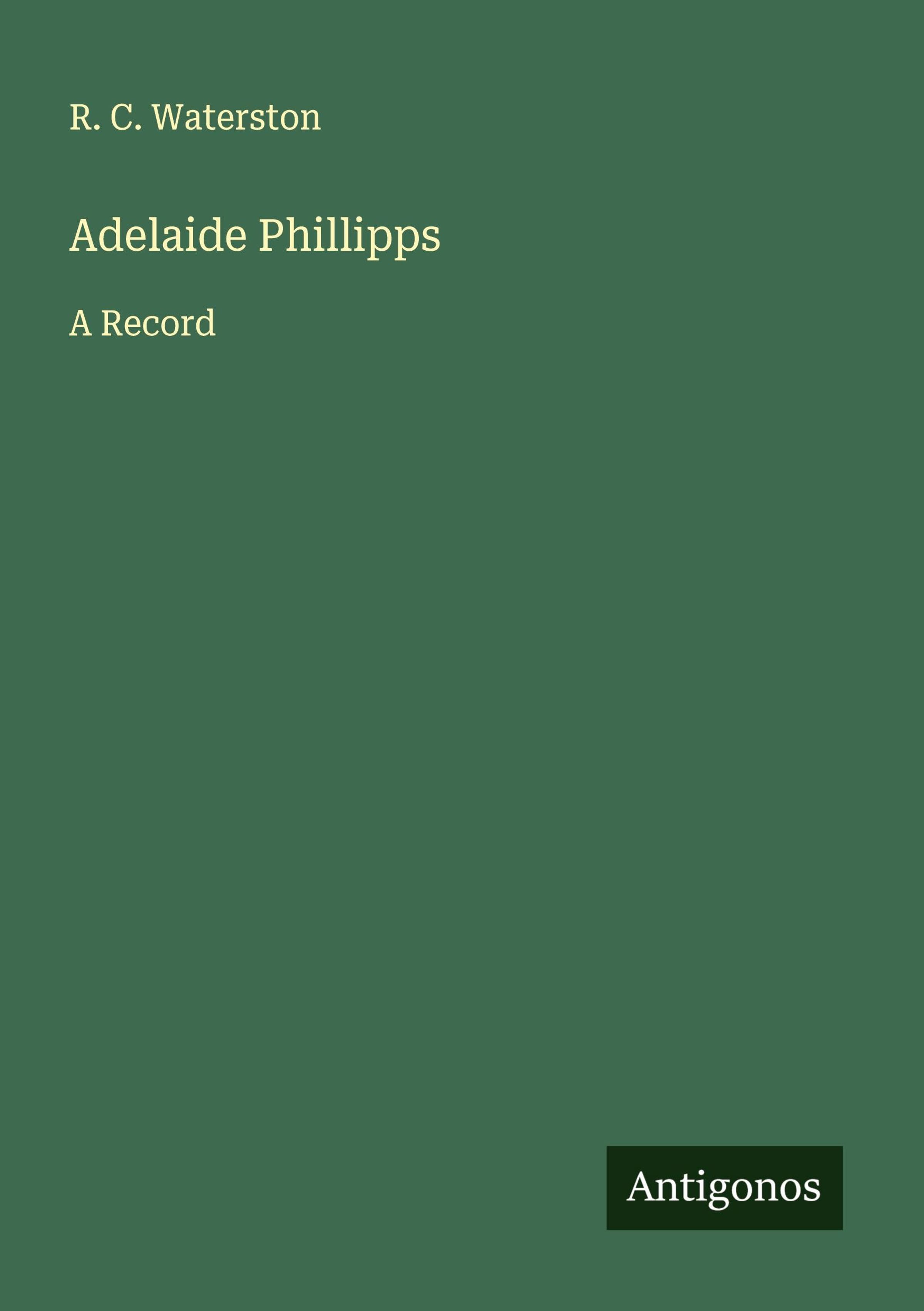 R. C. Waterston: Adelaide Phillipps, Kartoniert / Broschiert