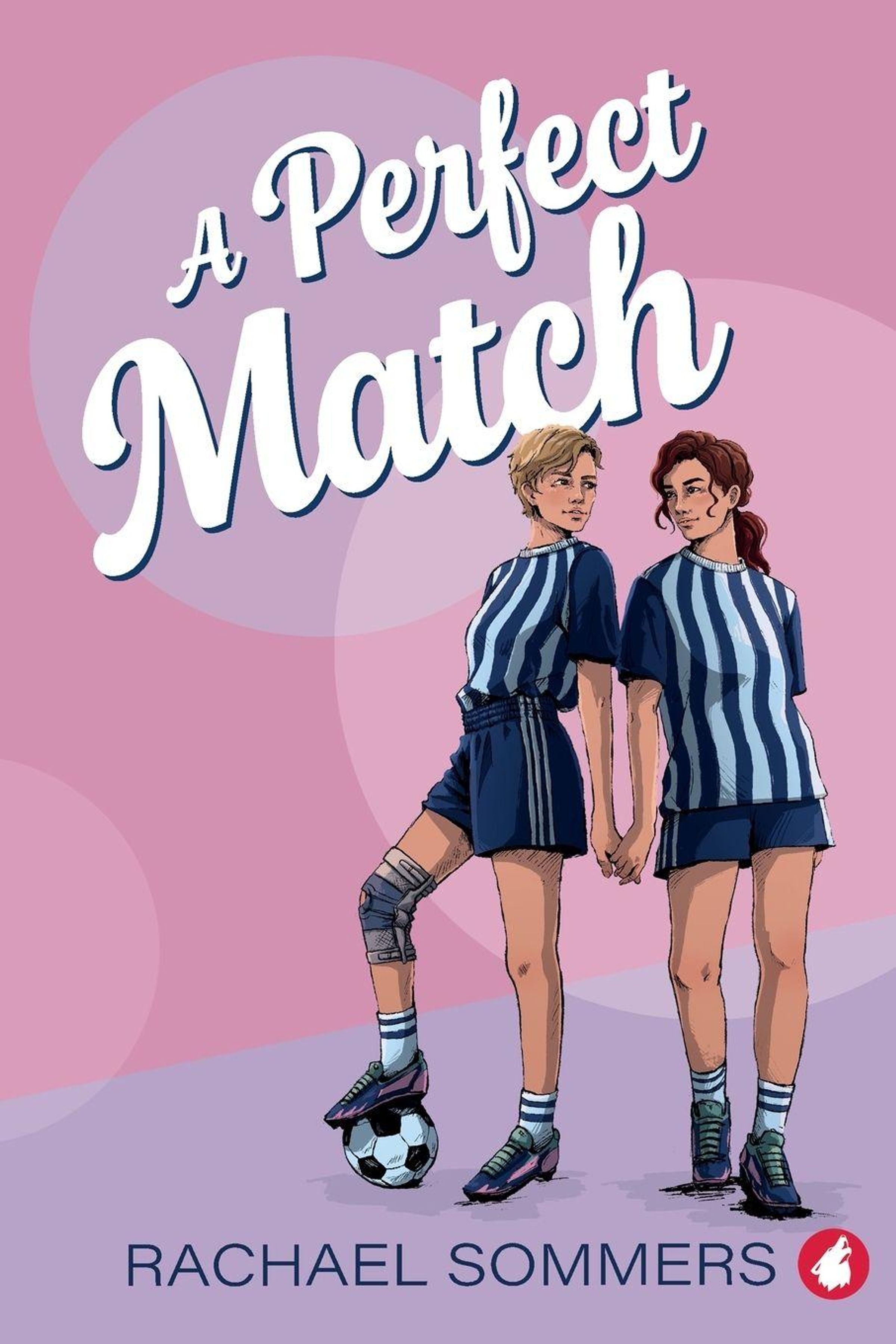 Titel: A Perfect Match. Autorin: Rachael Sommers. Illustration: Zwei Frauen in Fußballtrikots, Hand in Hand, eine hat einen Ball., Buch