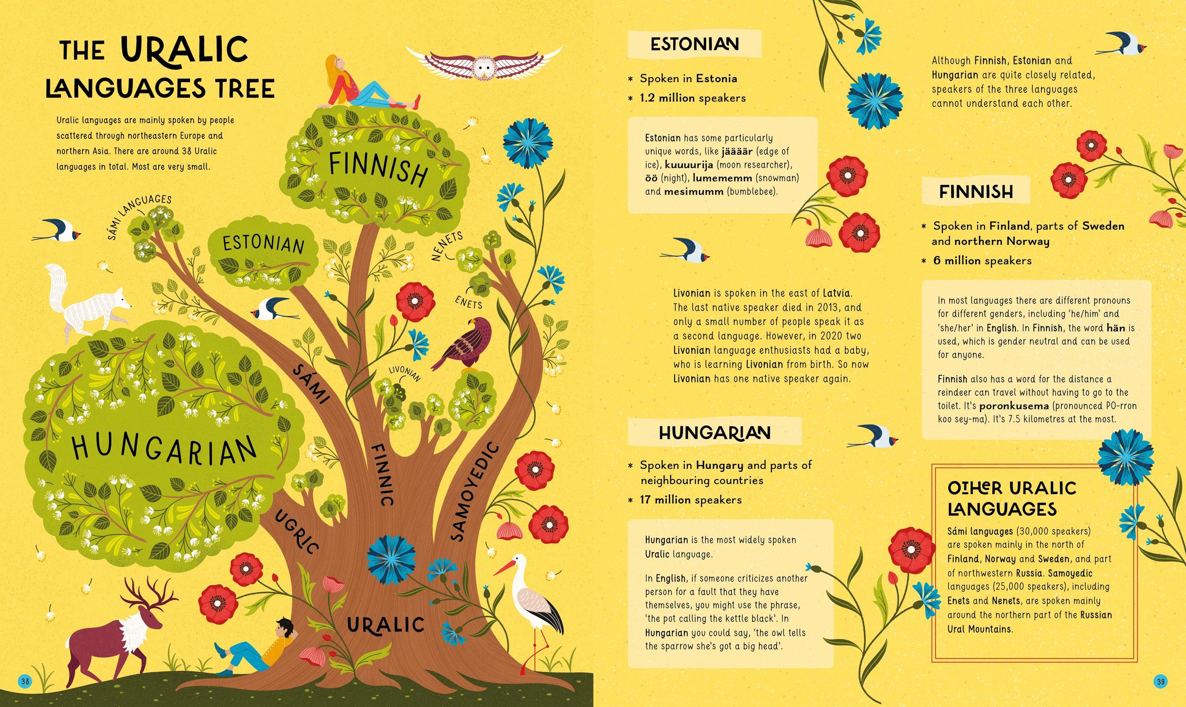 Discover the well-known and the rare languages spoken in every country on a map of each continent. Pore over vibrant and exquisite language family trees that show how different languages have grown, developed and connected over time. Then explore the languages in more detail - how many people speak them, how to pronounce a fun phrase, and why they are so important to a nation's identity and culture.