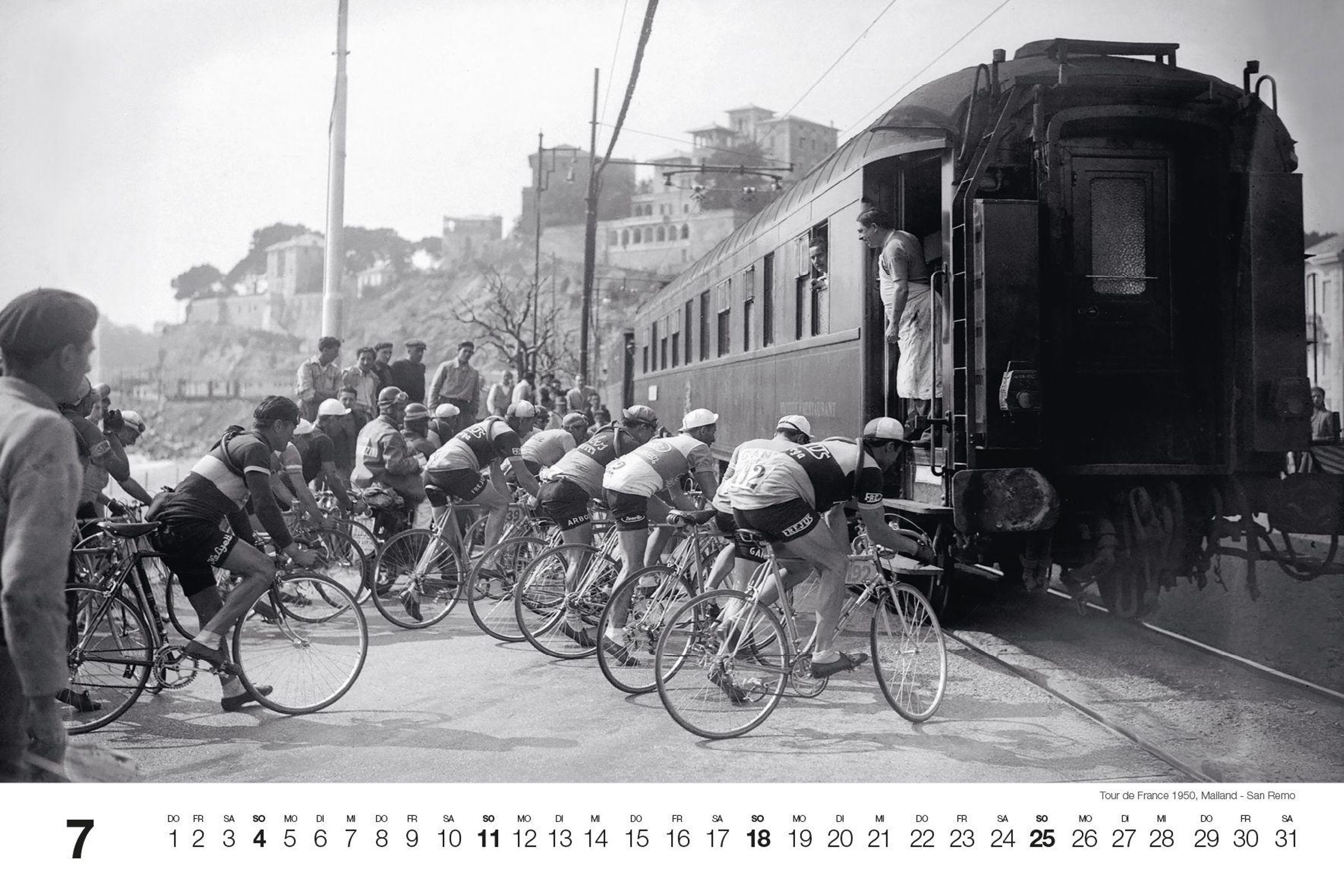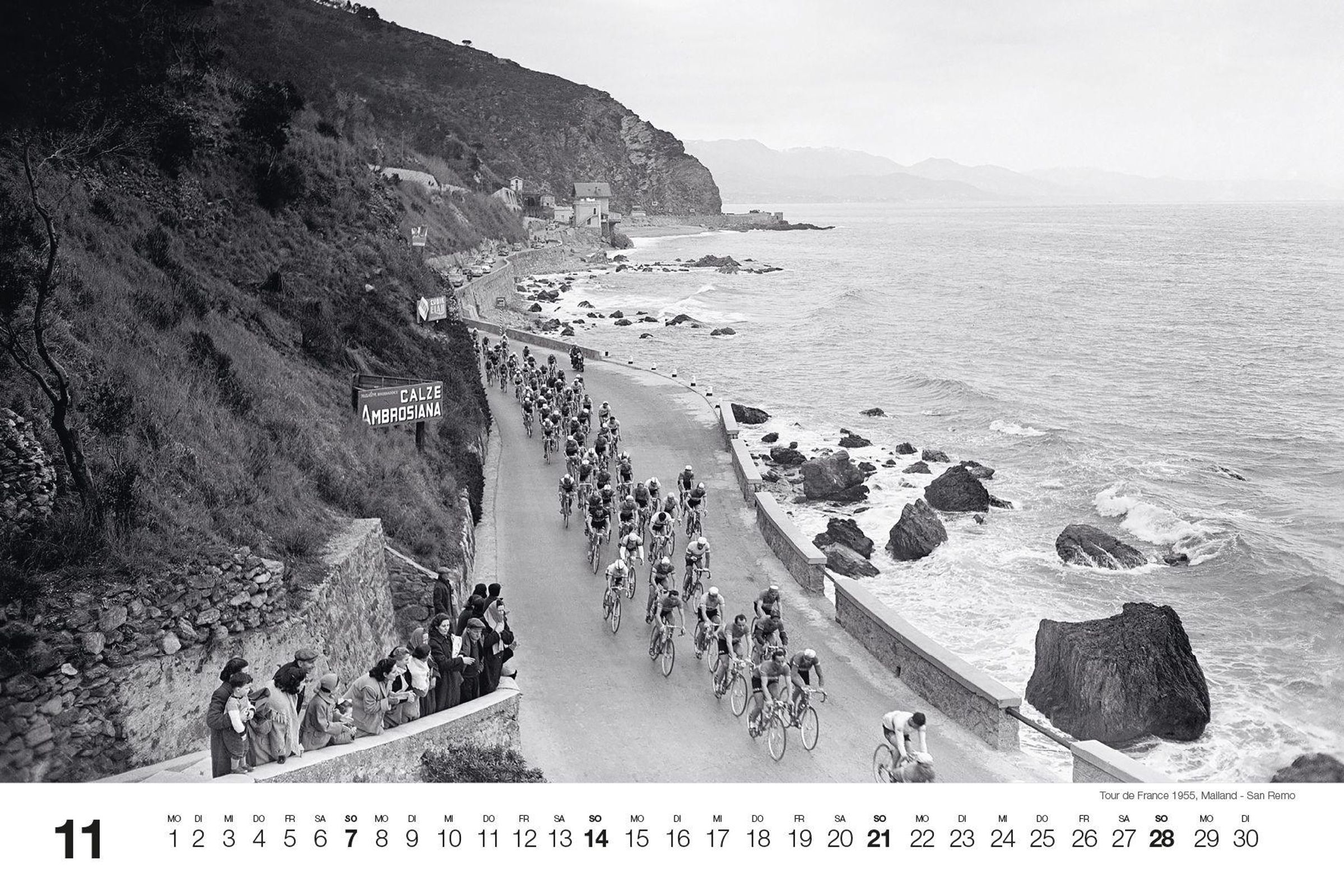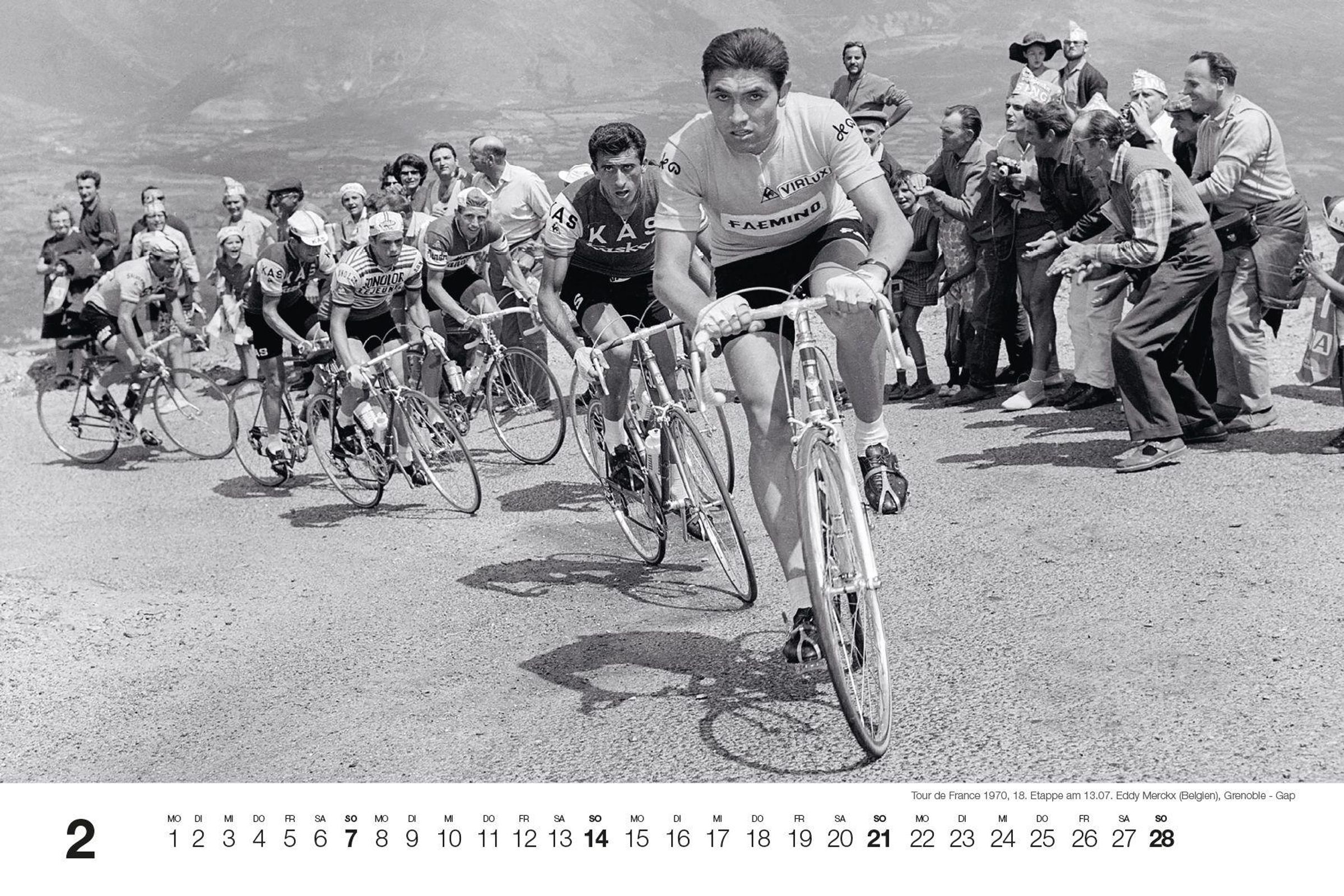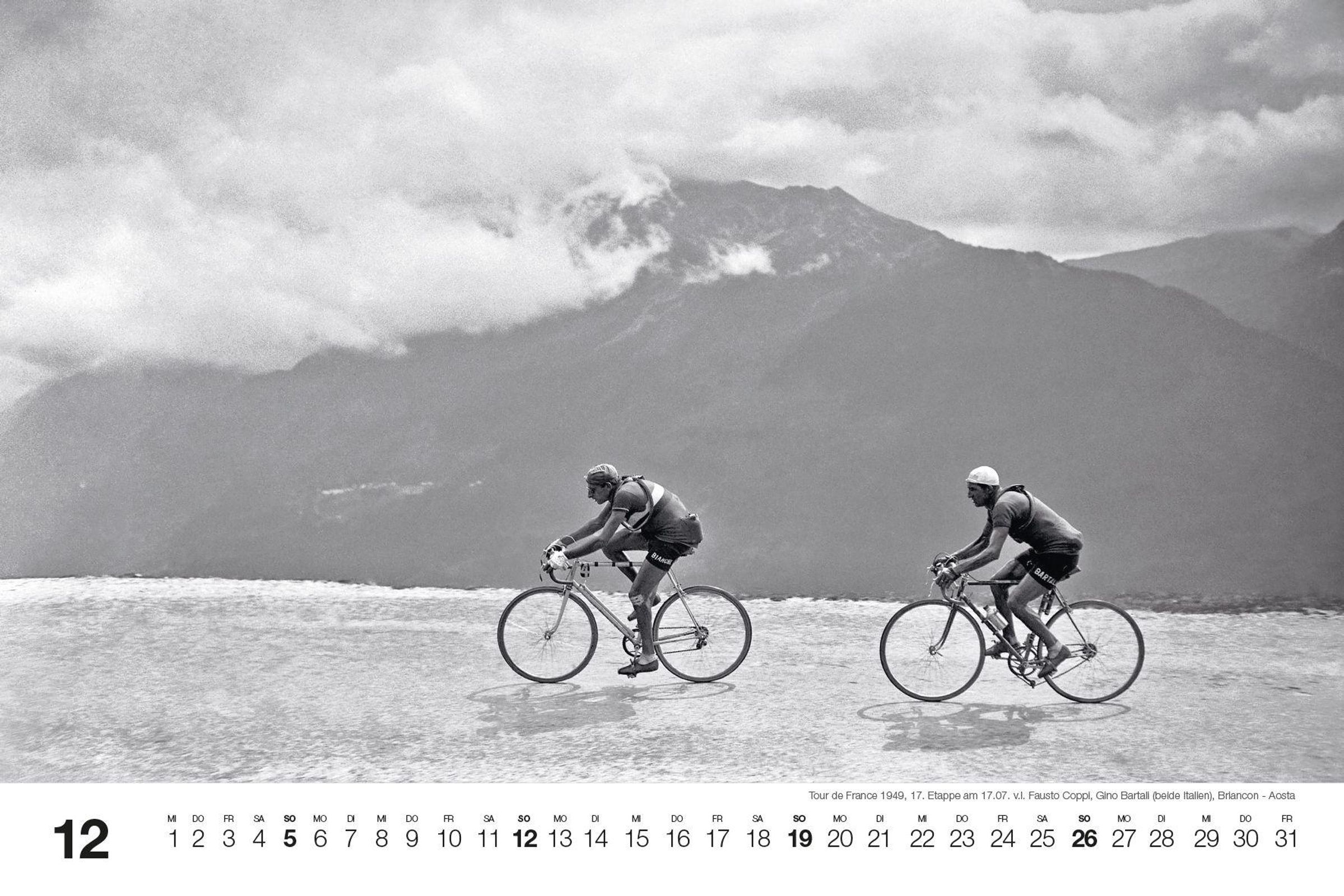 Dieser Kalender ist ein Tribut an Ikonen wie Fausto Coppi, Eddy Merckx und Octave Lapize, deren ungezügelte Energie und eindrucksvolle Leistungen unvergessen bleiben. Im Mittelpunkt stehen historische Momente der Tour de France sowie der Flandernrundfahrt und Mailand-Sanremo. Erinnern Sie sich an die Zeiten, als französische, italienische und belgische Fahrer die Straßen dominierten und ihre Namen in die Annalen des Radsports einmeißelten.