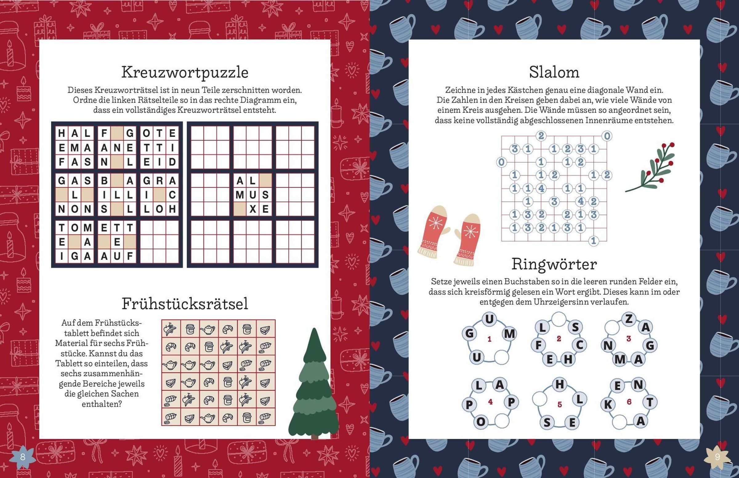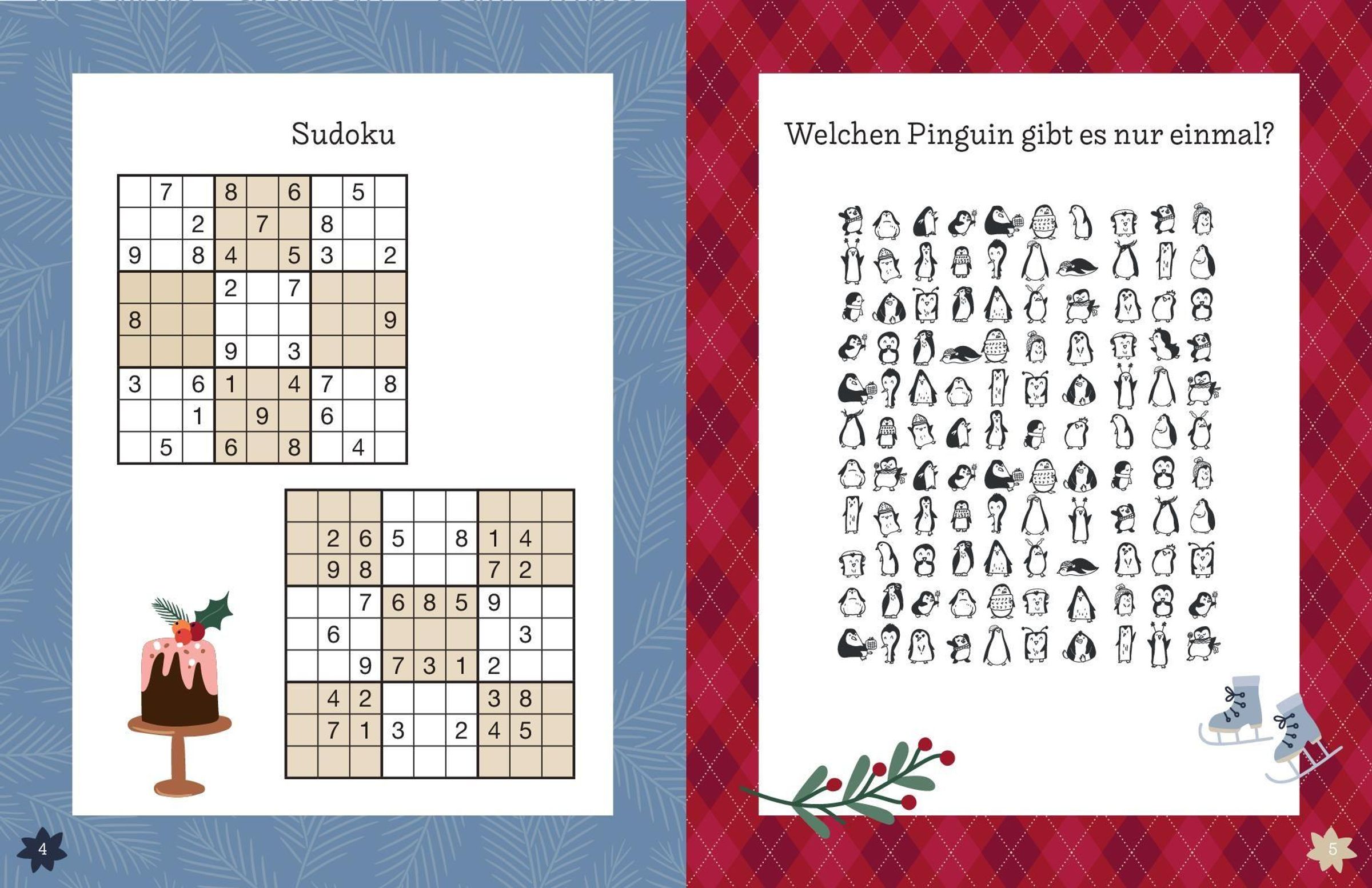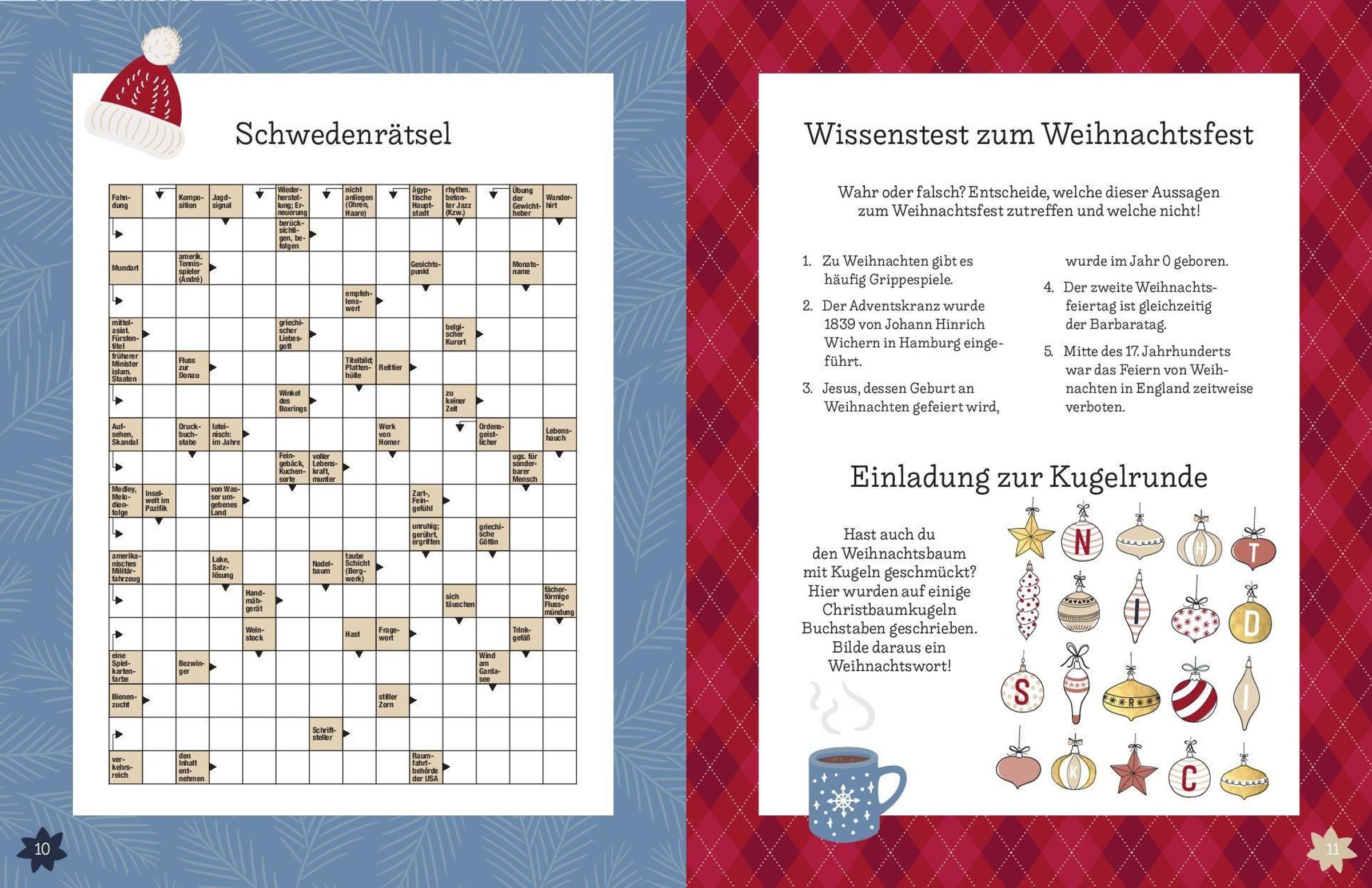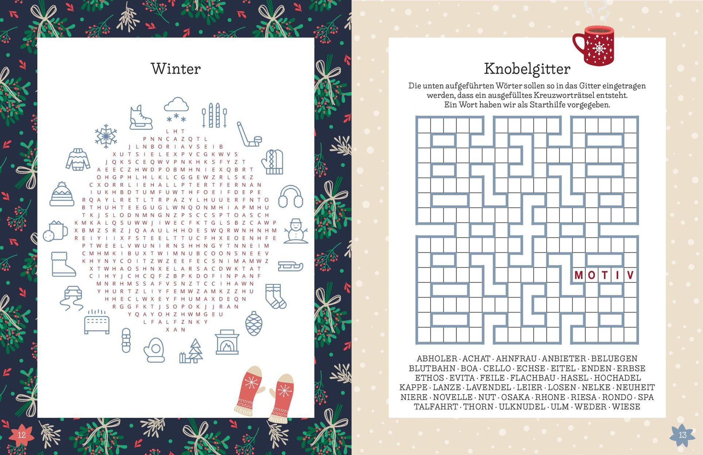 Gönn dir eine Auszeit vom Weihnachtstrubel! In diesem bunten Rätselbuch findest du über 200 Herausforderungen, um gemütlich zu entspannen: klassische Kreuzworträtsel, Wortsuch-, Logik- und Bilderrätsel, knifflige Sudokus und vielen mehr. Die bunte Mischung bietet Spaß und kniffliges Rätselvergnügen für lange Winterabende. Zusätzlich kannst du mit unserem großen Weihnachtsquiz dein Wissen rund um Rentiere, Weihnachtsbräuche, Stollen & Co. auf die Probe stellen.