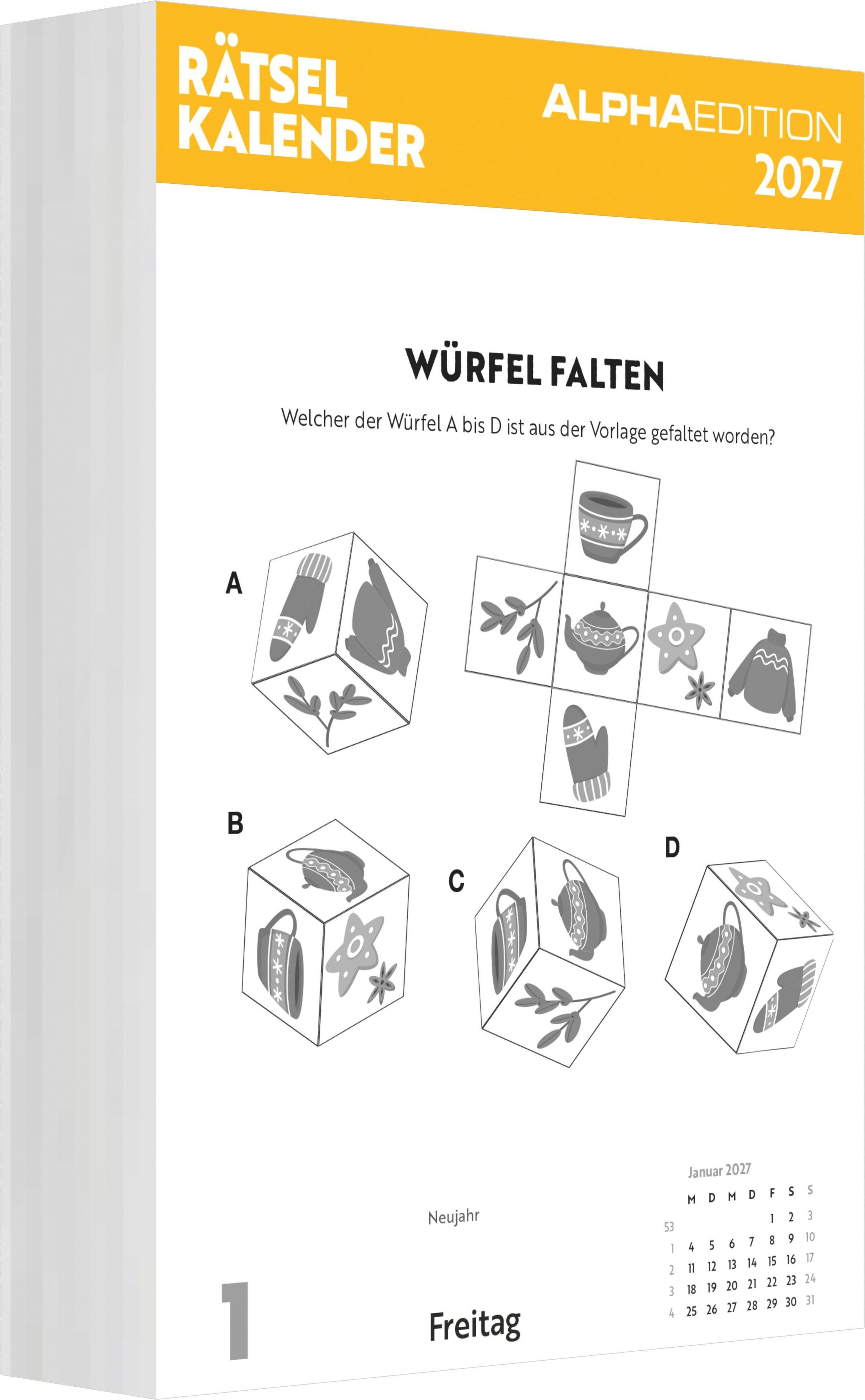 Der Alpha Edition Rätselkalender 2027 ist die ideale Mischung aus Spaß und Training -- ein täglicher Begleiter für alle, die Herausforderungen lieben.