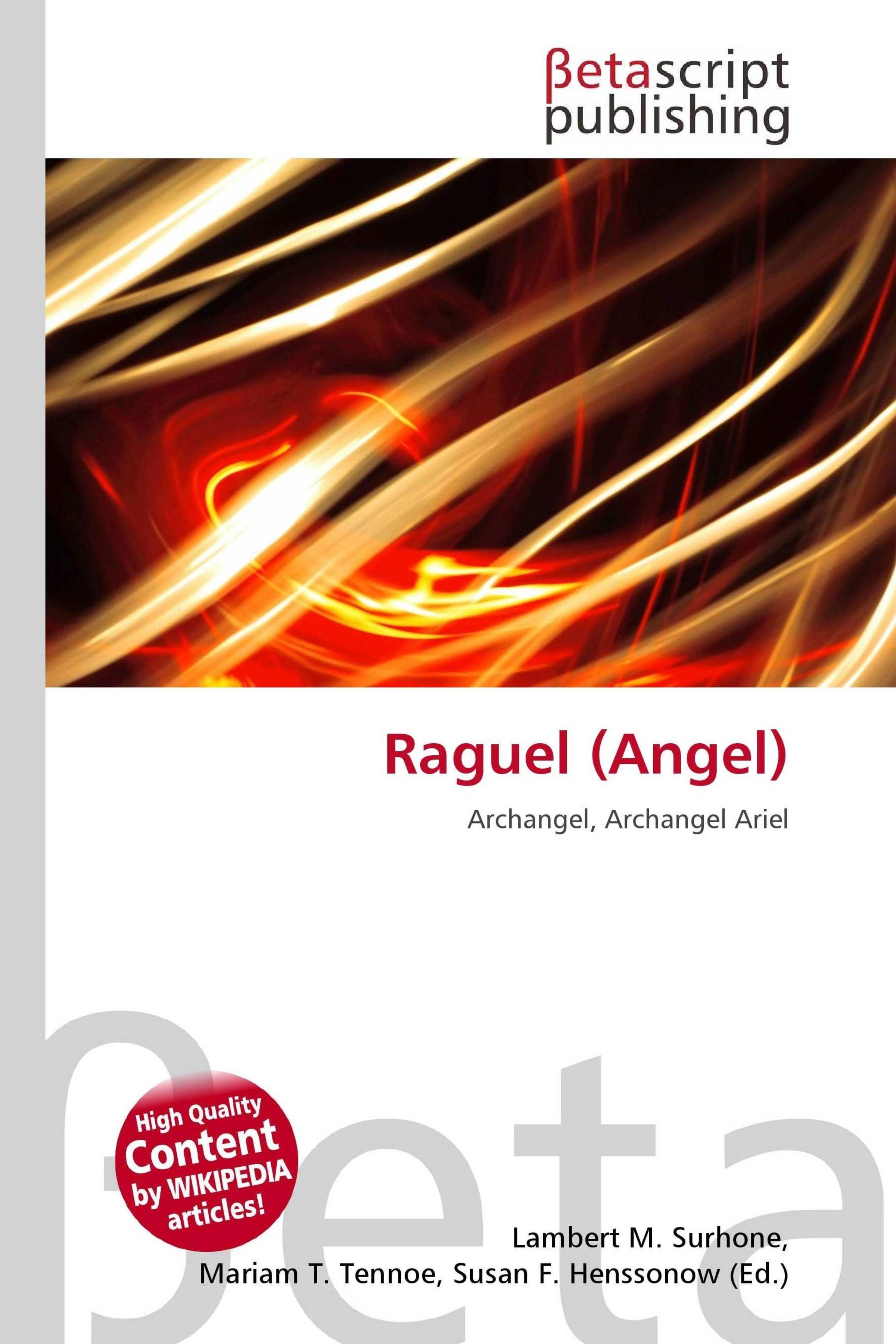 Text: "Betascript Publishing", "Raguel (Angel)", "Archangel, Archangel Ariel". Verschwommene, leuchtende Streifen in Rot und Orange., Buch